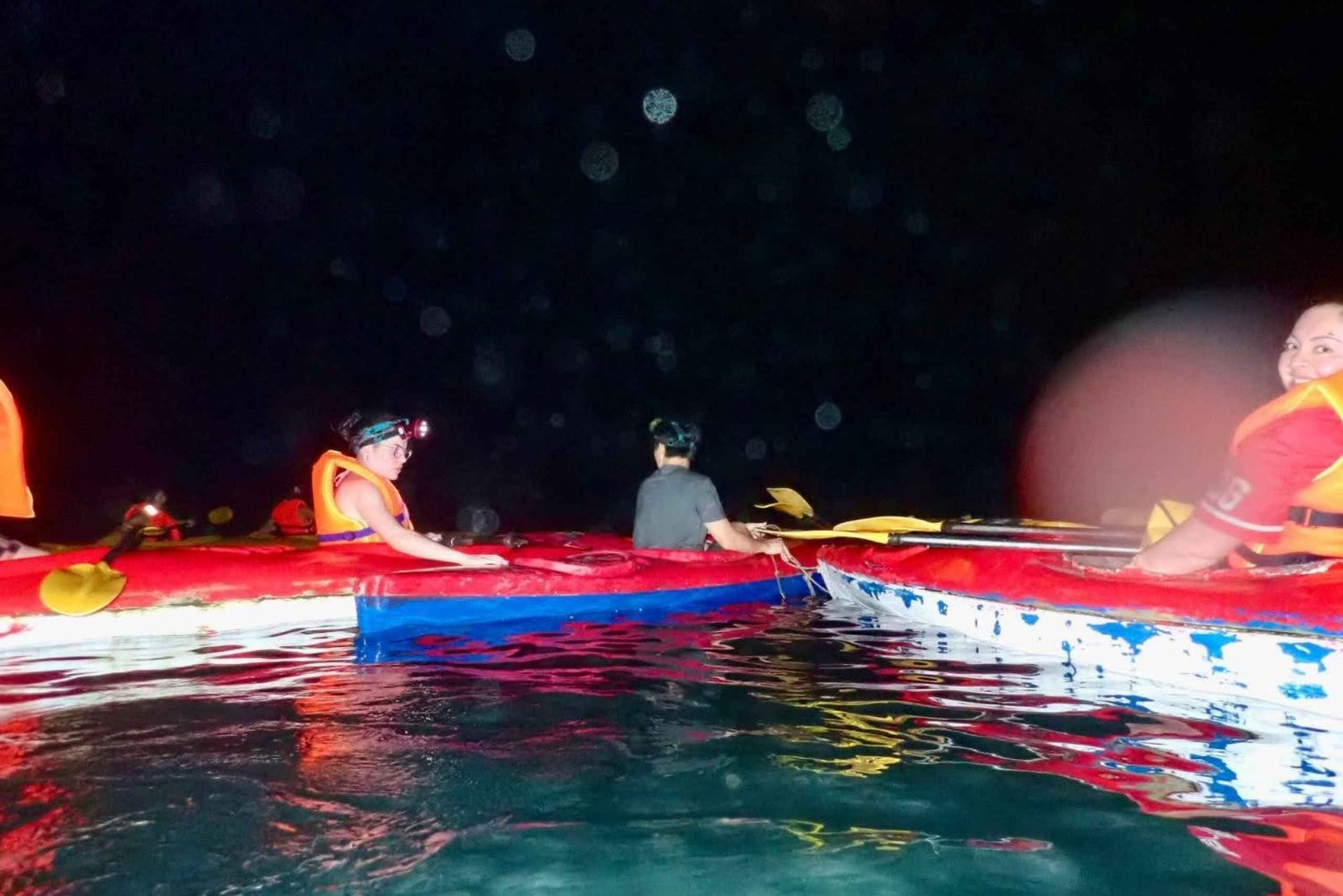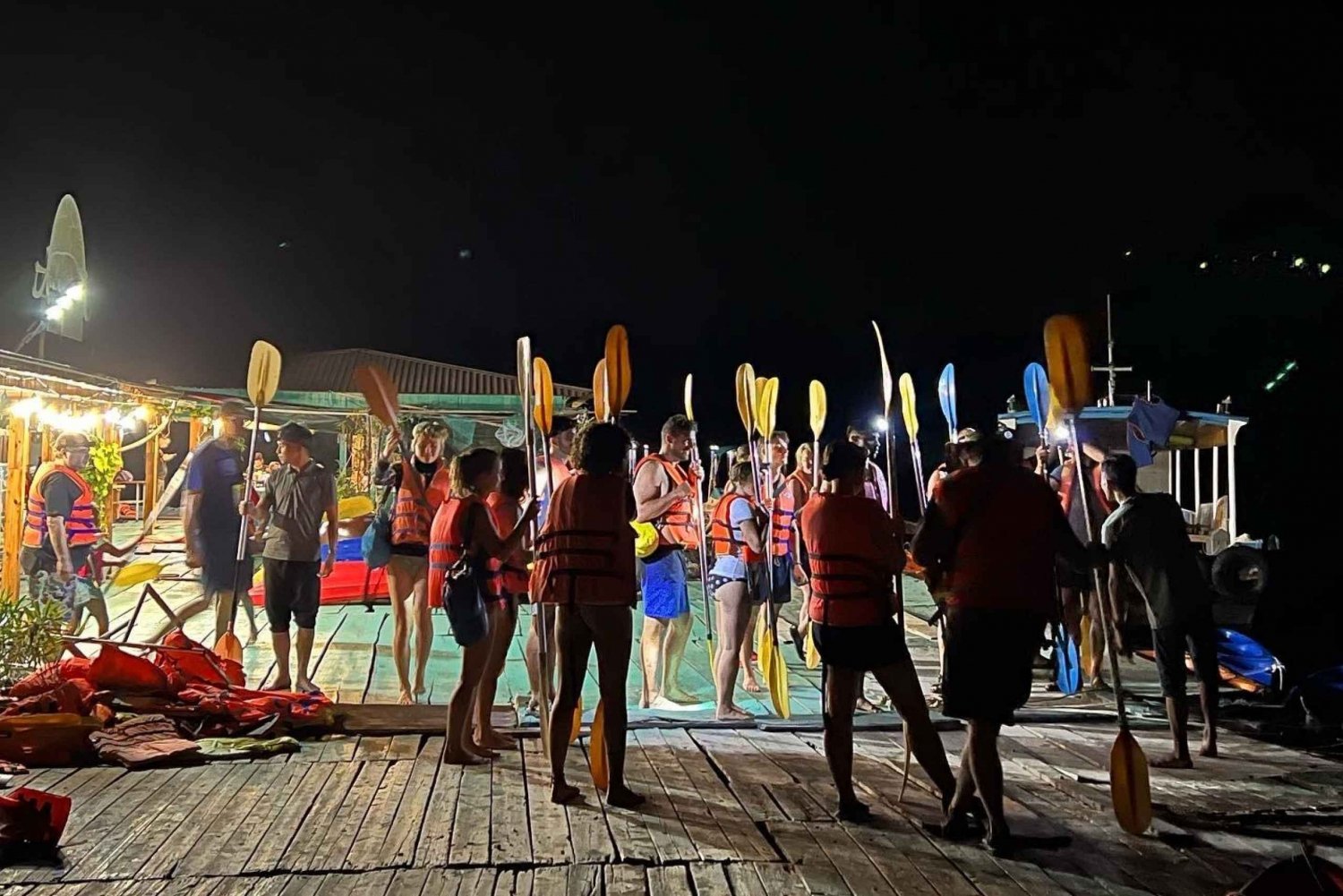 Rejseplan 16:00: Vi henter dig på hotellet og sejler dig til Beo Harbor, hvor du kan nyde den magiske solnedgang, mens båden sejler til vores flydende hus i midten af Lan Ha-bugten. 17:00 - 18:00: Ankomst til det flydende hus, afslapning eller socialt samvær. Der serveres middag med en masse traditionelle vietnamesiske retter. Efter middagen hviler du et stykke tid. Følg derefter guiden ud på en natlig kajaktur. Oplev en af naturens mest magiske skønheder. Guiden vil tage dig med til steder, hvor der er en stor tæthed af biolumenescerende plankton. Du kan også tage en svømmetur for at se hele din glitrende krop. 20:00 - 20:30: Tilbage til det flydende hus, gå ombord på båden for at komme tilbage til Beo Harbour. 21:00: Ankommer til havnen, stiger ind i en bil for at komme tilbage til hotellet. Afslut turen.Includes