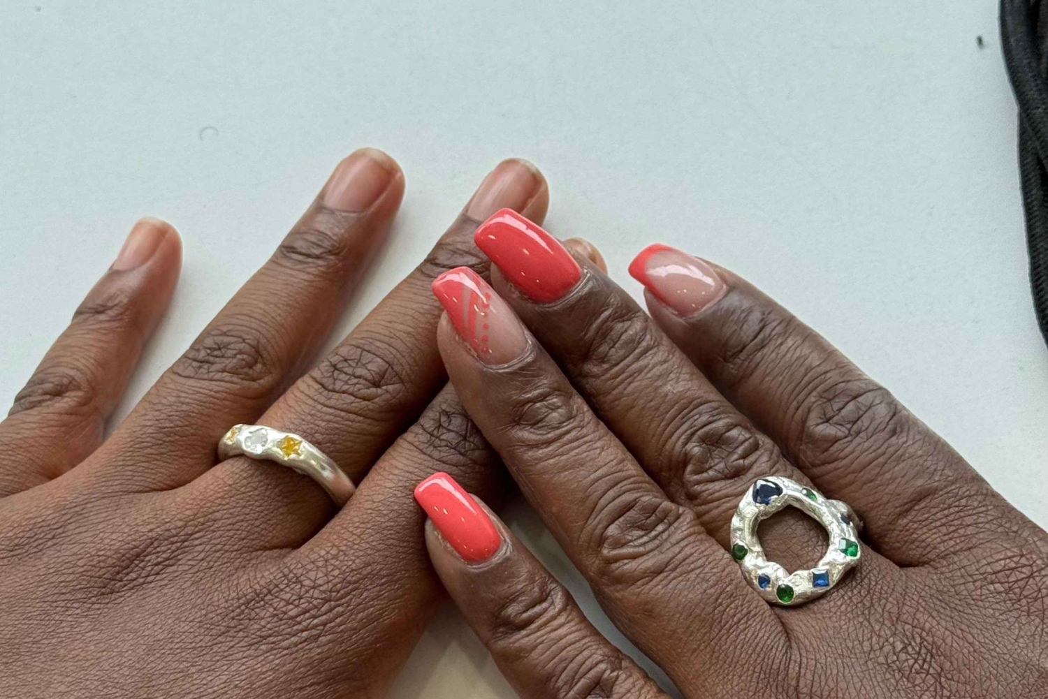 Under vejledning af en dedikeret 1-til-1-underviser kan du nyde en 2,5 timers DIY-sølvring-håndværksworkshop i Muoi Studio. Først vælger du farverige ædelstene og skitserer dit ønskede ringdesign. (Vi tilbyder over 70 levende ædelstensfarver). Derefter begynder du at forme og skulpturere din ring, mens du forsigtigt sætter ædelstenen på plads. Når du har lagt ringen i ovnen, bliver sølvleret omdannet til massivt 999 sølv, der er lige så holdbart og smukt som de fineste smykker. Til sidst giver vi dig en række værktøjer til at polere din kreation, så din ring får en spejllignende glans.Includes
