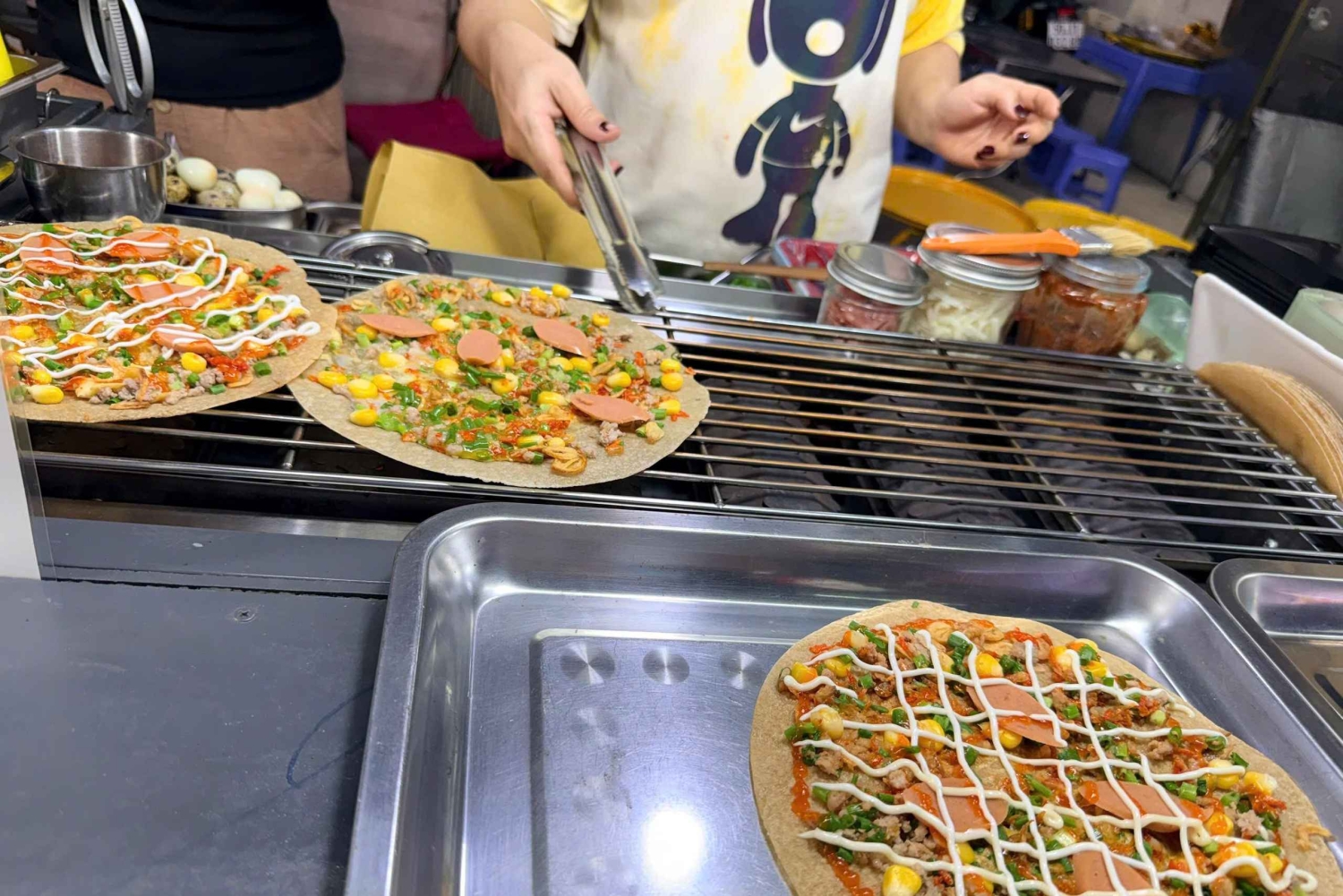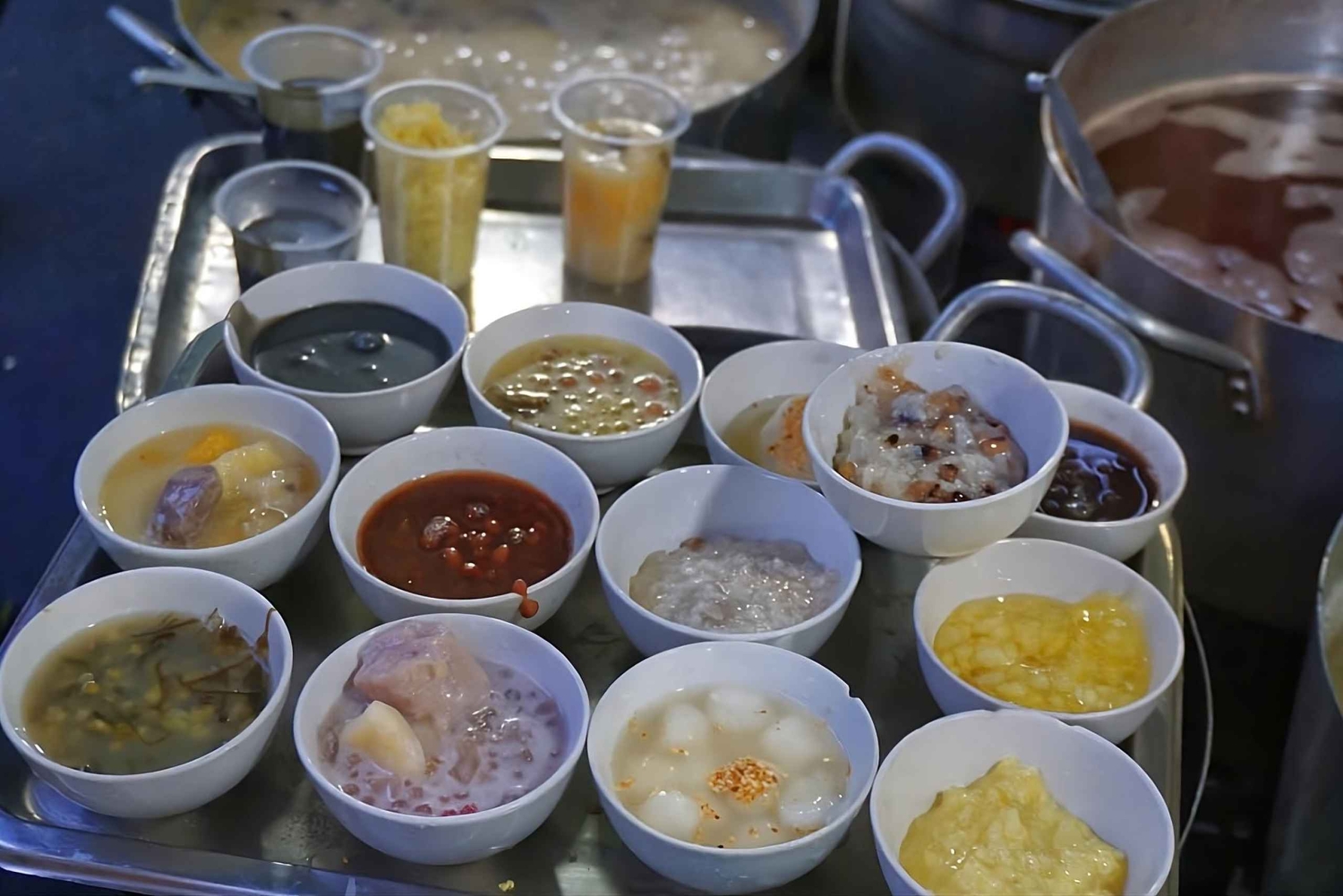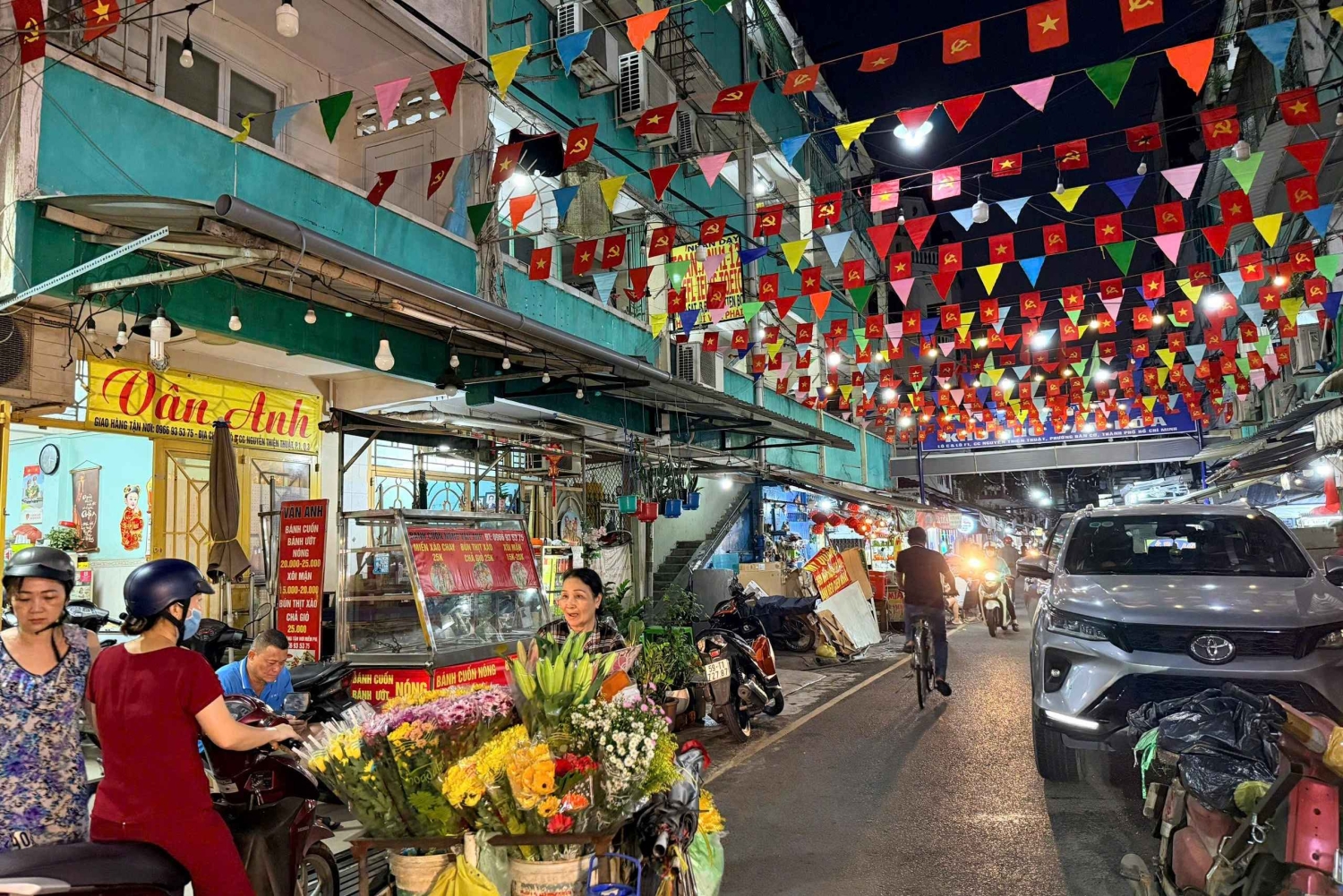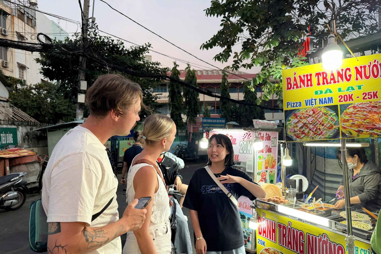 Hvis du er en gourmet, en kulturel opdagelsesrejsende på jagt efter autentiske smagsoplevelser eller bare en madelsker på udkig efter et eventyr på to hjul, så er dette turen for dig! Sikkerhed garanteret. Vi kører, når vejret er bedre, og de lokale sælgere er ude og sælge deres færdig mad og drikke. Vi tager dig med på en spændende tur gennem de smalle gyder, så du kan udforske de travle kvarterer og smage Vietnams ikoniske mad! Vi forbereder dine smagsløg på en række lækre retter, der er omhyggeligt tilberedt for at skabe en perfekt balance mellem smag og teksturer. Hver ret viser de unikke ingredienser og madlavningsteknikker, der gør det vietnamesiske køkken så specielt. Fra lokale restauranter til natmarkedet – vores kyndige guider deler fascinerende indsigt i Vietnams historie, kultur og kulinariske traditioner. Du får også masser af muligheder for at snakke med de lokale og fordybe dig i den pulserende atmosfære i dette madelskende samfund. Vi deler insidertips om, hvordan du fuldt ud kan nyde dette lokale måltid som en lokal. Vi skræddersyr gerne din menu – fra veganervenlige retter til allergifrie muligheder. Før din tur kontakter vi dig for at bekræfte dine præferencer, så vi er sikre på, at din oplevelse er skræddersyet til dig! Foreslået menu: Stop 1: Start aftenen med en hyggelig skål traditionel nudelsuppe på en hyggelig familierestaurant – varme smagsnuancer, der føles som at være hjemme. Stop 2: Oplev den lokale favorit, vietnamesisk pizza – sprødt, grillet rispapir toppet med dine valgte lækre ingredienser, frisklavet kun til dig. Stop 3: Slentrer gennem et livligt natmarked, og nyd autentiske lækkerier som sød kartoffelballoner og grillet oksekød på spyd, tilberedt på den sydlige måde. Stop 4: Nyd en sprød vietnamesisk pandekage (Bánh Xèo) serveret med duftende krydderier og friske grøntsager på et travlt lokalt spisested. Stop 5: Afslut med noget sødt: Grillet banan indpakket i klæbrig ris og toppet med cremet kokosfløde – en lokal dessert, du aldrig vil glemme.Includes