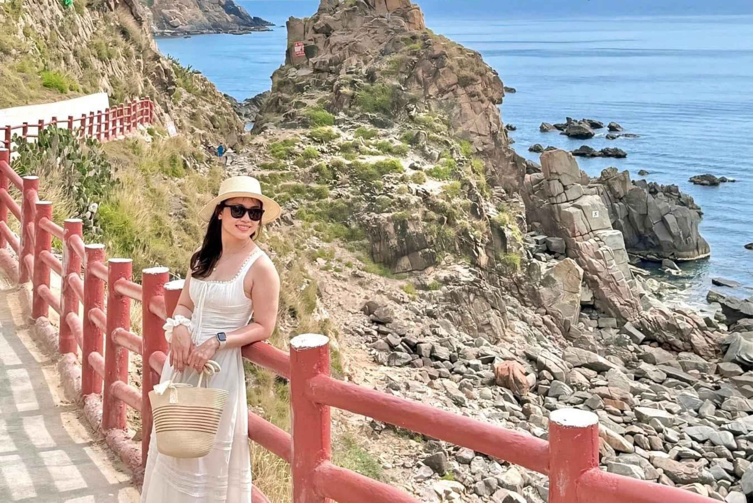 Tag afsted fra Quy Nhơn tidligt om morgenen og kør mod Phú Yên. Besøg Mang Lang-kirken, en elegant kirke i gotisk stil, der blev bygget for over 120 år siden. Den rummer den ældste bevarede bog på vietnamesisk, hvilket tilføjer både åndelig og kulturel betydning til dit besøg. Fortsæt til den betagende Gành Đá Dĩa (Dish Rocks), et nationalt naturmonument med fascinerende sekskantede basaltkolonner dannet af vulkansk aktivitet – ofte sammenlignet med Skotlands Giant's Causeway. Nyd en overdådig frokostbuffet med fisk og skaldyr med udsigt over O Loan-lagunen, der er kendt for sin rolige skønhed og friske fisk og skaldyr. Efter frokosten kan du tage dig tid til at slappe af og nyde omgivelserne. Udforsk Bãi Xép og Gành Ông, charmerende kyststeder, der er blevet berømte gennem filmen I See Yellow Flowers on the Green Grass. Nyd det fredfyldte landskab og den romantiske, filmiske atmosfære. Besøg Thanh Lương Pagoda, et unikt kysttempel bygget af koraller og kokosnødskaller. Dets midtpunkt er en smuk træstatue af Quan Am (Avalokitesvara), der står ved en spejlblank, fredfyldt sø. Hold en pause ved Ông Cọp Wooden Bridge, den længste træbro i Vietnam. Den er lavet af bambus og træ med metalspik, og dens rustikke charme og beliggenhed ved floden gør den til et ideelt fotostop. Afslut dagen med en malerisk køretur tilbage til Quy Nhơn, hvor du kan reflektere over en dag fyldt med geologisk skønhed, historisk arkitektur, kystudsigt og fredfyldt ro.Includes