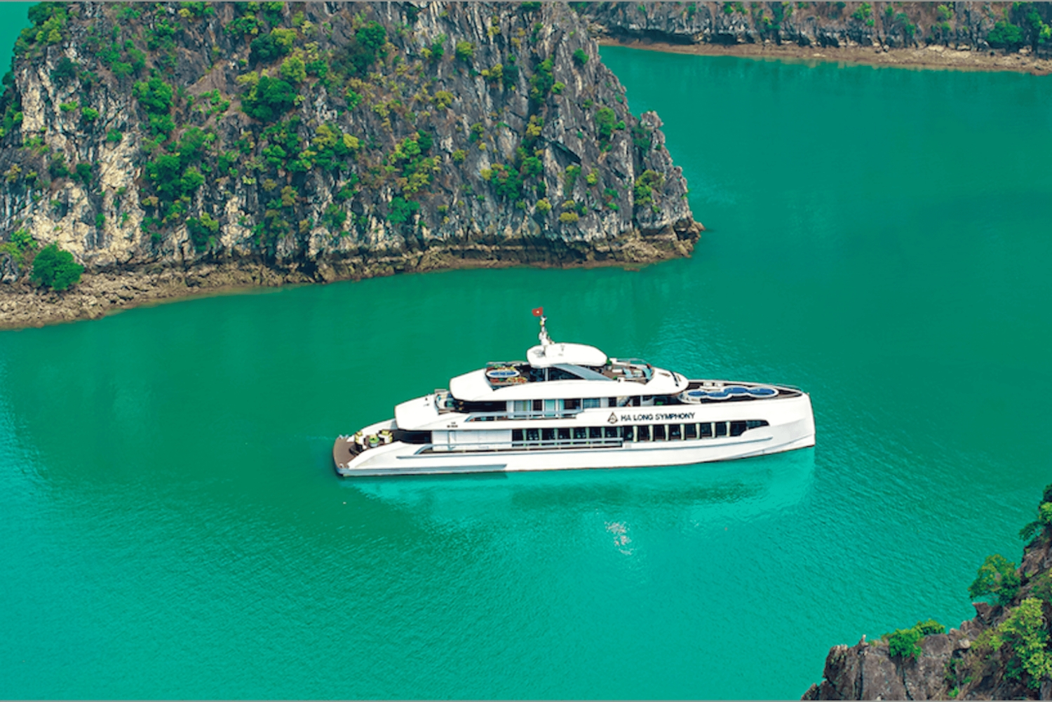 42 ReviewsDie Halong Symphony Cruise ist ein modernes Kreuzfahrtschiff aus Stahl, das 2024 vom Stapel läuft und eine Mischung aus modernem Design und traditionellen Holzmöbeln bietet.