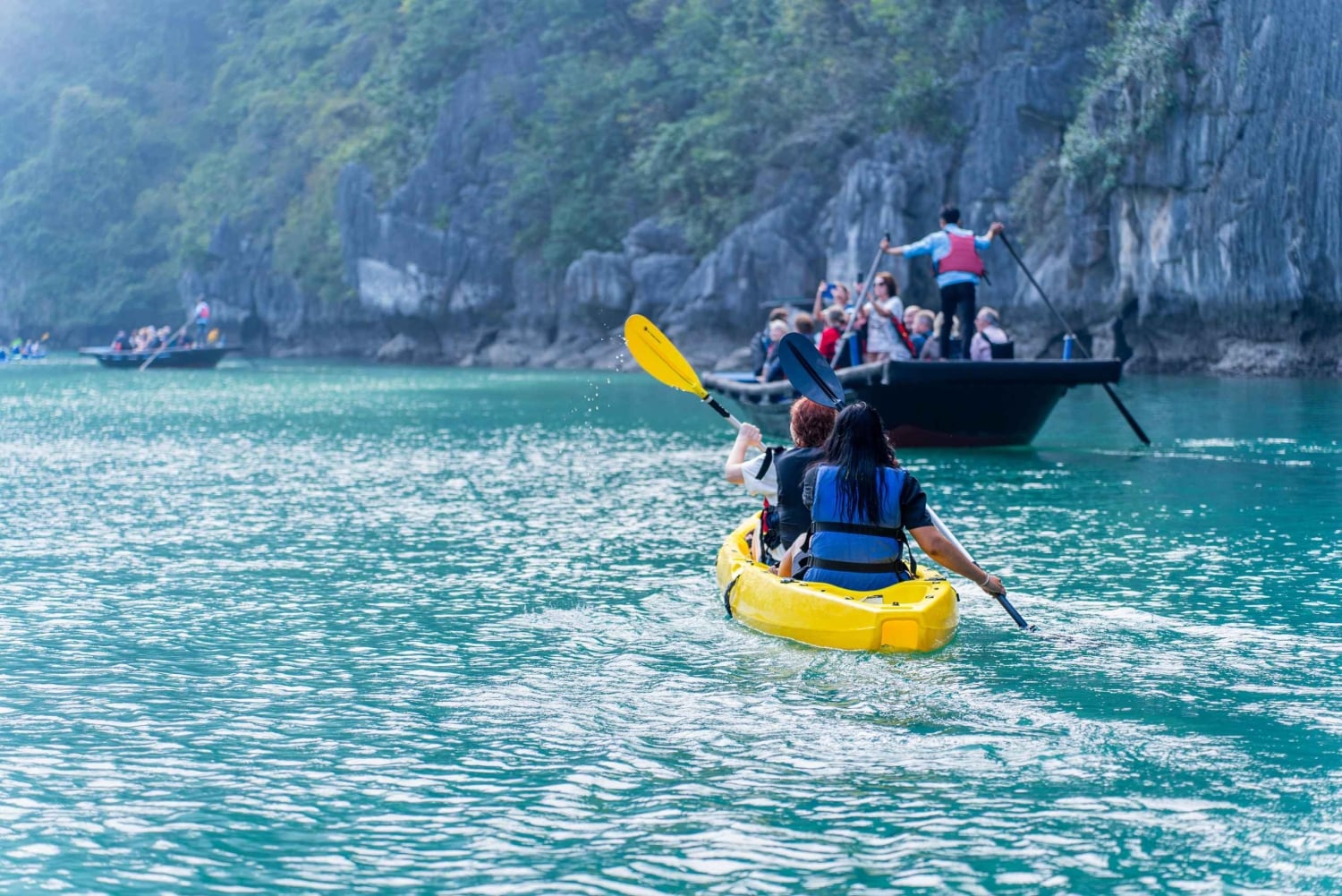 10:00 - 10:15: BEGRÜSSUNG DER GÄSTE IM HALONG-KREUZFAHRTHAFEN Das Managementteam der Halong Symphony freut sich, dich am internationalen Kreuzfahrthafen von Ha Long willkommen zu heißen und deine Reise zur Erkundung der Ha Long Bucht zu beginnen. 10:30 UHR: ABFAHRT ZUR HALONG-BUCHT Unsere Kreuzfahrt verlässt den Hafen und du beginnst die Fahrt, um die wunderbare Schönheit der Ha Long Bucht zu erleben. Währenddessen erhältst du eine Einführung in die Halong Symphony, die Sicherheitsbestimmungen und die Route der Kreuzfahrt. 11:45 - 12:45: BESUCH DER ÜBERRASCHUNGSHÖHLE Der Guide nimmt dich mit zu einer der größten und schönsten Höhlen der Ha Long Bucht, der 'Surprise Cave'. Unser Guide präsentiert dir interessante Informationen über die Höhle, die ein unverzichtbarer Bestandteil der Heritage Cruise sind. 12:45 - 13:45 UHR: MITTAGESSEN Nach der Rückkehr zur Kreuzfahrt wird dir ein Mittagsbuffet mit herzhaften asiatischen und europäischen Gerichten im Restaurant auf der Kreuzfahrt serviert (bei weniger als 30 Gästen wird ein Menü serviert). 13:45 - 14:30: LUON CAVE (gegen Aufpreis) Nach dem Mittagessen setzen wir unsere Reise mit einem sehr interessanten Erlebnis fort: Mit dem Sampan, der von Einheimischen gerudert wird, oder mit dem Kajak erkunden wir die Luon-Höhle - ein Ort, der sich in einem friedlichen Tal in der Bucht öffnet. (Bitte informiere unseren Guide an Bord, wenn du diese Erfahrung machen möchtest) 14:45 - 15:45: BESUCH DER INSEL TITOV Wir erreichen die Titov-Insel, wo du in das smaragdgrüne Wasser der Halong-Bucht eintauchen oder auf den Gipfel des Titov-Bergs klettern kannst, um das herrliche Panorama von Ha Long zu genießen. 15:45 - 17:00 UHR: SONNENUNTERGANGSPARTY Es ist an der Zeit, den Sonnenuntergang in der Halong-Bucht mit einer Teeparty unter der wunderschönen Aussicht auf die Ha Long-Bucht zu genießen oder du kannst die einzigartigen Jacuzzi-Bereiche der Halong Symphony erleben. 17:30 UHR: ENDE DER REISE Unsere Crew bringt dich zurück zum Hafen und verabschiedet die Passagiere mit einem Lächeln des Dankes und hofft, dich wiederzusehen.Includes