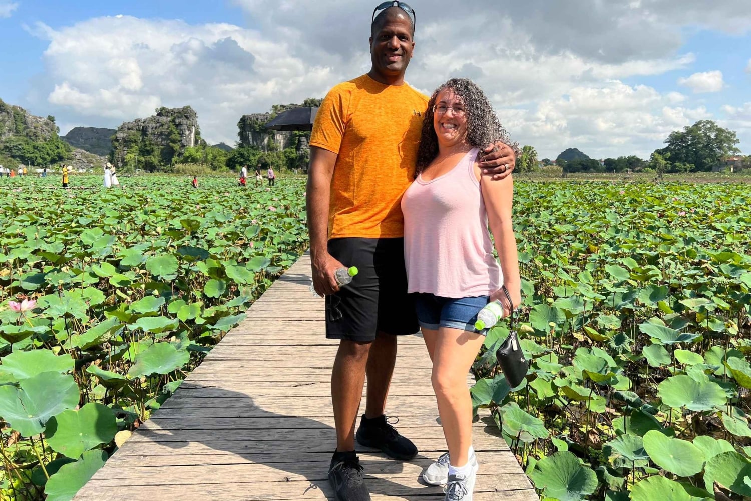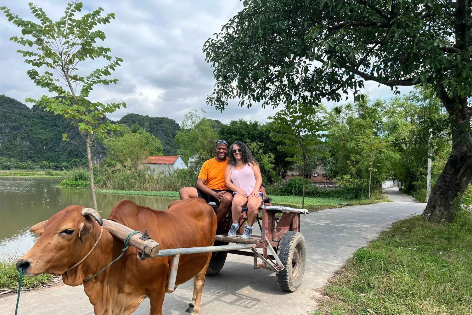 Tag 1: Hanoi - Mua-Höhle - Einheimische Familie - Radfahren - Thung Nham. 07:15-07:45 Der Tourguide und der Fahrer holen dich von deinem Hotel oder deiner Privatadresse ab und fahren nach Ninh Binh. Wir fahren in den Süden von Hanoi, vorbei an den malerischen Reisfeldern Nach 2 Stunden kommst du an der Mua-Höhle an, einem der verlockendsten Orte in Ninh Binh, von dem aus du einen herrlichen Panoramablick hast. Wandere auf den Gipfel des Ngoa Long Berges und genieße die atemberaubende Aussicht auf den Tam Coc. Am Mittag genießt du ein leckeres Mittagessen mit vietnamesischer Küche. Bevor du in deiner Unterkunft eincheckst. Entspanne dich ein wenig und nimm dann an der Radtour teil, bei der du die Reisfelder und Kalksteinberge auf einer einzigartigen Route erkundest und eine einheimische Familie in Tam Coc besuchst. Sie sind eine traditionelle vietnamesische Familie, in der drei Generationen zusammenleben. Hier hast du die Möglichkeit, die Architektur des Hauses und ihr tägliches Leben kennenzulernen. Dann steigst du in ein kleines Sampan, um das Thung Nham Vogelreservat zu besuchen und die einzigartigen Eigenschaften dieses Gebiets zu entdecken, in dem jeden Tag mehr als 50.000 Vögel aus 40 Arten fliegen. Radle zurück zum Mini-Resort oder Hotel. Zum Abendessen gibt es vietnamesisches Essen und eine Übernachtung in Ninh Binh. Tag 2: Lokaler Markt - Bich Dong - Tam Coc (Trang An optional) - Hoa Lu - Hanoi. Am frühen Morgen fährst du mit dem Fahrrad zum lokalen Markt im Dorf Van Lam und lernst die vietnamesische Kultur durch ihre täglichen Aktivitäten kennen. Zurück zum Hotel zum Frühstück. Mit dem Fahrrad besuchst du die Bich Dong Pagode; unter der Führung unseres ortskundigen Guides erfährst du mehr über die Geschichte Vietnams und den Ursprung des Buddhismus. Zurück im Hotel kannst du auschecken und ein leckeres Mittagessen mit vietnamesischer Küche genießen. Nach dem Mittagessen setzt du deine Reise mit einem Sampan fort, das von einem Einheimischen etwa 1,5 Stunden lang gerudert wird, um Tam Coc, die 'Halong-Bucht auf dem Land', zu erkunden. Die Bootsfahrt ist eine schöne Reise entlang des Flusses mit der friedlichen Kulisse von Kalksteinbergen und Höhlen, die sich entlang der Reisfelder des Ngo Dong-Flusses erstrecken, wenn du während der Erntezeit reist. Trang An (optional): Wenn du lieber Trang An als Tam Coc besuchen möchtest, kontaktiere uns bitte und bestätige dies 1 Tag vor der Reise. Nach dem Mittagessen fährst du nach Trang An und verbringst etwa 2 Stunden auf einem Sampan-Boot, um Trang An, das Herzstück des Weltnaturerbes, zu erkunden. Besuche viele Kalksteinfelsen, Wasserhöhlen und Tempel entlang des Sao Khe Flusses. Weiter geht es nach Hoa Lu, der alten Hauptstadt Vietnams im 10. Jahrhundert, um die Tempel von König Dinh und Le zu besuchen. Verlasse Ninh Binh und fahre direkt zurück nach Hanoi. In Hanoi angekommen, setzen wir dich gegen 18:30-19:00 Uhr an deinem Hotel oder einer Privatadresse in der Altstadt von Hanoi ab. Die Reise endet.Includes