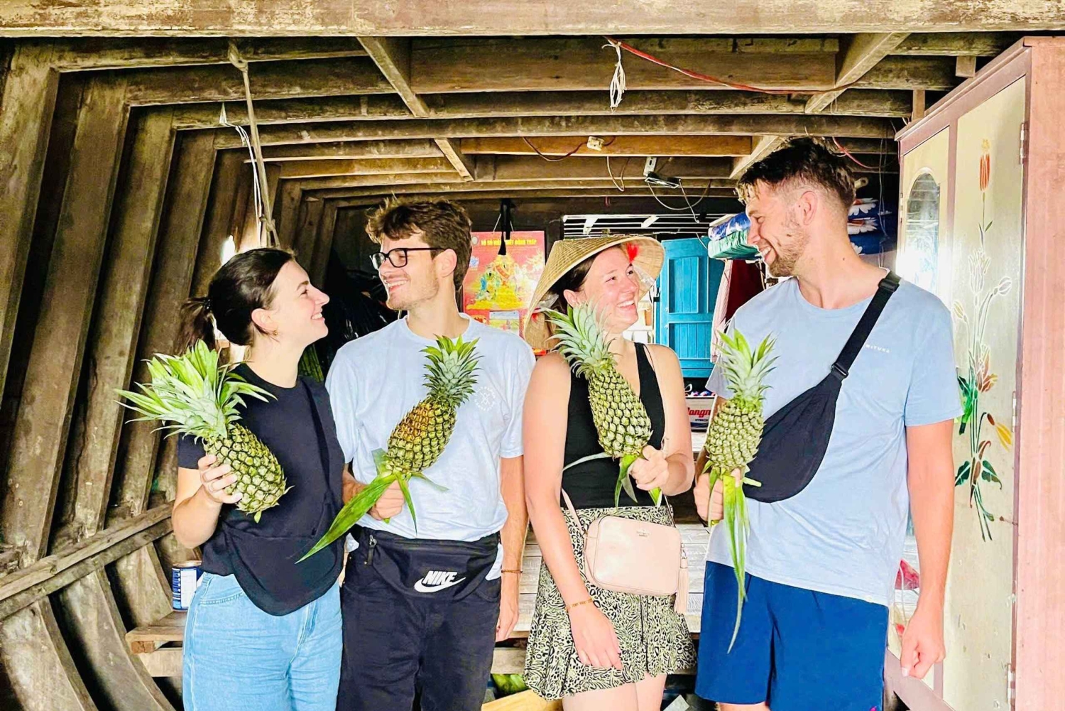 - Why You’ll Love Our Tour: It offers a rare chance to slow down and connect deeply with nature by providing you a place where the rhythm of the forest invites you to breathe, observe, and feel part of something beautifully alive. In the era of Vietnam’s economic growth, the floating market is now busiest from 7:00 to 9:00 AM, not at 4:00 AM as outdated sources suggest. Our tour departs at 6:45 AM, ensuring you arrive at the perfect time to experience. Unlike other tours with long early transfers, our convenient starting point saves you valuable time and energy. We provide everything you need including accommodation, fruits, drinks, local dinner and breakfast, transfers to all stops, and even raincoats so there’s no extra cost. Our guide team consists of young, passionate Gen Z locals from Vietnam’s top universities. They bring not only warm smiles and energy, but also deep knowledge of Vietnam’s culture, history, politics, philosophy, economy, and daily life.