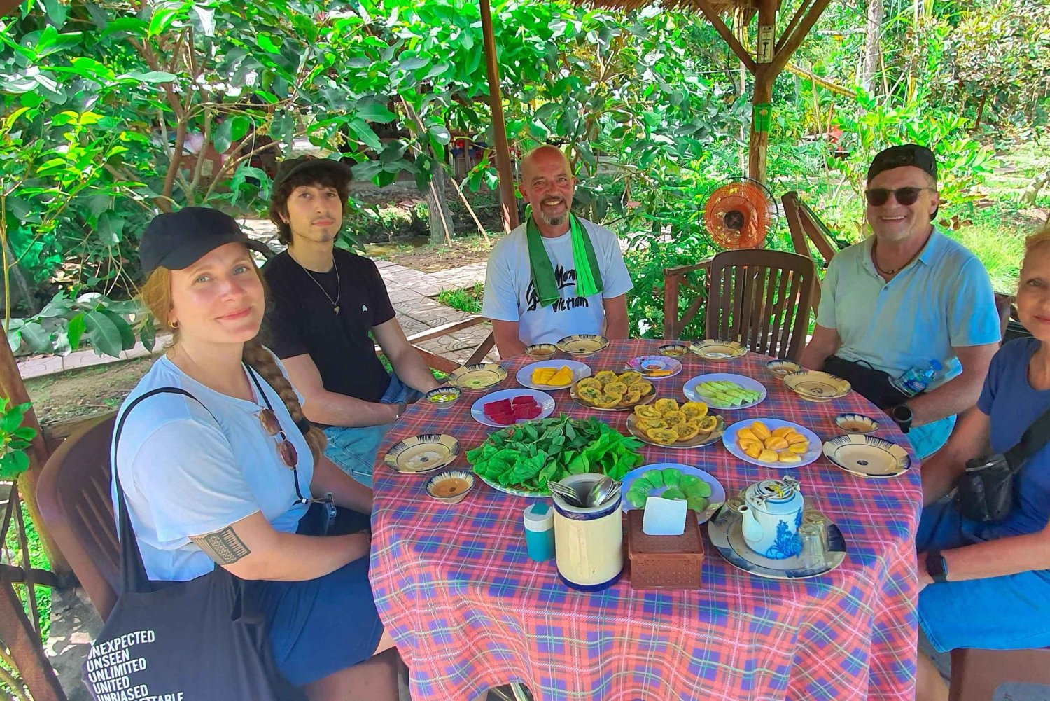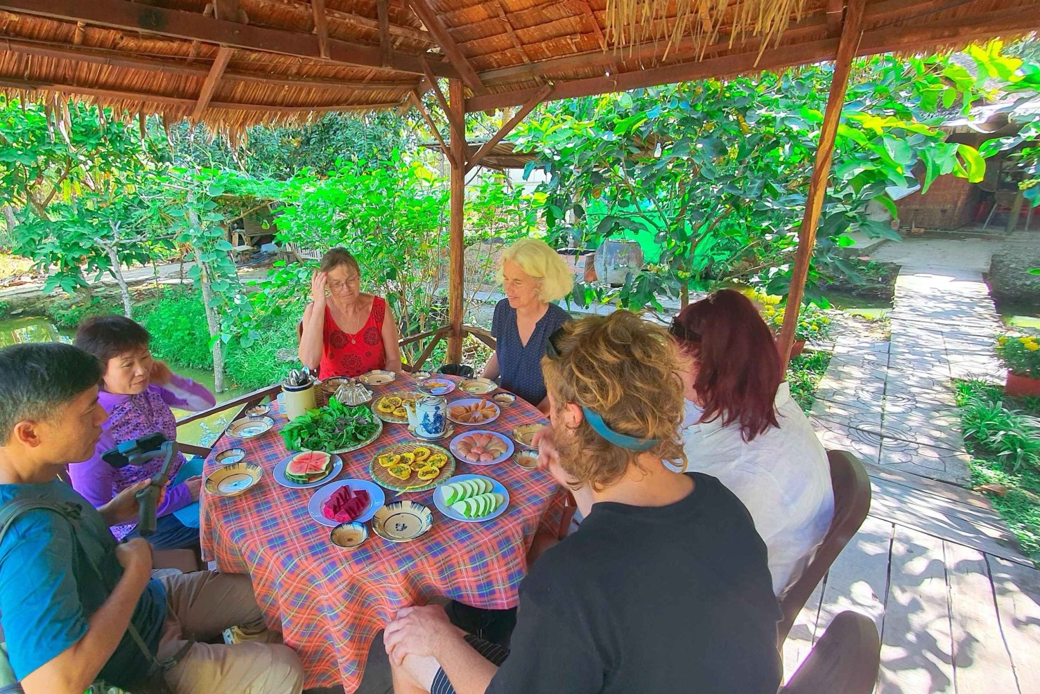 - Genieße tropische Früchte und Tee im friedlichen Grün eines Mekong-Gartens.