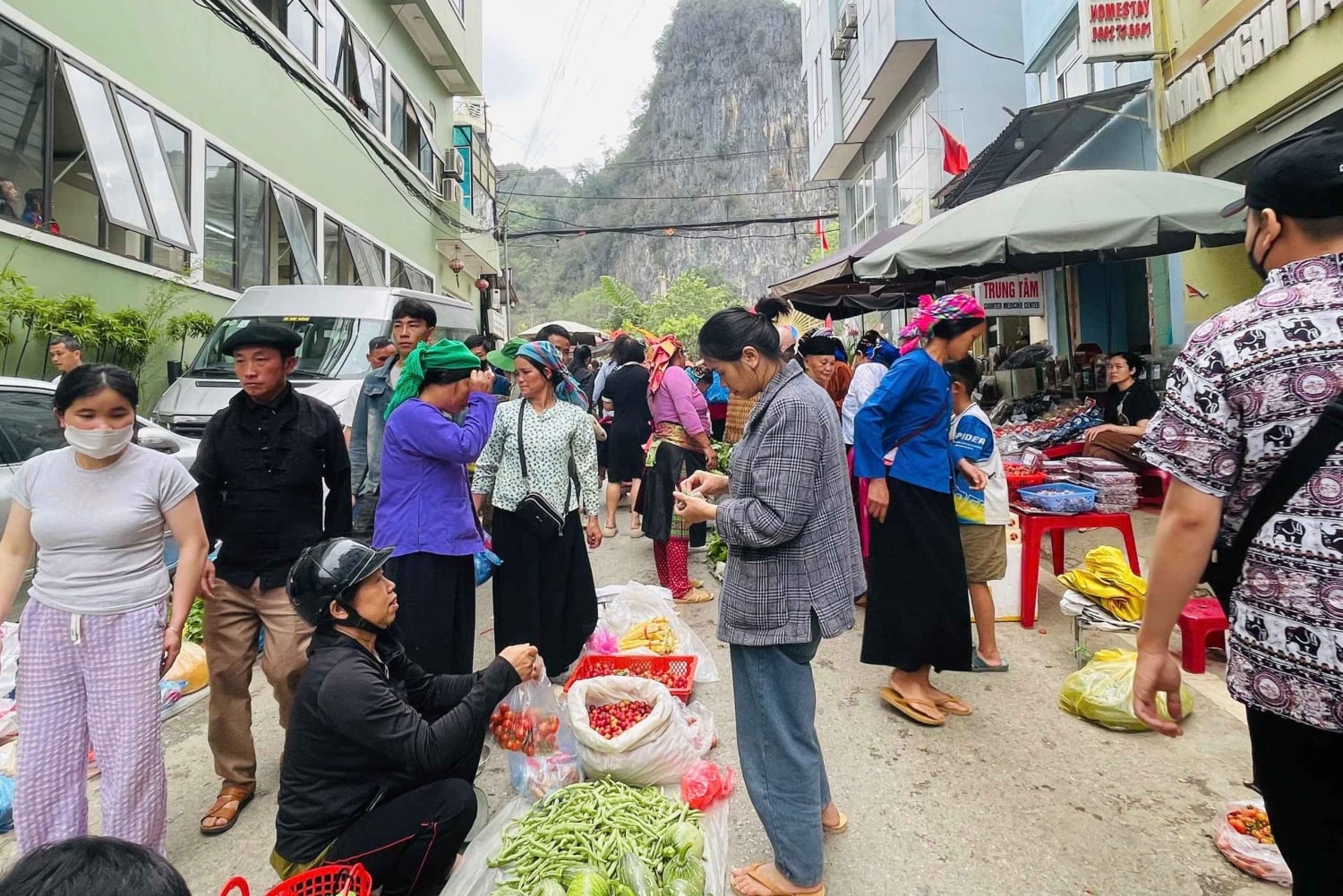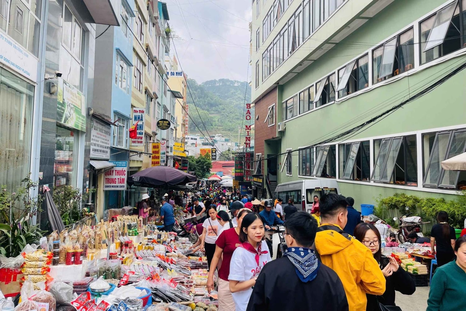 Beginne deinen Tag mit einer Abholung in Dong Van und fahre zu einem der berühmten ethnischen Märkte von Ha Giang. Tauche ein in die lebhafte Atmosphäre, in der sich die Einheimischen versammeln, um zu kaufen, zu verkaufen und ihr Erbe zu feiern. Erkunde die verschiedenen Bereiche des Marktes, von Viehhandelszonen bis hin zu traditionellen Textilständen. Probiere lokale Spezialitäten wie Thắng cố, saure Pho, Buchweizenkuchen und Maiswein. Besuch den 'Trinkmarkt' und schau zu, wie die Einheimischen bei Maiswein zusammenkommen. Wenn du abenteuerlustig bist, stieß mit ihnen an. Anschließend besuchst du ein nahe gelegenes ethnisches Dorf, um mehr über Stelzenhäuser, Terrassenfelder und das tägliche Leben zu erfahren. Rückkehr nach Dong Van mit optionalen Fotostopps unterwegs.Includes