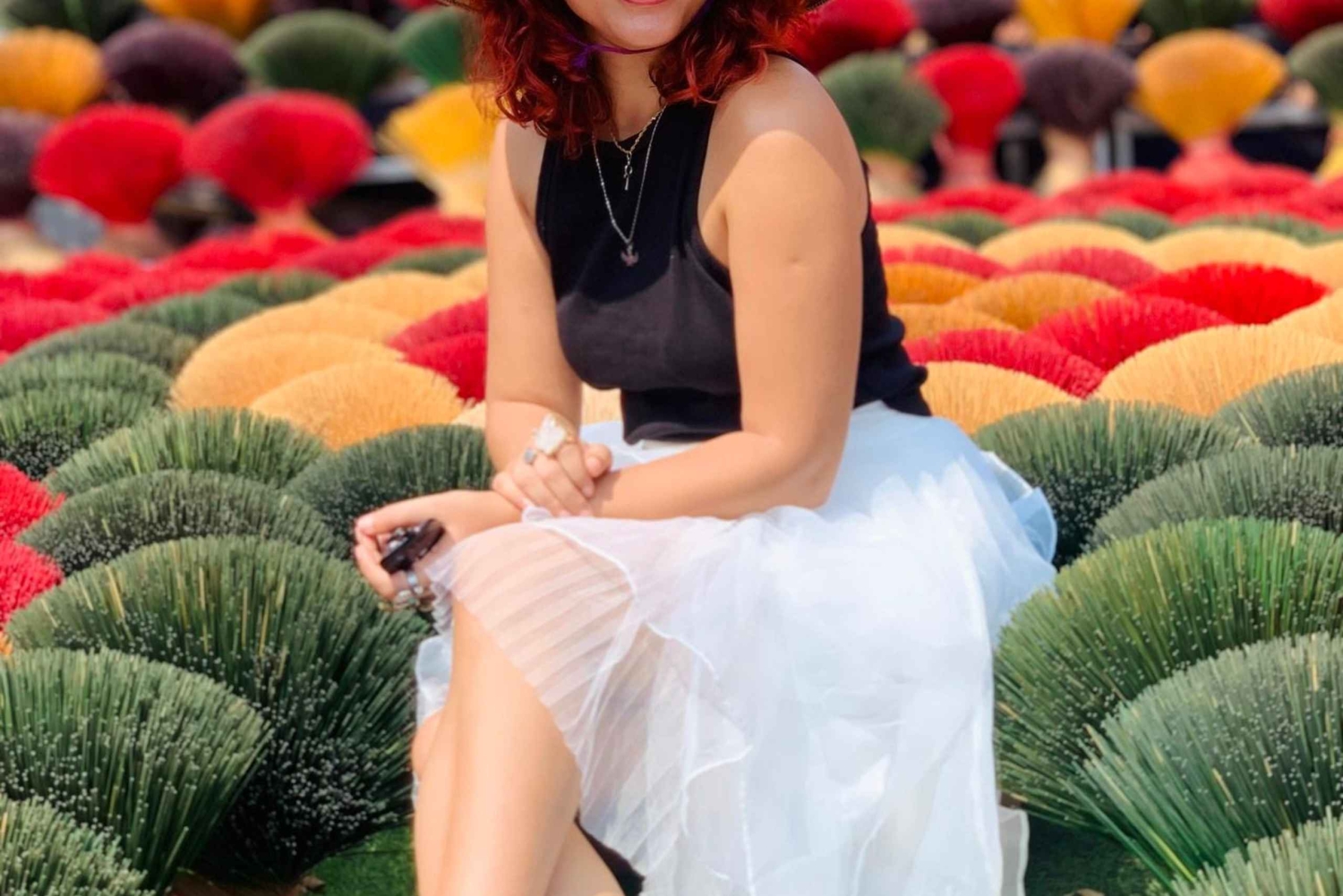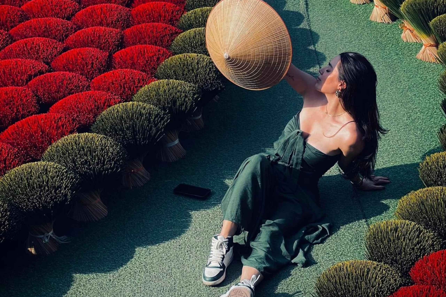 Entdecke die Pagode Dia Tang Phi Lai & das Weihrauchdorf Quang Phu Cau bei einer Führung. Erfahre mehr über die Geschichte der Pagode und die Herstellung von Räucherstäbchen. Oder besuche das Räucher- und Hut-Dorf