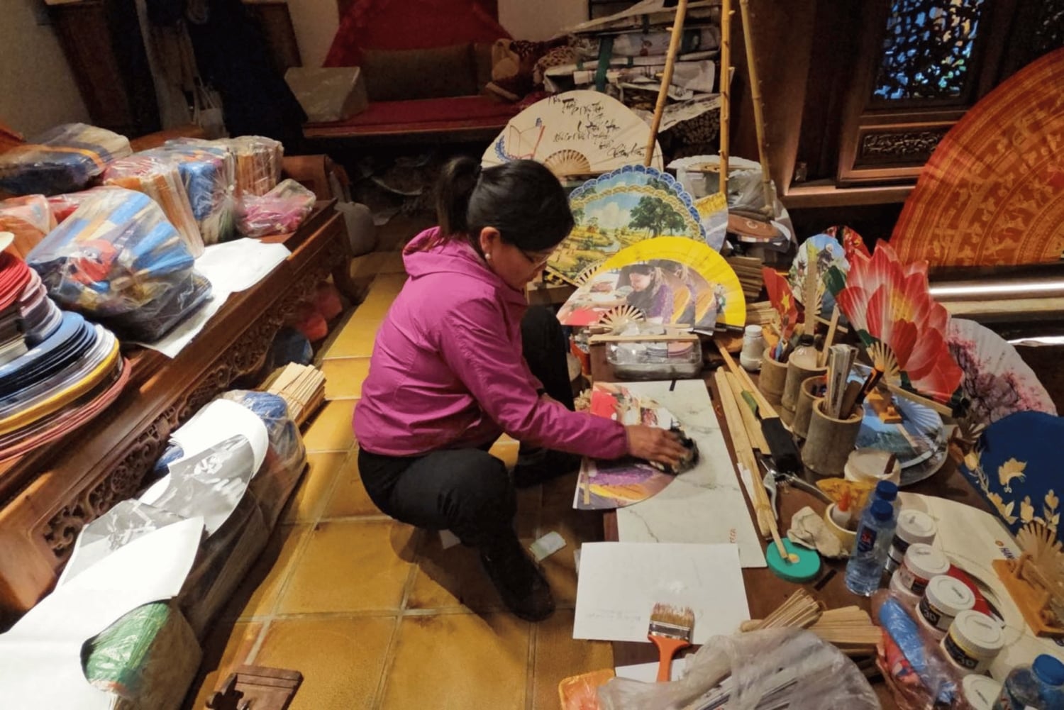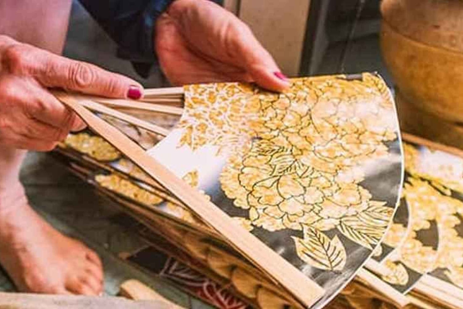 - Beobachte Handwerker bei der Arbeit und lerne etwas über den Prozess der Fächerherstellung.