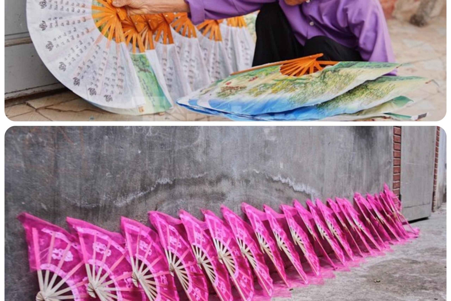 Besuch des Chang Son Handfächer-Dorfes und des Thach Xa Bambuslibellen-Dorfes⧏BR/⧐Beobachtung des traditionellen Fächerherstellungsprozesses⧏BR/⧐Interaktion mit lokalen Handwerkern⧏BR/⧐Besichtigung verschiedener Fächertypen, darunter Papier-, Bambus-, Rattan- und Seidenfächer⧏BR/⧐Mittagessen⧏BR/⧐Wasserflaschen⧏BR/⧐Alle Eintrittsgelder⧏BR/⧐Professioneller lokaler Tourguide⧏BR/⧐Abholung vom Hotel und Rücktransfer zum HotelImportant Information