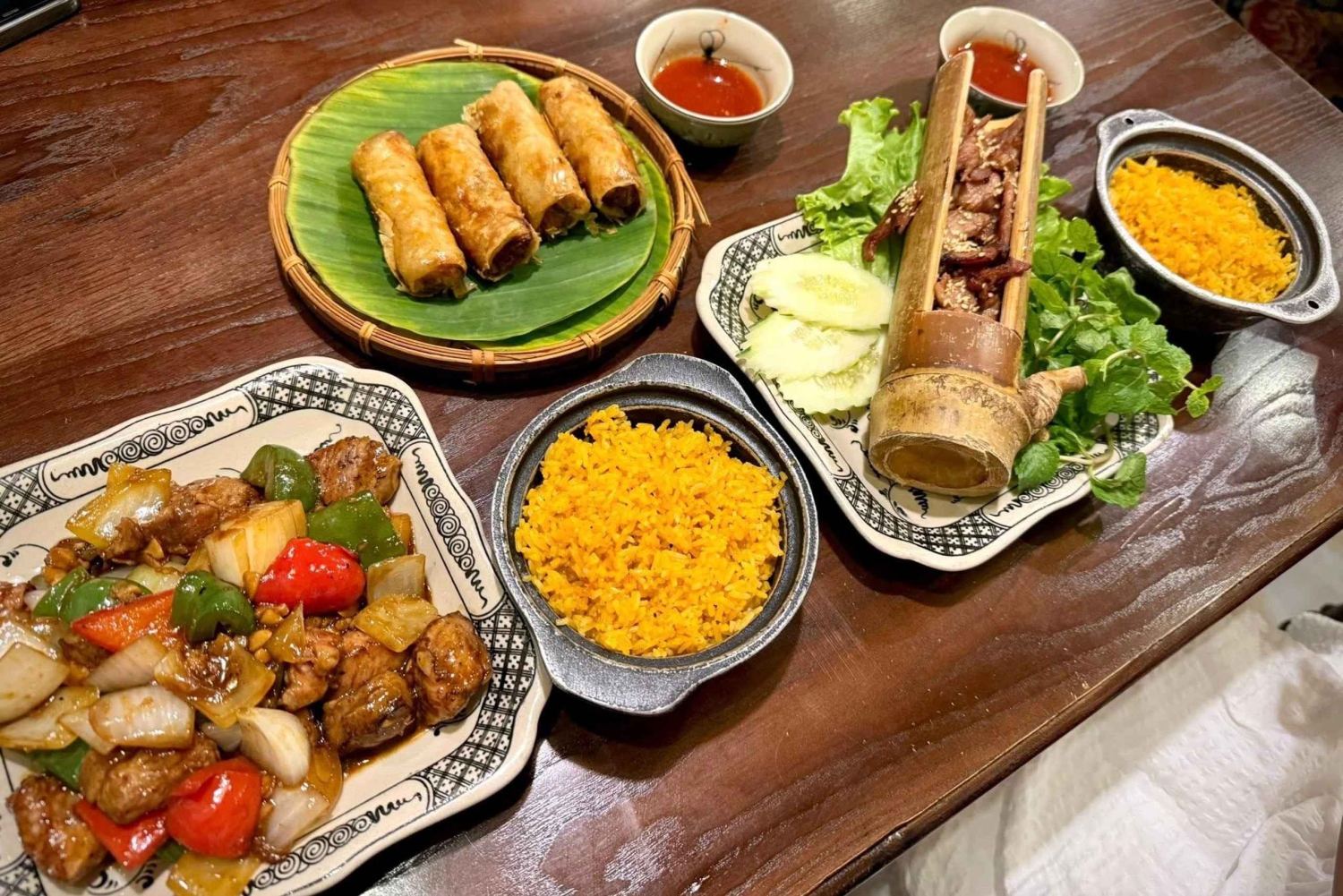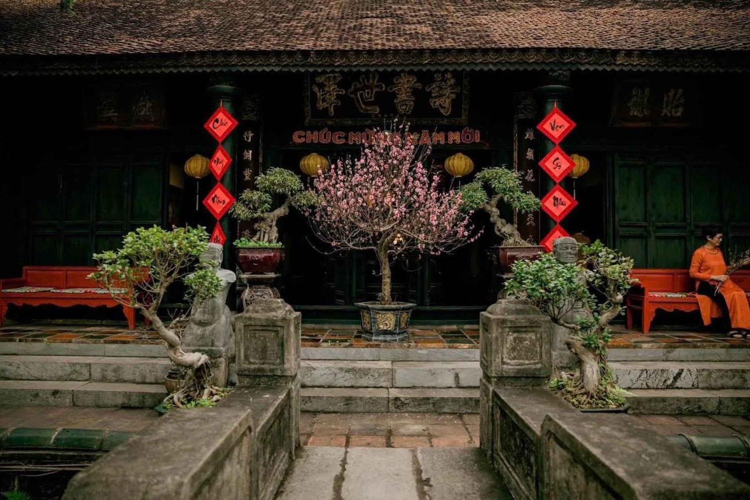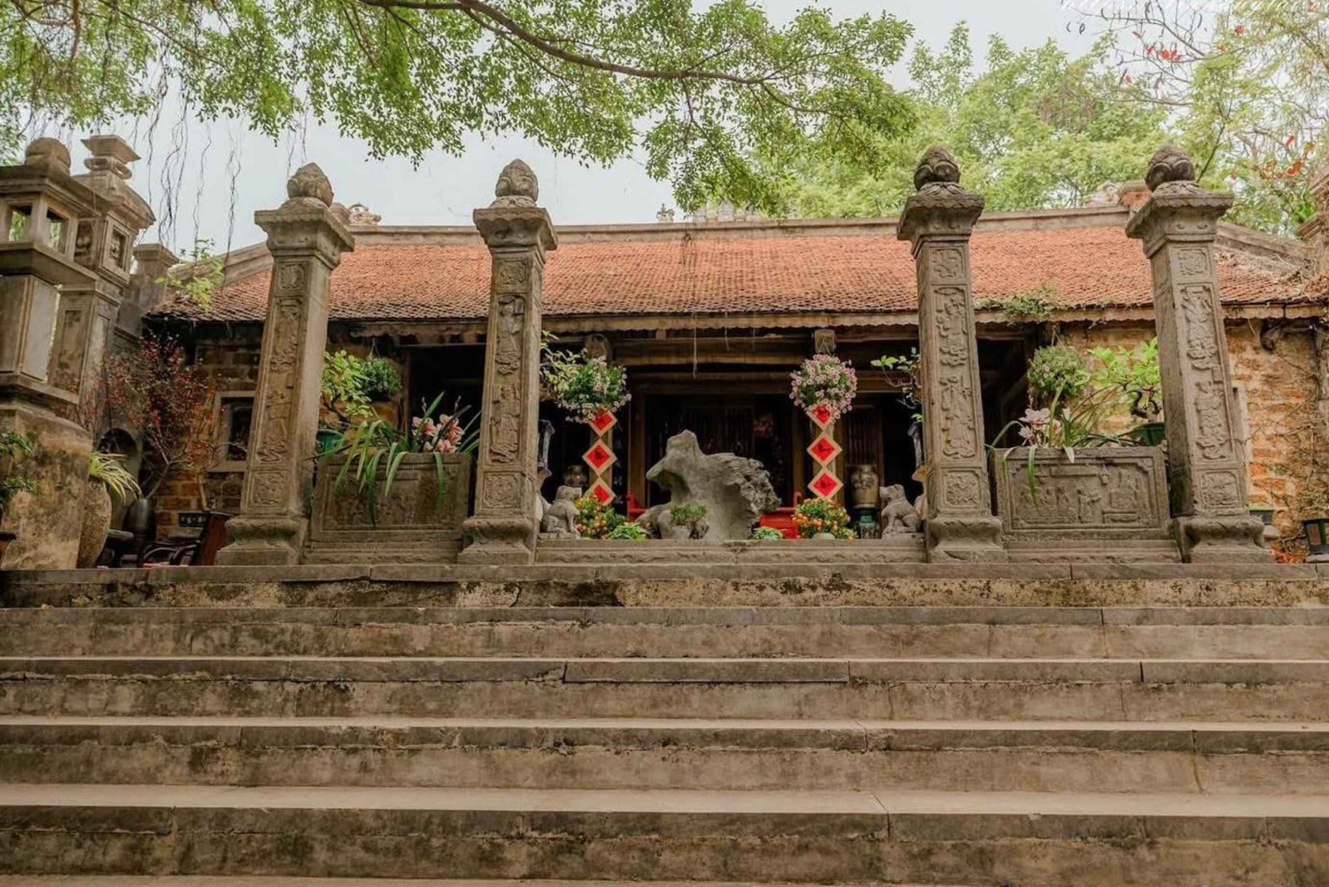 Option: Private Tour Viet Phu Thanh Chuong, ein architektonisches Meisterwerk mit Mittagessen Entdecke Viet Phu Thanh Chuong, ein architektonisches Meisterwerk, das 2001 von der Künstlerin Thanh Chuong ins Leben gerufen wurde. Dieses Kulturjuwel liegt am Keo-Ca-See in der Gemeinde Hien Ninh, Bezirk Soc Son, etwa 40 km vom Zentrum von Hanoi entfernt. Es erstreckt sich über 8000 m² und präsentiert die vietnamesische Kultur aus verschiedenen historischen Epochen. Entdecke einzigartige architektonische Werke wie das Thanh-Tinh-Haus, den Tuong-Van-Pavillon, das Mac-Huong-Haus, das Huong-Tor und das Xuan-Phong-Teehaus. Die alten Häuser wurden sorgfältig aus Nam Dinh, Ha Tinh, Thanh Hoa und Ha Giang ausgewählt, um einen traditionellen, ruhigen und kulturell reichen Raum zu schaffen. Schlendere um den weitläufigen Lotussees herum, der das Herrenhaus umarmt – ein Symbol für Eleganz, Ruhe und Raffinesse. Bewundere die Schönheit blühender Lotusblumen und tauche ein in eine poetische und friedliche Atmosphäre. Erlebe das sanfte Gefühl, in einem Boot zu sitzen, über das Wasser zu gleiten, dem Gesang der Vögel und dem Flüstern der Brise zu lauschen. Entspann dich in einer ruhigen, grünen Umgebung, umgeben von üppigen Gärten voller Blumen und Düfte. Spaziere auf den kleinen Wegen und bewundere die lebendige Schönheit von Blumen wie Aprikose, Pfirsich, Rose, Orchidee sowie seltene Bäume wie Banyan, Fünf-Frucht-Baum und Bodhi-Baum. Option HALBTÄGIGE Gruppen-Tour: Besuch von 2 Dörfern: Kegelhut- und Weihrauch-Handwerksdorf + Zugstraße (optional) Dauer: ca. 6 Stunden Morgenschen von 7:45 bis 13:30 Uhr Nachmittags von 11:45 bis 17:30 Uhr Lass dich in Hanois Altstadt abholen und fahre nach Chuong, einem Dorf, das seit über 300 Jahren für die Herstellung von Kegelhüten bekannt ist. Schau dir an, wie konische Hüte hergestellt werden, und bemale einen Hut, den du dann als Souvenir mit nach Hause nehmen kannst. Fahrt zum Dorf Quang Phu Cau, das seit mehr als 100 Jahren Weihrauch herstellt. Mach einen Spaziergang ins Dorfzentrum und sieh zu, wie die Einheimischen Weihrauch in handwerklicher, familiärer Atmosphäre herstellen. Lerne eine Familie kennen, die sich auf das Färben von Räucherstäbchen spezialisiert hat, und genieße die bunten Räucherbündel. Zurück ins Stadtzentrum. Erster Ort zum Aussteigen: Hanoi Train Street. Wenn du hier nicht abgesetzt werden möchtest, warte bitte im Auto.Includes