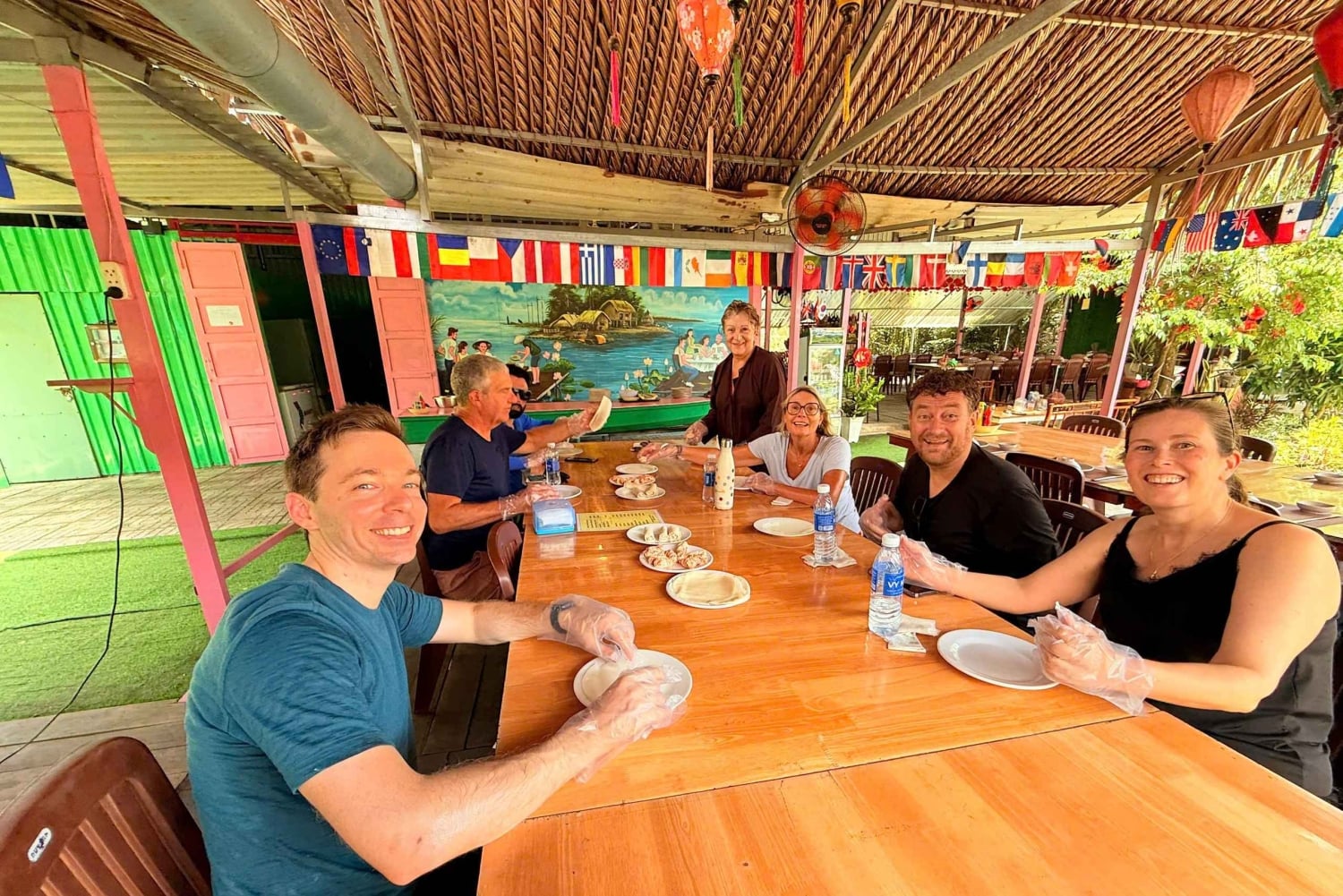 Erkunde das Mekong-Delta und treffe Einheimische auf einer Übernachtungsreise von Ho-Chi-Minh-Stadt aus. Genieße ein aktives Abenteuer mit Kajakfahren, Fahrradfahren, einer Bootsfahrt und einem Kochkurs während deiner 2-tägigen Tour. 7:40-8:20 Uhr: Der Reiseleiter und der Fahrer holen dich an deinem Hotel ab und machen sich auf den Weg nach Bến Lức - My Tho. 9:30 Uhr: Check in der Gastfamilie Tiny Garden ein. Erkunde das Dorf mit dem Fahrrad, besuche Obstgärten mit Drachenfrüchten und schöne Reisfelder. 10:50 Uhr: Nimm an einem Kochkurs teil, in dem du lernst, wie man Frühlingsrollen, Pfannkuchen und vietnamesische Gerichte zubereitet. 11:40 Uhr: Genieße vietnamesische BBQ-Gerichte zum Mittagessen. 13:30 Uhr: Besuche die Vinh Trang Pagode, den größten antiken Tempel im Mekong-Delta. Mach eine gemütliche Bootsfahrt auf dem Tien-Fluss, um die frische Luft zu genießen und das friedliche Leben der Einheimischen zu beobachten. Genieße die traditionelle vietnamesische Musik (Đàn Ca Tài Tử - eine Volkskunstform aus Südvietnam, die 2013 von der UNESCO als immaterielles Kulturerbe der Menschheit anerkannt wurde). Entspanne dich auf einem handgeruderten Sampan auf kleinen Kanälen. Besuche eine Bienenfarm und genieße einen Honigtee. Bootsfahrt zur größten Kokosnussbonbonfabrik im Mekong-Delta. 15:30 Uhr: Der Bus bringt dich zurück zum Family Tiny Garden Homestay. 18:30 Uhr: Abendessen (Barbecue) und Karaoke mit Übernachtung im Homestay. Tag 02: Erkunde die Landschaft mit dem Fahrrad und beobachte Reisfelder und Obstgärten 5:30 Uhr: Frühes Aufstehen, um mit dem Fahrrad den Sonnenaufgang über den Reisfeldern zu beobachten. Nach dem Frühstück erkundest du die Landschaft mit dem Fahrrad und besuchst Obstgärten, Drachenfrüchte, Grapefruits, Orangen, Guaven und Reisfelder. Besuche den lokalen Markt und genieße einen Kaffee. 8:30 Uhr: Kajakabenteuer durch ein Labyrinth von Wasserwegen. Weitere Aktivitäten: Reis pflanzen und Fische fangen. 11:50 Uhr: Mittagessen im Restaurant. 12:30 Uhr: Du checkst aus und fährst mit dem Bus zurück nach Ho-Chi-Minh-Stadt, wo du gegen 14:30 Uhr ankommst. Wir können diätetische Einschränkungen wie vegetarisch, vegan, glutenfrei usw. berücksichtigen. Wenn du diätetische Anforderungen hast, gib sie bitte bei der Buchung an.Includes