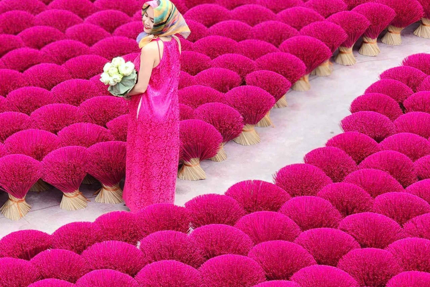 Dein beeindruckendes kulturelles Abenteuer beginnt mit einer bequemen Abholung von deinem Hotel in Hanoi um 8:30 Uhr. Lass den hektischen Rhythmus der Stadt hinter dir und genieße eine ruhige Fahrt durch die beschauliche Landschaft Vietnams. Innerhalb einer Stunde betrittst du drei authentische Handwerksdörfer, die alle eine seltene künstlerische Tradition bewahren, die über Generationen weitergegeben wurde. 1️⃣ Quang Phu Cau – Das lebende Weihrauchdorf Beginne deine Reise in Vietnams fotogenstem Dorf, wo Tausende von handgefertigten Räucherbündeln wie Blumen erblühen. Besuche eine lokale Handwerkerfamilie, deren Räucherstäbchen-Geheimnisse seit über 100 Jahren weitergegeben werden. Lerne den zarten Färbeprozess kennen, rolle deinen eigenen Weihrauch von Hand und mache lebendige Fotos von dieser einzigartigen Landschaft. ✨ Exklusiver Moment: Nimm an einem Räucherstäbchen-Färbeprozess teil, der von einem lokalen Handwerker veranstaltet wird. 2️⃣ Chuong – Die Seele des vietnamesischen Kegelhuts Fahre weiter zum Dorf Chuong, wo der ikonische Nón Lá mit Geduld und Sorgfalt von Hand hergestellt wird. Betritt eine bescheidene Werkstatt und triff einen national anerkannten Meisterhandwerker, der dafür bekannt ist, die Kunst der Herstellung von Kegelhüten seit vielen Generationen zu bewahren. Dann schau zu und lerne den gesamten Prozess – vom Biegen der Palmblätter bis zum Nähen der letzten Schichten – und gestalte deinen eigenen Kegelhut als bedeutungsvolles Andenken. Genieße ein hausgemachtes vietnamesisches Mittagessen, zubereitet von der Familie des Handwerkers – ein intimes und herzerwärmendes Erlebnis, das dich mit dem lokalen Leben abseits der Touristenpfade verbindet. 3️⃣ Phung Xa – Das ethische Seidendorf Beende deinen Tag in einem friedlichen Dorf, das für seine ethische Seidenproduktion bekannt ist. Besuche eine nachhaltige Seidenwerkstatt, in der Kunsthandwerker Seidenraupen auf natürliche Weise spinnen lassen und sogar Seide aus Lotusstängeln weben – ein seltenes und umweltfreundliches Handwerk, das es nur an wenigen Orten in Vietnam gibt. Hier hast du die seltene Gelegenheit, einen nationalen preisgekrönten Seidenhandwerker zu treffen, der persönlich seine Erkenntnisse über die alte Kunst des Seidenwebens und die Philosophie der humanen Handwerkskunst teilt. Füttere die Seidenraupen, beobachte die Webstühle in Bewegung und erkunde einen kleinen Ausstellungsraum mit zarten, handgefertigten Schals, die alle eine Geschichte von Mitgefühl, Geduld und zeitloser Schönheit erzählen. Einzigartiges Highlight: Erfahre mehr über eine humane Seidenherstellungsmethode, die Seidenraupen schützt – ein Erlebnis, das auf den meisten Touren nicht verfügbar ist. Nach einem Tag voller Kreativität, Kultur und Verbundenheit entspannst du dich auf der malerischen Rückfahrt nach Hanoi. Du kehrst gegen 17:00 Uhr zurück und nimmst nicht nur deine handgefertigten Kreationen mit, sondern auch eine tiefere Wertschätzung für Vietnams lebendiges Erbe. Warum Reisende es lieben Diese Erfahrung geht über Sightseeing hinaus – sie ist eine echte Verbindung mit der künstlerischen Seele Vietnams. Reisende lieben es, echte Kunsthandwerker zu treffen, ihre inspirierenden Geschichten zu hören und an praktischen Aktivitäten teilzunehmen, die nur wenige Besucher erleben. ⏰ Dauer: 8:30 bis 17:00 Uhr Mittagessen inbegriffen (bei einem lokalen Kunsthandwerker) Hin- und Rücktransfer von deinem Hotel in HanoiIncludes
