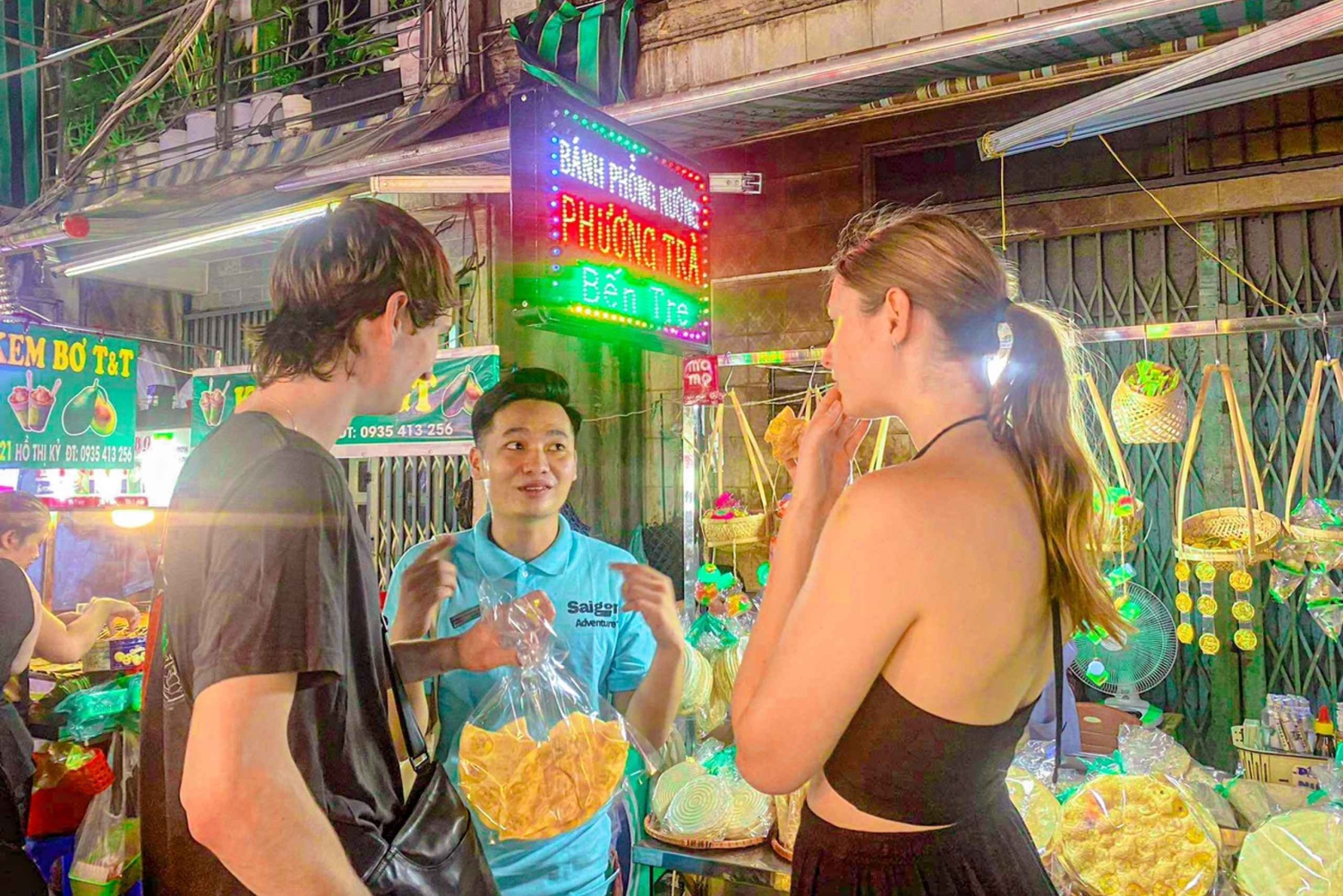 Mach eine Motorradtour durch 4 der bunten Viertel von Ho Chi Minh. Tauche ein in die Kultur und Geschichte von Saigon, mische dich unter die Einheimischen und probiere leckere lokale Gerichte. Du fährst auf dem Sozius hinter den Fahrern, um die einzigartige Atmosphäre mit deinem Reiseleiter und anderen Reisenden zu genießen und Erinnerungen zu schaffen, die ein Leben lang halten! Warum bei uns buchen? Wir sind Saigon Adventure – die Nr. 1 unter den Motorradtouren auf allen OTAs mit über 30.000 Bewertungen. Deine Sicherheit ist unsere oberste Priorität! Saigon Adventure ist ein voll lizenziertes und legales Reiseunternehmen, das sicherstellt, dass dein Erlebnis sowohl sicher als auch professionell organisiert ist. Beachte, dass 90 % der Roller-Touren illegal sind. Du wirst von einem guten und sicheren Fahrer mit Roller-Unfallversicherung (bis zu 5000 $) gefahren. - Es gibt auch eine Option für weibliche Fahrer Es gibt auch eine vegetarische Option. - Für diejenigen, die nicht viel essen, gibt's 7 Verkostungen + Sightseeing Reiseroute & Probiermenü: #1. Nach einer aufregenden Fahrt (15 Minuten) bringt dich unser erster Halt zu einem versteckten Juwel in Bezirk 1. Hier kannst du in eine dampfende Schüssel Bún Bò Huế eintauchen – eine reichhaltige, intensiv schmackhafte Rindfleischnudelsuppe, die einen lebendigen Kontrast zum bekannten Phở bietet, ein wirklich einzigartiger Geschmack Zentralvietnams. Bevorzugst du Hühnchen oder Schweinefleisch? Wir haben alles für dich! #2. Nach der zweiten Fahrt (10 Minuten) bietet unser nächster Halt im District 3 gegrillte Banane mit Klebreis — gegrillte Kochbanane mit cremiger Kokosmilchsauce, die süße und herzhafte Aromen wie Tapioka und geröstete Sesamsamen vereint. Es wird stolz als eines der 10 besten Streetfoods der Welt anerkannt. #3. Nach einer angenehmen 15-minütigen Fahrt erreichen wir das lebendige Viertel Nguyễn Thiện Thuật – ein lebendiger, authentischer Einblick in das lokale Leben. Hier kannst du Bánh Khọt genießen: knusprige, herzhafte Pfannkuchen mit Garnelen, serviert mit frischen Kräutern, Gemüse und einer leckeren Dip-Sauce. (Zutaten: Reismehl, Ei, Kokosmilch, Kurkumapulver. Serviert mit: Senfgrün, Salat, Thai-Basilikum, lila Minze, Ambarella-Blatt, Fischsauce.) Dann geht's in 5 Minuten zu einem lebhaften Blumenmarkt und einem geschäftigen kambodschanischen Markt, wo du eine Reihe von leckeren Streetfoods genießen kannst: #4. Barbecue-Rindfleisch, eingewickelt in Betelblatt. #5. Frühlingsrolle: frische Rollen mit Garnelen, Schweinefleisch, Salat und Erdnusssauce. Nr. 6. Gegrillte Auster mit schwarzer Pfeffersauce #7. Bananen- oder Kokosnuss-Cracker: Der berühmteste lokale Snack der Stadt, hergestellt aus Eiweiß, das mit Zucker und Sesam, Ingwer und Banane geschlagen wird. #8. Kalter Zuckerrohrsaft mit Kumquat, einer Art Zitrone. Das ist der beliebteste Saft in Ho Chi Minh City. Dein Abenteuer gipfelt am berühmtesten lokalen Treffpunkt im 10. Bezirk, wo du das authentische Saigon-Leben genießen kannst! #9. Saigons Signature-Baguette (Bánh Mì): das bekannteste Baguette der Welt, mit Wurst, Pastete, Butter, Fleisch, Gurke, Chili, eingelegtem Gemüse. Es ist das beste Streetfood in Vietnam. #10. Flan oder süße Suppe (Che): zwei sehr berühmte Desserts in der Stadt. #11 & #12. Eiskalter Jasmintee und kaltes Saigon-BierIncludes