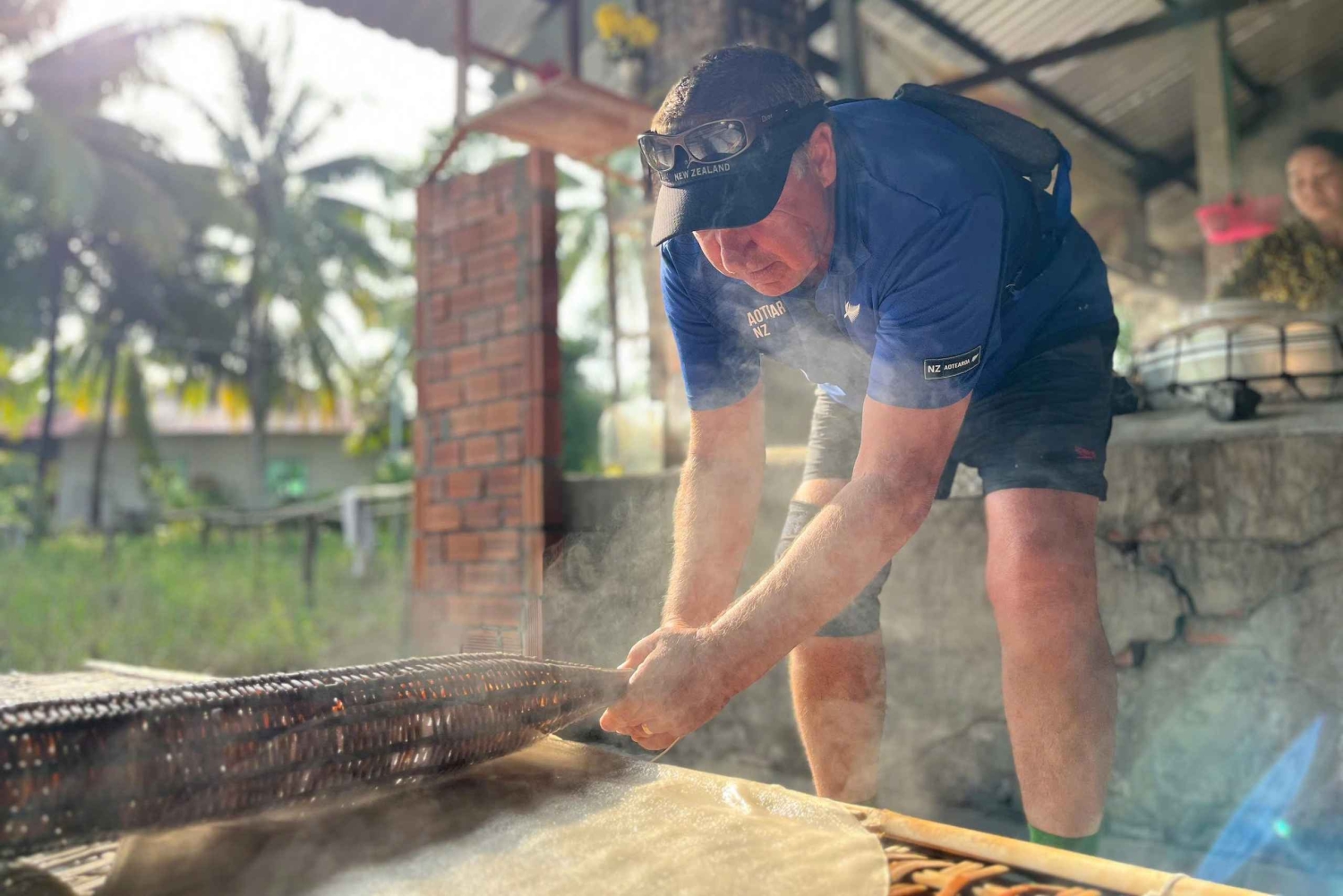- El tour implica caminar por carreteras rurales y granjas. Los participantes tendrán la oportunidad de hacer su propia lámina de fideos y «bánh hỏi mặt võng». El tour incluye degustaciones de especialidades locales.