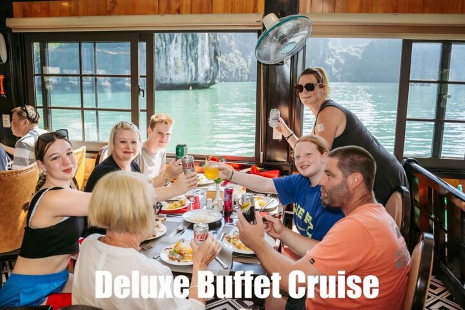 Servicio de recogida y regreso en la zona del casco viejo de Hanoi Entradas a todas las atracciones de la lista Paseo de 2 horas en barco por Tam Coc y subida a la cima de la Cueva de Mua Guía de habla inglesa Paseo en barco por Tam Coc y en bicicleta por Ninh Binh Cena y alojamiento en Ninh Binh (opcional) Traslado en autobús limusina de Ninh Binh a la bahía de Ha Long Crucero de lujo por la bahía de Ha Long con un recorrido de 6 horas Paseo en kayak o en barco de bambú por la bahía de Ha Long Té al atardecer en el crucero por la bahía de Ha Long Comidas: 1 comida y 1 desayuno en Ninh Binh, y 1 comida en el cruceroEasy cancellation