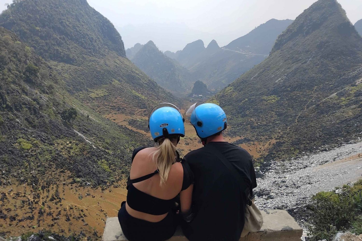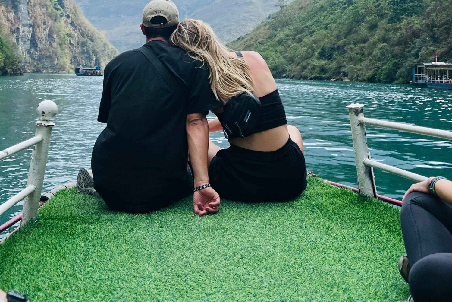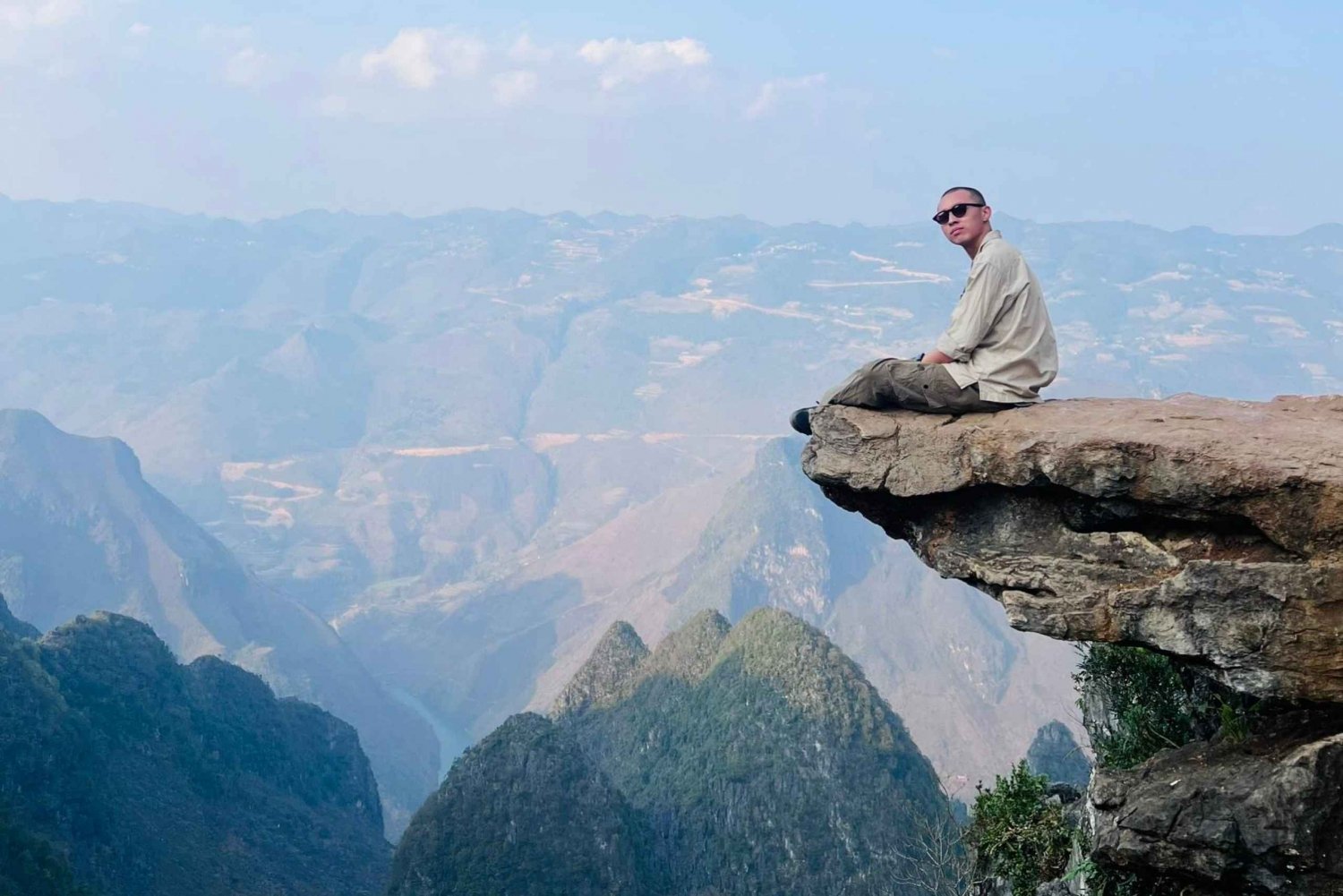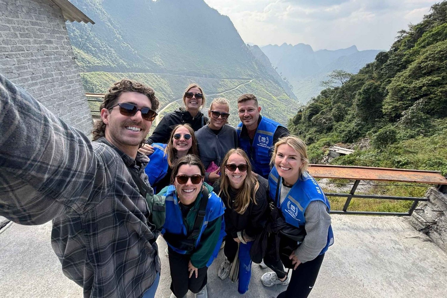 ITINERARIO COMPLETO 4 DÍAS 3 NOCHES: Día 1: Empiezas en Ha Giang y subes a la Puerta del Cielo de Quan Ba. Está en lo alto y desde allí puedes ver muchas cosas. A continuación, visitas la Cueva de Lung Khuy, cuyo interior tiene formas rocosas muy chulas. Terminas el día en la ciudad de Yen Minh, un lugar tranquilo y una bonita casa de familia para descansar. Día 2: Desde Yen Minh, subes por el paso de Tham Ma, una carretera que atraviesa las colinas. A continuación, visitas el Palacio del Rey H'mong, una antigua casa con mucha historia. Luego vas al Punto de la Bandera de Lung Cu, la cima de Vietnam. Sigue avanzando y llegarás al Punto Norte de Vietnam, frontera con China. Terminarás en la Ciudad Antigua de Dong Van, un lugar antiguo con mucha historia. Día 3: Por la mañana, pasea por la Ciudad Antigua de Dong Van. Después, conducirás hasta el Acantilado Blanco, una gran pared de roca blanca. Lo siguiente es el Paso de Ma Pi Leng, una carretera estrecha con grandes desniveles en los lados, pero con unas vistas magníficas. Desciendes hasta el río Nho Que para dar un paseo en barco y contemplar el cañón más profundo del Sudeste Asiático. Luego sigues hasta la aldea de Du Gia, un lugar tranquilo. Pasaremos la última noche en Du Gia. Día 4: Saldrás de la aldea de Du Gia y tomarás la carretera 181 hacia la aldea de tejedores de Lung Tam, donde la gente hace hermosos dibujos de farbric. Luego regresas a la ciudad de Ha Giang. Esta excursión es una forma estupenda de ver las montañas y conocer la cultura de Ha Giang. Podrás ver muchos lugares diferentes y conocer a la gente que vive allí.Includes