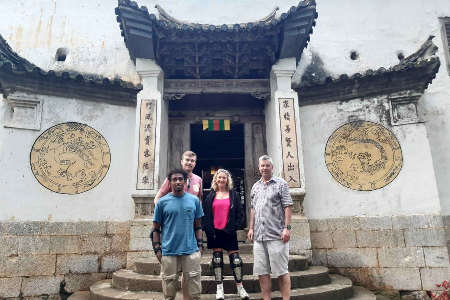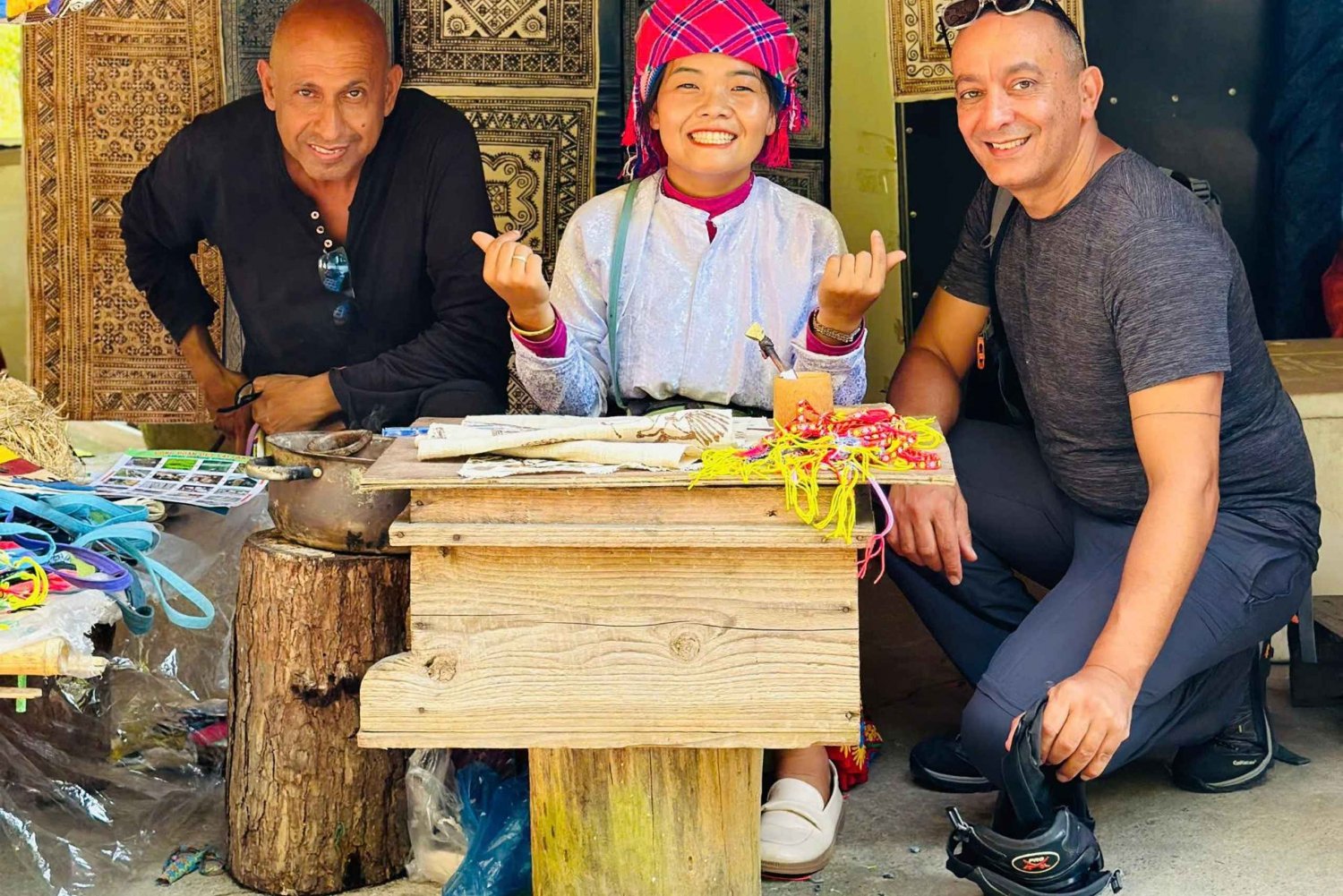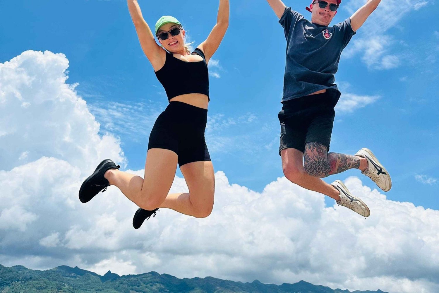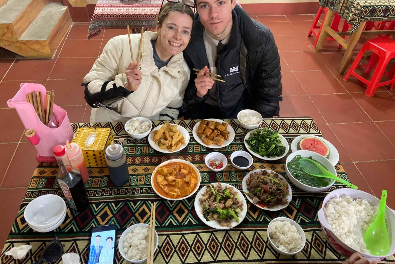 ITINERARIO COMPLETO 4 DÍAS 3 NOCHES: Día 1: Empiezas en Ha Giang y subes a la Puerta del Cielo de Quan Ba. Está en lo alto y desde allí puedes ver muchas cosas. A continuación, visitas la Cueva de Lung Khuy, cuyo interior tiene formas rocosas muy chulas. Terminas el día en la ciudad de Yen Minh, un lugar tranquilo y una bonita casa de familia para descansar. Día 2: Desde Yen Minh, subes por el paso de Tham Ma, una carretera que atraviesa las colinas. A continuación, visitas el Palacio del Rey H'mong, una antigua casa con mucha historia. Luego vas al Punto de la Bandera de Lung Cu, la cima de Vietnam. Sigue avanzando y llegarás al Punto Norte de Vietnam, frontera con China. Terminarás en la Ciudad Antigua de Dong Van, un lugar antiguo con mucha historia. Día 3: Por la mañana, pasea por la Ciudad Antigua de Dong Van. Después, conducirás hasta el Acantilado Blanco, una gran pared de roca blanca. Lo siguiente es el Paso de Ma Pi Leng, una carretera estrecha con grandes desniveles en los lados, pero con unas vistas magníficas. Desciendes hasta el río Nho Que para dar un paseo en barco y contemplar el cañón más profundo del Sudeste Asiático. Luego sigues hasta la aldea de Du Gia, un lugar tranquilo. Pasaremos la última noche en Du Gia. Día 4: Saldrás de la aldea de Du Gia y tomarás la carretera 181 hacia la aldea de tejedores de Lung Tam, donde la gente hace hermosos dibujos de farbric. Luego regresas a la ciudad de Ha Giang. Esta excursión es una forma estupenda de ver las montañas y conocer la cultura de Ha Giang. Podrás ver muchos lugares diferentes y conocer a la gente que vive allí.Includes