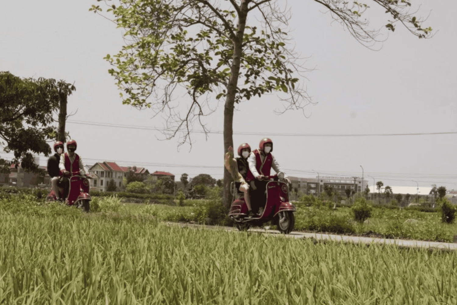 Aquí tienes un itinerario para 'Campo de Hanoi en Scooter: Arrozal, Ciudadela y Casa Local': Recogida en el Hotel: Nuestro recorrido comienza con una recogida en scooter o scooter personal hacia la campiña Puente de Long Bien: Comenzaremos nuestra aventura en scooter a través del Puente de Long Bien, disfrutando de las impresionantes vistas mientras nos dirigimos al campo. Puerta de la Aldea Antigua: Nuestra primera parada es en la antigua puerta de la aldea, al otro lado del río Rojo, donde aprenderás sobre la historia y la cultura de la zona. Aprenderemos cómo elaboran los vietnamitas el vino de arroz, que en broma llamamos 'agua feliz'. Campos de arroz y agricultura: Continuaremos nuestro viaje en scooter a través de vastos arrozales, aprendiendo sobre la agricultura y la vida rural vietnamitas por el camino. Antiguo Templo y Capital de Co Loa: Nuestra siguiente parada es en un antiguo templo y en la antigua capital vietnamita de Co Loa, donde descubrirás más sobre la rica historia de la región. Visita con los lugareños: De regreso, visitaremos a los lugareños y charlaremos con ellos, aprendiendo sobre las costumbres vietnamitas y experimentando la paz del campo vietnamita. Viaje en barco a Hanói: Regresaremos a Hanói en barco, disfrutando de las vistas y sonidos de la ciudad mientras emprendemos el camino de vuelta. Cultura del Café: Nuestro recorrido concluye con una parada en una cafetería local, donde podrás sentarte y saborear una taza de café mientras experimentas la singular cultura cafetera de Hanói. Esta excursión de medio día en scooter es una forma estupenda de explorar la belleza de la campiña de Hanói y experimentar su rica cultura e historia. ¡Reserva tu plaza hoy mismo! 🚴♀️Includes