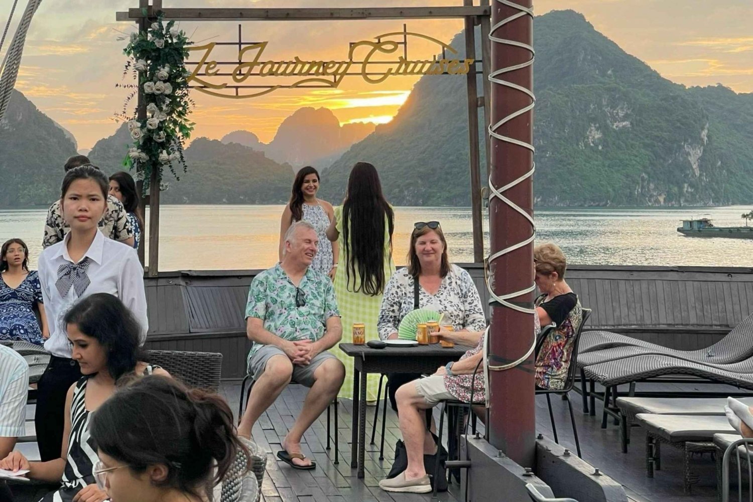 DÍA 1: HANOI - BAHÍA DE HALONG - CUEVA SORPRESA E ISLA TITOP 08:00-08:30 Recogida en tu hotel en el casco antiguo de Hanoi y traslado a Ha Long. 11:30-12:00 Llegada al puerto internacional de cruceros de Tuan Chau para realizar el check-in. 12:00-14:00 Embarque en el crucero Le Journey, bienvenida con una bebida y almuerzo en el restaurante del crucero. 14:00-17:00 Exploración de la Cueva Sorprendente y la isla Titop con actividades de natación y senderismo. 17:00-18:00 Regreso a bordo para la fiesta al atardecer y la clase de cocina. 18:00-19:00 Hora feliz: COMPRA 2 BEBIDAS Y LLÉVATE 1 GRATIS. 19:00-20:00 Disfruta de la cena en la cubierta (si el tiempo lo permite). 20:00-22:00 Después de la cena, disfruta de la noche en el crucero con música, juegos de mesa, karaoke o pesca de calamares. 22:00 Noche en el crucero con hora de silencio. DÍA 2: CUEVA LUON - BAHÍA DE HA LONG - HA NOI 06:45-07:30 Desayuna a bordo mientras el barco comienza a navegar hacia el Área Natural Protegida. 07:45-09:00 Regresas a tu camarote para prepararte para las actividades de kayak en la cueva de Luon. Al llegar a la zona de la cueva de Luon, participarás en actividades de kayak o rafting alrededor de formaciones rocosas milenarias. Si tienes suerte, podrás tomar fotos increíbles de los traviesos monos que saltan por los acantilados. 09:30 Hora de salida. Deja tu equipaje fuera de tu camarote y entrega la llave de la habitación en la recepción. Nuestro personal se encargará de trasladar tu equipaje a la zona de espera. Mientras esperas, puedes comprar algunos productos de Le Journey Cruise. 10:00 Disfruta de un almuerzo temprano en el restaurante de la segunda planta y liquida la cuenta, si la hay. 11:00 Llegada al puerto deportivo de Tuan Chau. Fin del viaje. Gracias por utilizar los servicios de Le Journey Cruise. Esperamos darte la bienvenida de nuevo en nuestro crucero. ¡Adiós y hasta la próxima! NOTA: Se organizarán otras opciones de traslado si necesitas llegar al aeropuerto.Includes