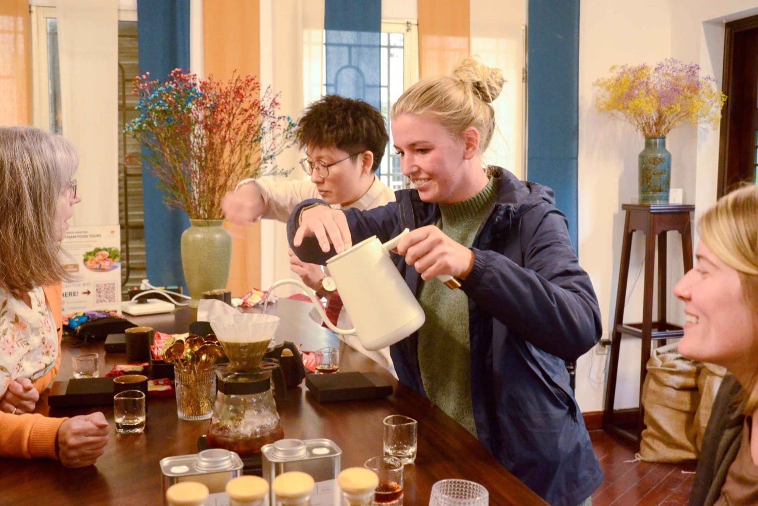 Sumérgete en la rica cultura cafetera vietnamita en este taller de Hanoi, muy bien valorado, dirigido por un apasionado narrador local. No es solo una clase, es un viaje por la historia, el patrimonio y las historias ocultas detrás de cada café vietnamita icónico. Desde la época colonial francesa hasta el ingenio en tiempos de guerra, escucharás cómo el café de Vietnam evolucionó desde sus humildes comienzos hasta convertirse en el segundo mayor productor de café del mundo. Descubre las regiones de cultivo únicas, los métodos tradicionales de tueste y los rituales culturales que han dado forma a la elaboración y el disfrute del café a lo largo de las generaciones. Dependiendo de tu nivel de experiencia, elaborarás y probarás 2, 3 o 4 bebidas de café al estilo de Hanói, como el café con huevo, el café con sal, el café con coco o el cóctel de café, utilizando auténticas herramientas y técnicas vietnamitas. Te recibiremos con una relajante taza de té de hierbas y un ligero tentempié local. Cuando te vayas, no solo te llevarás recetas, sino también historias que recordarás mucho después de tu último sorbo. Detrás de cada taza hay una comunidad. Su Quan tiene su propia plantación de café en Da Lat, donde las familias llevan generaciones cuidando sus tierras y cultivos. A través de nuestra iniciativa cultural, una parte de cada taller contribuye a la educación de los hijos de los agricultores, ayudándoles a acceder a las oportunidades que sus padres esperaban. Al unirte a esta experiencia, te conviertes en una parte de ese círculo de apoyo, donde el patrimonio, la artesanía y las esperanzas futuras se unen en cada preparación.Includes