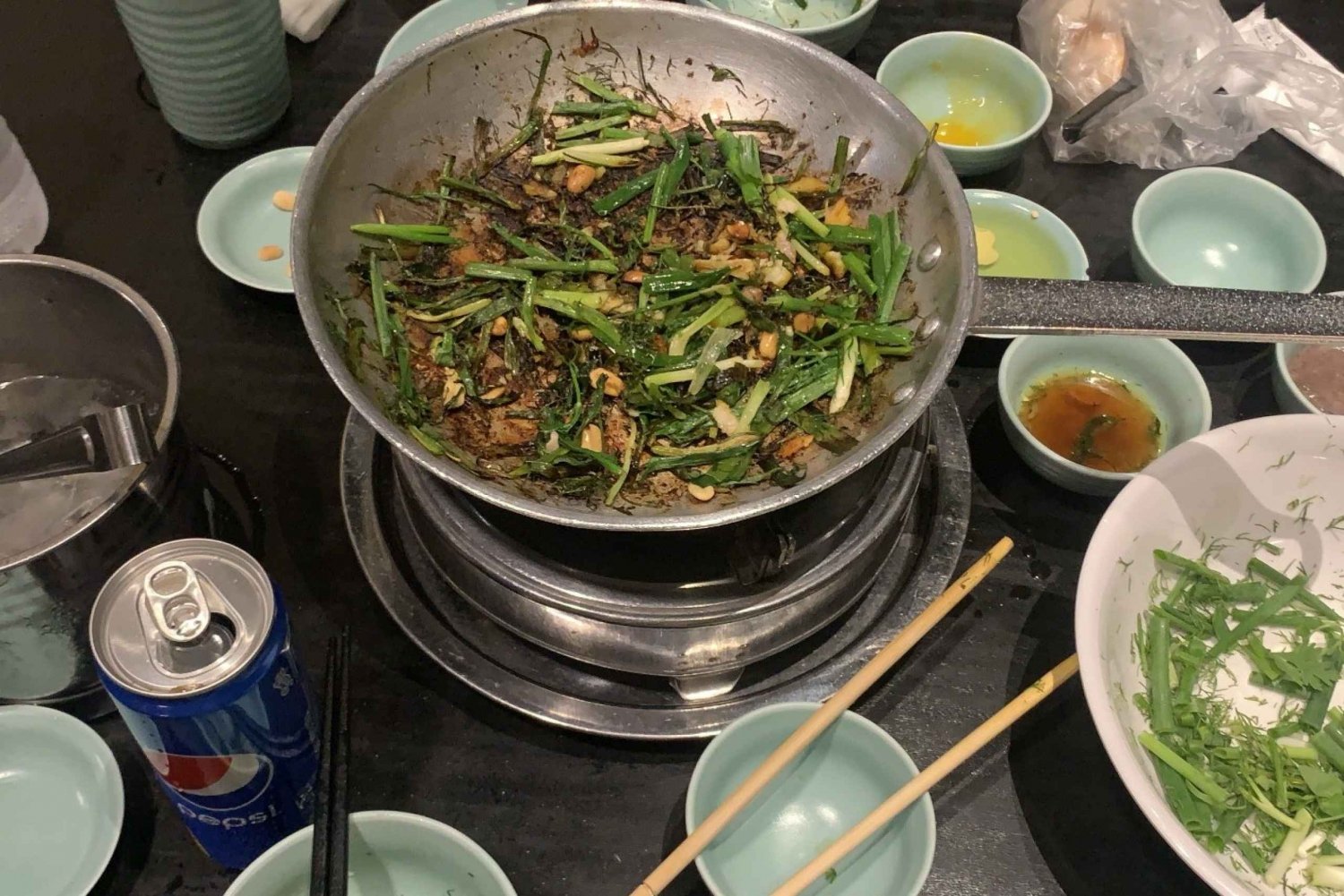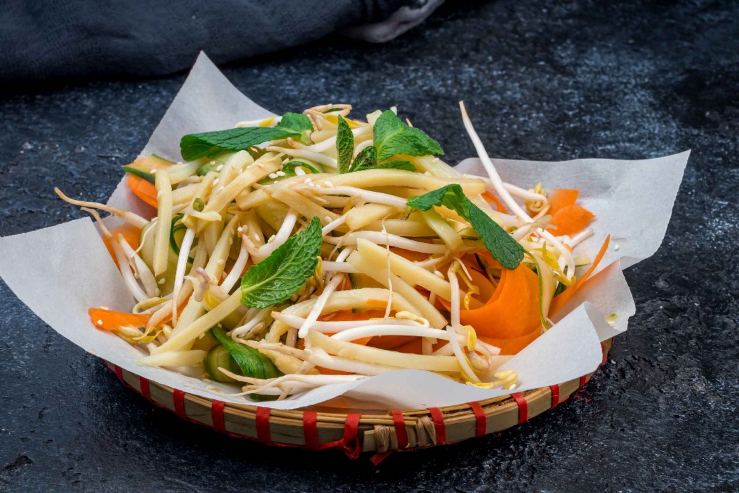Descubrir la comida callejera del Casco Antiguo de Hanói puede ser un acto de fe sin un guía que te guíe hacia lo que debes comer y evite que te pierdas. Con este recorrido en grupo reducido, visitarás lugares de comida de confianza para probar clásicos como la tortita de arroz al vapor, la ensalada de fideos mixtos, la tortita crujiente, el rollito de primavera frito, el café con huevo y mucho más, todo ello con un guía que describirá cada plato y te ayudará a orientarte. Cuando estés en Hanoi, explorar el panorama gastronómico callejero de la ciudad es una actividad obligada. Aquí tienes algunos de los platos más deliciosos que puedes probar: 1. Banh Cuon (arroz al vapor vietnamita): un delicioso plato que suele servirse en el desayuno. 2. Bún cha Obama - un plato de cerdo a la parrilla y fideos, que se cree originario de Hanoi, Vietnam. El bún chả se sirve con cerdo graso a la parrilla (chả) sobre un plato de fideos de arroz blanco (bún) y hierbas con una guarnición de salsa para mojar. 3. El papel de arroz a la parrilla se llama pizza vietnamita porque este plato se prepara y se parece bastante a una pizza. 4. Ensalada de fideos mixtos (Bun bo tron Nam Bo): un plato tradicional de fideos con carne. 5. Receta de Palitos de Cerdo a la Parrilla (Nem Lui Da Nang) que es un plato sorprendente en la bella ciudad playera. Además de los palitos de cerdo a la parrilla, algo importante para crear su sabor es la salsa. Servirlos con verduras y esta salsa te aportará una sensación espectacular que nunca antes habías sentido. 6. Postres: una sopa de postre dulce y cremosa hecha con leche de coco, judías y frutas, o el Café de Huevo vietnamita, un café rico y espumoso cubierto con yema de huevo batida y leche condensada. 7. La calle del tren de Hanoi La escena gastronómica callejera de Hanoi es una visita obligada para cualquiera que visite la ciudad. Asegúrate de explorar los pequeños callejones y los puestos callejeros ocultos para encontrar los mejores platos, ¡y no tengas miedo de probar algo nuevo! Más opciones: Tendremos otras opciones en función de la cantidad y el tiempo: Ostra a la parrilla con cebolla verde (Hàu nướng mỡ hành): Estas ostras a la parrilla al estilo vietnamita son sabrosas y bonitas a la vista con los añadidos de aceite de cebolleta y cacahuetes tostados. La palabra vietnamita para 'pan', 'bánh Mì' (pronunciado BUN-mee), también describe un tipo único de bocadillo que es una fusión culinaria de dos culturas y un brillante ejemplo de cómo la comida siempre está conectada con la historia. ¿Qué es el pho? Es uno de los platos más populares de Vietnam, con fideos masticables, caldo sabroso y carne tierna. Acompáñanos en un sabroso viaje mientras te revelamos toda la información que necesitas para apreciar plenamente esta joya culinaria de Vietnam. Si estás en un tour privado y quieres probar otros platos según tus deseos, háznoslo saber y concertaremos una cita. Será un honor conocerte y servirte a ti y a los tuyos mediante un programa adaptado a tus necesidades.Includes