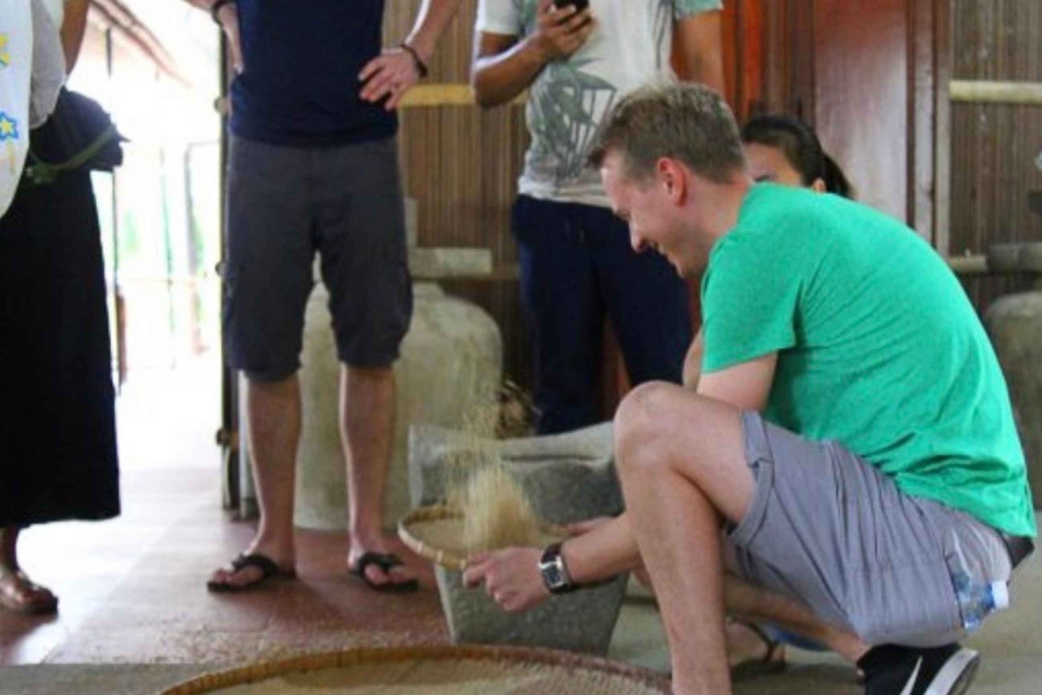 Sé creativo y descubre la auténtica forma de preparar la comida vietnamita con esta clase de cocina en Hoi An. Elabora 4 sabrosos platos con tu chef mientras bebes agua y zumo de fruta de la pasión gratis. Aprende todos los secretos de la buena cocina vietnamita mientras te enseñan a machacar y separar el arroz, a molerlo para hacer leche de arroz y a hacer papel de arroz. Prueba a utilizar los utensilios de cocina tradicionales, como el mortero de piedra, el molinillo y la mano de mortero de madera, mientras preparas la comida. Sigue las instrucciones de tu chef para cocinar 4 platos vietnamitas por excelencia, incluida la famosa sopa Pho (de fideos con carne). Después, siéntate y relájate para saborear tus deliciosas creaciones. Acércate aún más a la cultura vietnamita seleccionando la opción de visita a un mercado y paseo en barco con cestas de bambú. Compra en un mercado local mientras conoces las partes principales de la cocina vietnamita y eliges los ingredientes frescos para la clase de cocina. Después, dirígete a la aldea cocotera de Cam Thanh para montar en un singular paseo en barco con cestas de bambú. Explora la belleza del bosque de cocoteros de Bay Mau y prueba actividades como la pesca antes de dirigirte a tu clase.Includes