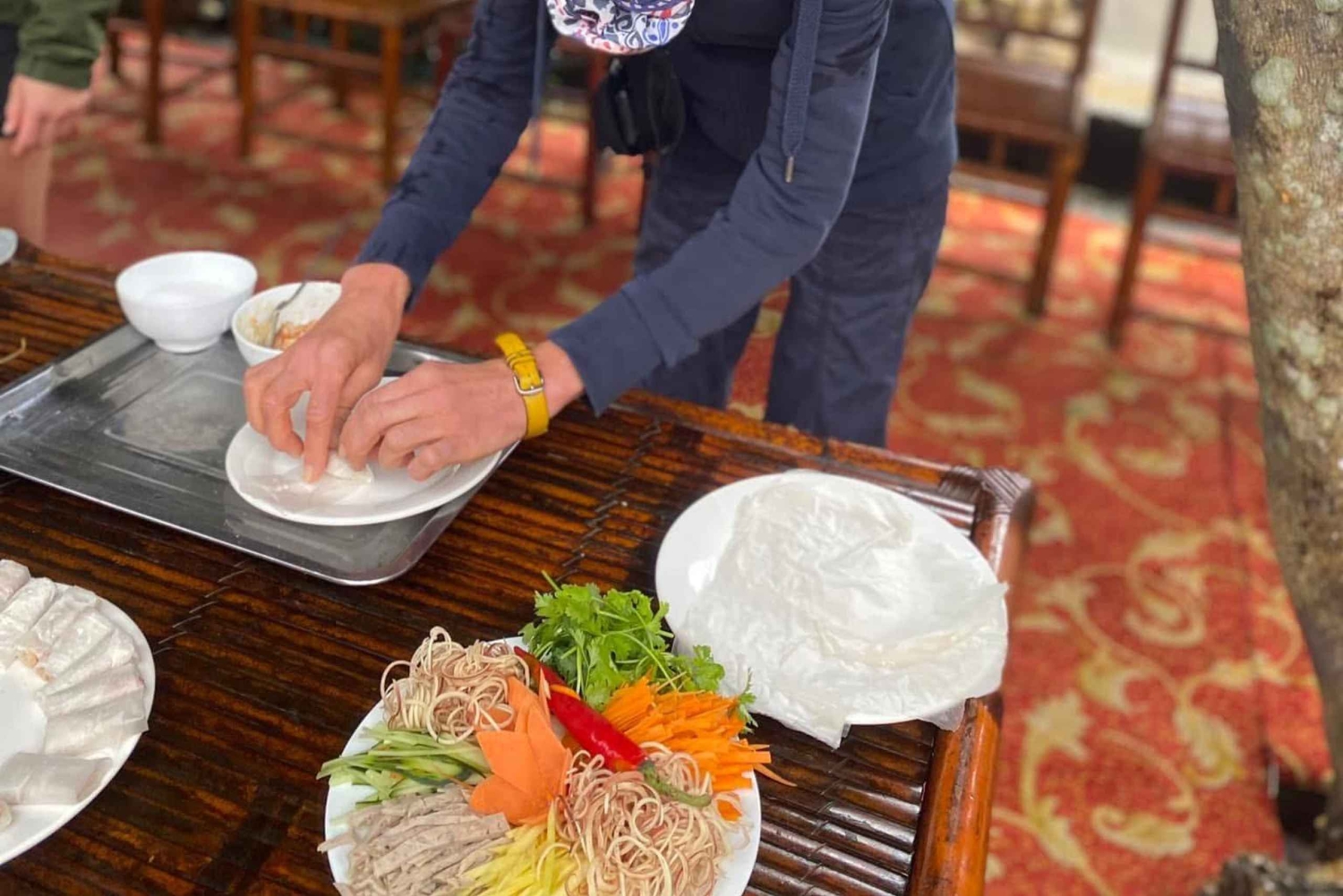 Comienza tu día con un cómodo servicio de recogida del hotel en Hue. Dirígete a la Ciudadela Imperial de Hue, sede histórica de la última dinastía real de Vietnam, la dinastía Nguyen. Explora la arquitectura antigua y aprende sobre la rica historia de la ciudad imperial. Continúa hacia la aldea de Thuy Bieu para disfrutar de una experiencia cultural. Aprende la pintura tradicional sobre seda en el número 43 de la calle Luong Quan y participa en una clase de cocina. Prepara mermelada Thanh Tra y rollitos de primavera fritos de Hue. Disfruta de un delicioso almuerzo en una tranquila casa con jardín con platos locales. Relájate con un baño de pies tradicional a base de hierbas antes de dirigirte al bosque de manglares de Ru Cha. Explora este raro bosque primitivo, de más de 100 años de antigüedad y que cubre alrededor de 4 hectáreas. Visita la laguna Tam Giang y Dam Chuon, el ecosistema de lagunas de agua salobre más grande del sudeste asiático. Únete a los lugareños en actividades de pesca prácticas y experimenta el modo de vida tradicional. Regresa al puerto deportivo en sampán y vuelve a la ciudad de Hue, concluyendo tu día de exploración e inmersión cultural.Includes
