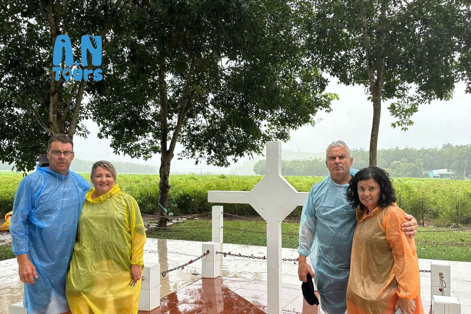 Explora los túneles de Nui Dat, Long Tan y Long Phuoc en un tour de medio día desde Vung Tau/Ba Ria. Visita el Jardín de Infancia de Nui Dat, la Cruz de Long Tan y la Base de Apoyo al Fuego de Horse Shoe. Viaja al pueblo de Hoa Long, también conocido como Hogar del VC, para visitar Nui Dat, donde los soldados australianos establecieron una base en 1966. Visita los antiguos búnkeres, la plataforma Canguro, la colina SAS, el aeródromo de Lusbcome y el asta de la bandera del batallón. Visita la guardería Nui Dat, construida por veteranos australianos para los niños del pueblo en 2002. Continúa hasta la aldea de Long Tan para visitar la Cruz de Long Tan, reconstruida por veteranos australianos para 18 soldados fallecidos en la batalla de Long Tan en 1966. A continuación, visita la Base de Apoyo de Fuego Horse Shoe antes de regresar a Ba Ria.Includes