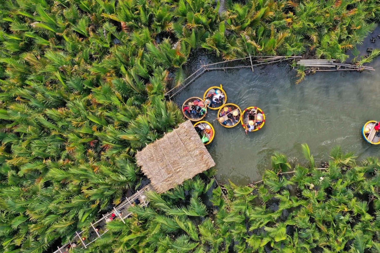 - Glide down a stream in a dense coconut palm forest on a bamboo basket boat