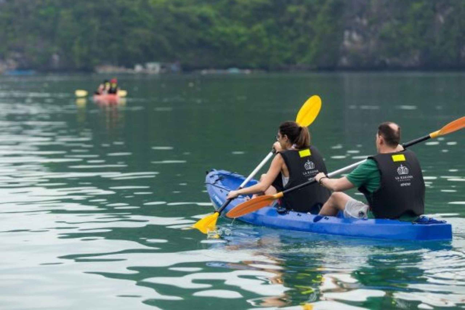 Discover the incredible karst landscape and unforgettable culture of the ancient capital of Ninh Binh. Enjoy an overnight stay in a nice room in the heart of Limestone Mountain. Then, get on the bus to Tuan Chau Island and take a luxury cruise for a tour around Wonder Bay. Taste Vietnamese cuisine combined with some Western dishes and spend the night on the boat. Day 1: Hanoi - Ninh Binh (Lunch) 7:30 AM - 7:45 AM: The tour guide and bus will meet you at the hotel within Hanoi Old Quarter and head to Ninh Binh Province. Visit the Hoa Lu Temple ancient capital and ride a bike through a rural village Lunch: Have lunch at a local restaurant before continuing to Trang An, a UNESCO World Heritage Site. Float through the tranquil rivers on a bamboo boat ride. and climb to the top of Mua Caves for striking panoramic views of Tam Coc before the bus drives you to the hotel. 5:00 PM: Check in the hotel and have free time in the pool. Dinner on your own. Relax and stay overnight in Ninh Binh. Day 2: Ninh Binh - Ha Long Bay (Breakfast/Lunch/Dinner) Morning: Have breakfast at the restaurant and at 7:30 AM our transfer will pick you up (no escort tour guide). Rest stops on the way. 11:30 AM: Arrive at the Tuan Chau harbor, and wait for check-in at the cruises' waiting room. 12:00 PM: Embark on the cruise and have lunch while taking in stunning views of the bay and its dramatic limestone islets. Cruise through Con Vit Islet, Thumb Islet, and Lan Ha Bay. Drop anchor for some kayaking or swimming at Ba Trai Dao Beach (depending on the weather) or visit Dark Cave and Bright Cave ride by bamboo boat. When the sunset is below the horizon, gather on the deck to enjoy the brilliant colors in the sky and relax with tea and coffee or learn how to make traditional Vietnamese spring rolls during a cooking demonstration. Make a new friend at the sunset party or relax onboard. After dinner, enjoy a large selection of cocktails at the panoramic bar, karaoke, or go squid fishing. Day 3: Lan Ha Bay - Ha Long Bay - Hanoi (Breakfast/Brunch) Start your day with an early morning Tai Chi session on the sundeck. Have a light breakfast at the restaurant. We will provide one of two options depending on the availability on the booking date: Option 1: Sail through the calm emerald waters to Ao Ech for a kayaking trip and swimming. Option 2: Visiting the Trung Trang Cave - A beautiful cave on the Cat Ba Island for about an hour. 9:30 AM: Return to the boat and check out of your cabin. 10:00 AM: Enjoy some Vietnamese cuisine for lunch while cruising back to Tuan Chau Marina. 11:30 AM - 11:45 AM: Our transfer will come to pick you up for your return to Hanoi. 2:30 PM - 3:00 PM: The bus will drop off at the Old Quarter Hanoi (if you have a flight after, we can arrange a taxi for an extra fee). Special requests for the cruise (please request while booking) - A birthday cake if your birthday is the same as the check-in date. - For wedding and honeymoon anniversaries, free set up honeymoon.Includes