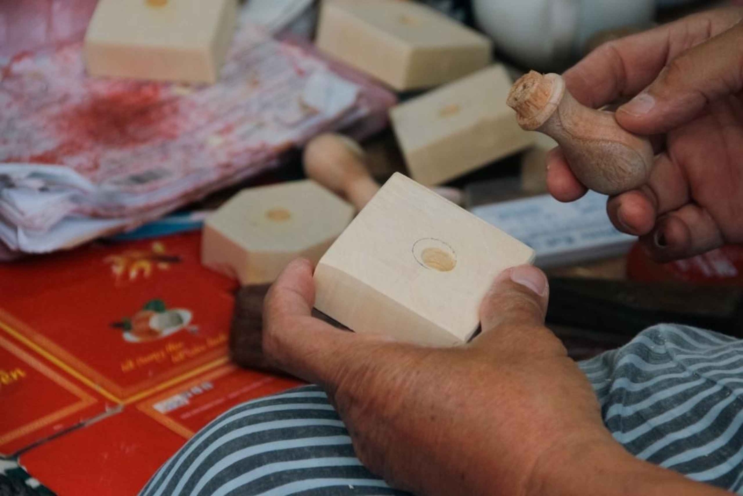 Experience the best of Hanoi in 3 hours! A journey through Ho Guom Lake, winding narrow streets, and beautiful ancient temples. Itinerary Pick up time: Tour guide will pick you up at your accommodation and travel to Ho Guom Lake, the heart of Hanoi. Hoan Kiem Lake: Walking Street Begin at Ly Thai To Square to enjoy a panoramic view of Ho Guom Lake. You will learn about the legend of the Returned Sword and the importance of this place in Hanoi’s history. Stroll around the lakeside and capture the iconic Turtle Tower in the middle of the lake. Kim Ngan Temple: From the lake, we will walk through the busy streets of the Old quarter and reach Hang Bac (Silversmith) Street. We will visit Kim Ngan Temple, the worship place of the patron saint of silversmith crafts, and learn about Vietnam’s traditional social structures - villages and communes. Old Quarter: Visit an ancient house at 87 Ma May Street – a beautifully preserved example of traditional Vietnamese architecture. Here, you'll see how families lived in the Old Quarter and learn about daily life in the past Visit the Cantonese Assembly Hall, a beautifully decorated space built by Chinese immigrants. It serves as both a religious and cultural venue, reflecting the multicultural history of Hanoi. 20 minutes Den Quan De [Optional]: Discover a temple dedicated to Guan Yu, a revered general symbolizing loyalty and righteousness in Chinese culture. Quan De Temple highlights the historical presence of Chinese communities in Hanoi and their spiritual heritage Bach Ma Temple [Optional] - Explore one of the oldest temples in Hanoi, dedicated to the White Horse deity. Bach Ma Temple offers insights into the city's spiritual beliefs and ancient architecture. Old Quarter: Take a leisurely walk through the vibrant shopping streets of the Old Quarter, where you can find souvenirs, handicrafts, and local specialties. Enjoy the bustling yet charming atmosphere Hang Quat Street (Street of Fans) Visit traditional wood workshops where artisans handcraft wooden stamps. Here, you can order your own personalised stamp – a unique keepsake from Hanoi.Includes