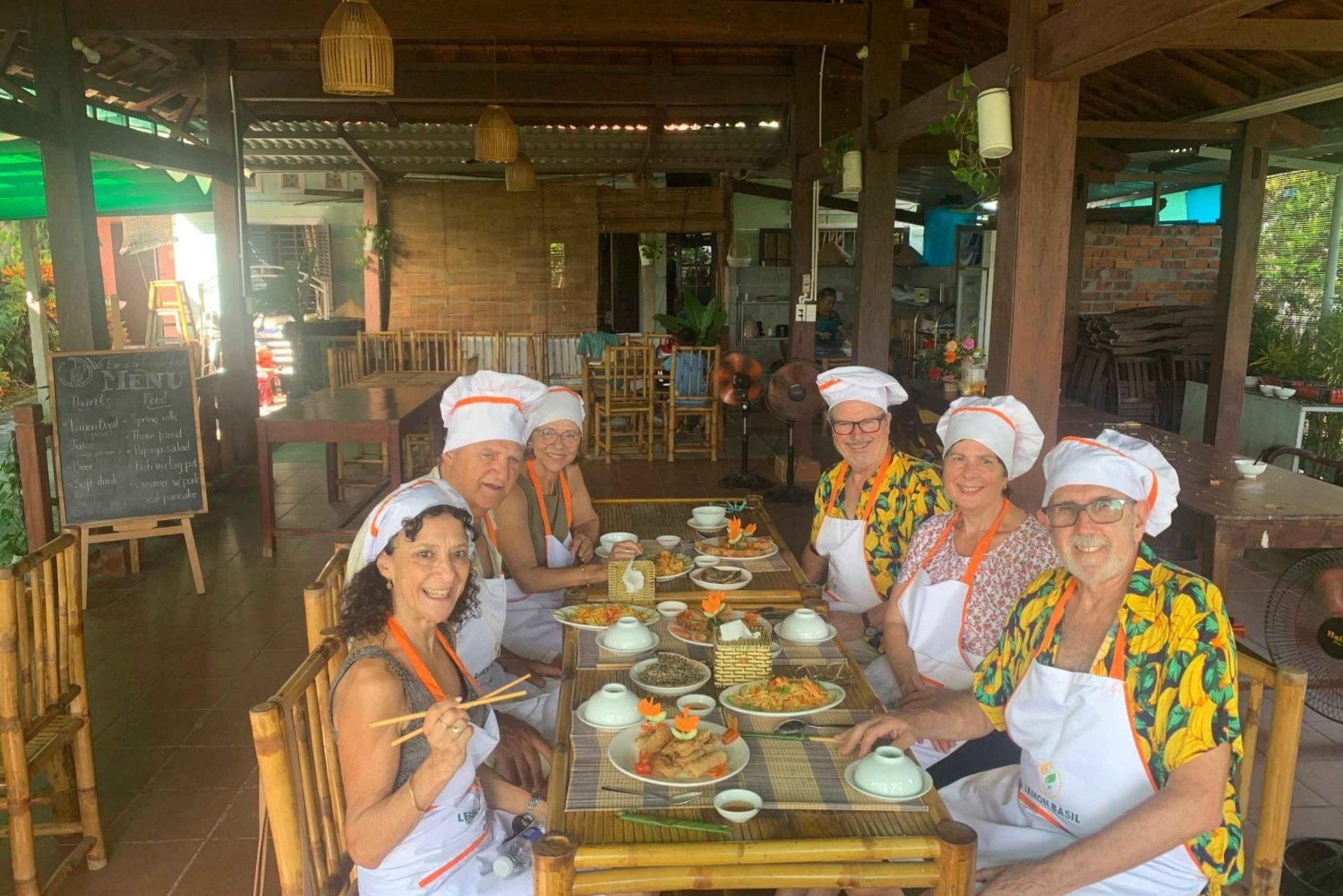 Main Activity Summary: Embark on a culinary journey surrounded by lush greenery at our Lemon Basil Cooking Class. Immerse yourself in the heart of Vietnamese gastronomy as our skilled chefs guide you through a hands-on experience, revealing the secrets of authentic dishes. Itinerary and Activity Features: 1. Introduction to Ingredients: Begin with a farm tour, discovering fresh, organic produce for your Tra Que Spring Rolls 2. Hands-On Cooking: Dive into our kitchen, mastering the art of crafting Green Papaya Salad, Fish in Clay Pot, and the iconic Vietnamese Crispy Pancake (Bánh Xèo). 3. Flavorful Creations: Learn the nuances of balancing flavors as you cook these classic recipes, unlocking the secrets of authentic taste. 4. Communal Dining: Relish the fruits of your labor in a communal setting. Enjoy the diverse dishes you've crafted with fellow enthusiasts. Note: Pick-Up Not Included Please be advised that our cooking class does not include pick-up services. Guests are welcome to make their way to our restaurant independently. ️ Activity Conclusion: Conclude your culinary adventure with newfound skills and a certificate of completion. Our location offers easy access to explore more of Hoi An's charm or unwind, savoring the memories made. Join us for an unforgettable cooking experience, where the essence of Vietnamese culture is savored with every bite of Tra Que Spring Rolls, Green Papaya Salad, Fish in Clay Pot, and Vietnamese Crispy Pancake.Includes