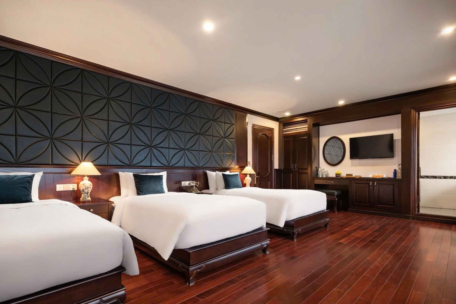 - Spend the night on a luxury cruise ship anchored in the tranquil Ha Long Bay