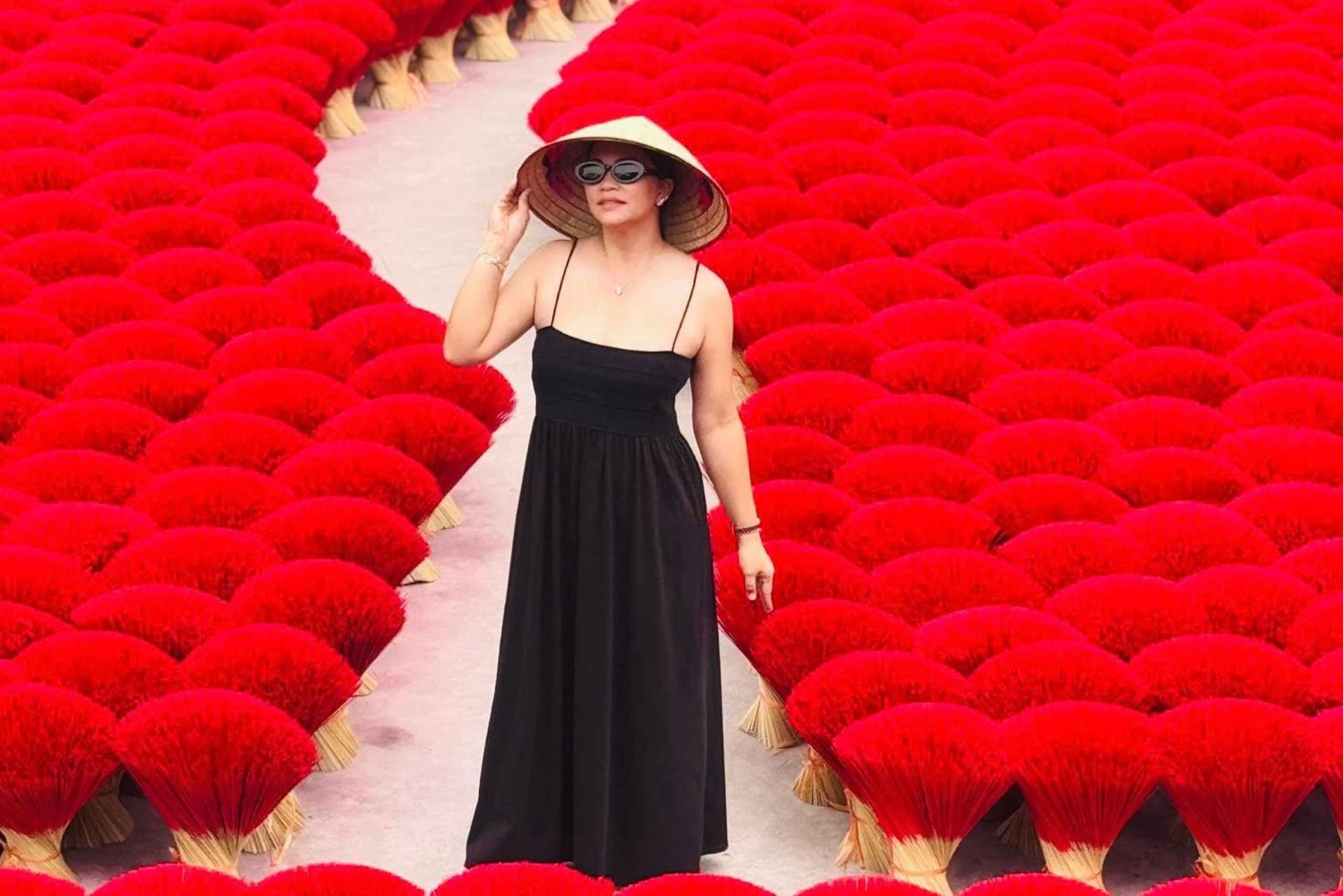 Explore Cuu Village and Quang Phu Cau Incense Village on a guided tour. Visit Dau Pagoda, the ancient Cuu Village Gate, and learn about the incense-making craft.