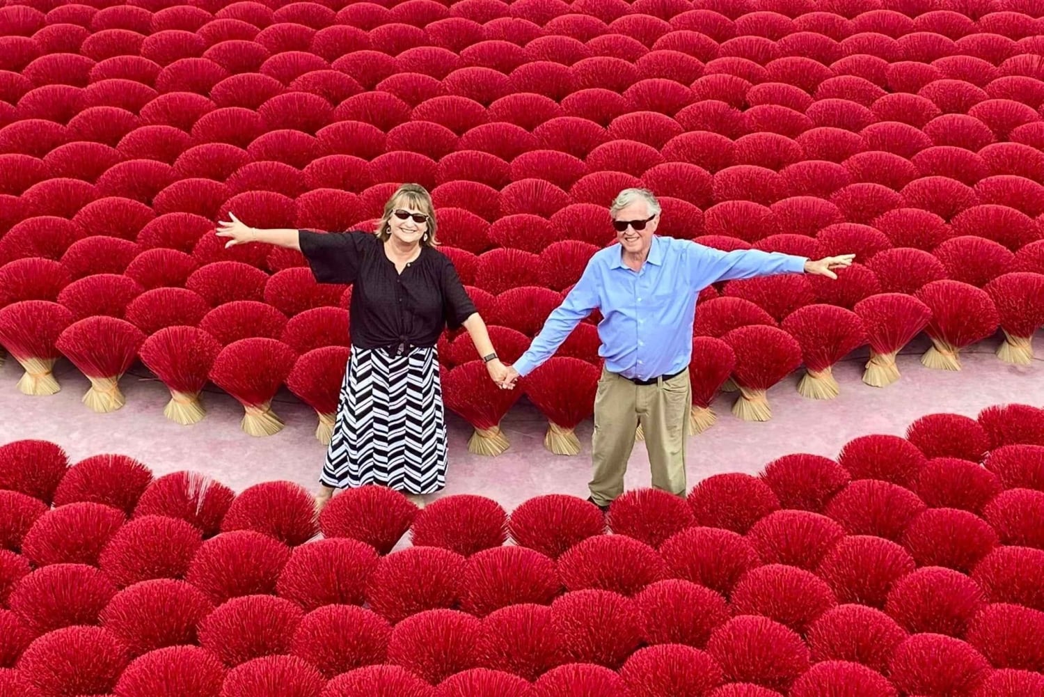 Option: Private Tour Ha Thai Lacquer Painting Village and Phuc Am Votive Paper village. Begin your day with a pickup from your hotel in Hanoi. Head to Phuc Am Village, renowned for producing votive paper offerings central to Vietnam’s Mother Goddess worship, a UNESCO-recognized heritage. Learn about the village’s spiritual customs and visit local homes to see how artisans create these meaningful pieces, offering an authentic look into Vietnamese beliefs. Next, travel to Ha Thai, a village famous for its exceptional lacquerware. Discover the artistry behind each piece, perfected over months and through 12 stages. Experience the craft firsthand with a choice of workshops: Eggshell Mosaic on Stone or Lacquer Painting Coloring—both designed to give you a hands-on feel for this intricate art form. Then, head back to Hanoi’s city center, with a richer understanding of Vietnam’s cultural heritage. Option HALF DAY Group Tour : Visit 2 Villages: Conical Hat and Incense Craft Village + Train Street (optional) Duration: ~ 6 hours Morning from 7:45~13:30 Afternoon from 11:45~17:30 Start with a pickup from Hanoi’s Old Quarter and head to Chuong, a village that has been well-known for the craft of conical hat-making for over 300 years. Get an observe how conical hats are made and decorate a hat by painting it then bring it home as a souvenir. Depart for the Quang Phu Cau village, which has been producing incense for more than 100 years. Take a walk to the center of the village and see how locals make incense on the artisanal, family scale. Meet a family who specializes in dyeing incense sticks. Back to the city center. First place for drop off: Hanoi Train Street. If you don't want to get drop off here, please wait on bus.Includes