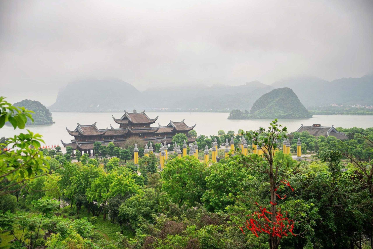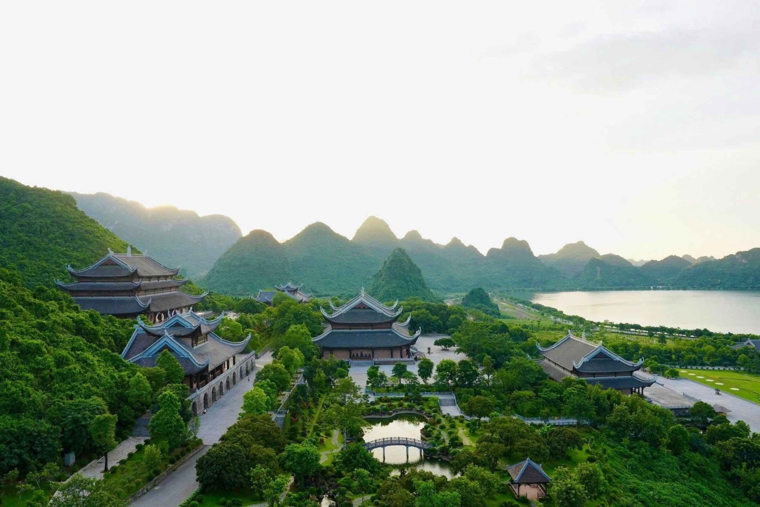Option: Private Tour Visit 2 Pagodas Begin your journey with a pickup from your hotel in Hanoi’s Old Quarter. Head to the Tam Chuc Spiritual Tourism Complex, where your first stop is the Thuy Dinh Guest House. Admire intricate paintings depicting the entire layout of the pagoda, take photos, and enjoy the scenic surroundings. Next, take an electric vehicle to Tam Chuc Pagoda, a sacred site meticulously constructed with thousands of stone carvings crafted by skilled artisans. After passing through the Tam Quan Gate, walk to the main hall via the Garden of Sutra Pillars, each pillar weighing approximately 200 tons. Flanking the gate are two grand pathways leading to the majestic Tam Dien (Three Halls), comprising: - Quan Am Hall: Dedicated to Avalokiteshvara Bodhisattva. - Tam The Hall: Dedicated to the Buddhas of the Past, Present, and Future. - Phap Chu Hall: Dedicated to the Master of Dharma. Each hall enshrines a Buddha with distinct spiritual significance. Located atop Thien Tinh Mountain, Ngoc Pagoda is suitable only for guests with good health due to the 299 stone steps required to reach it. For those short on time, an additional Tuệ Tinh electric vehicle ride (at guests’ expense) is recommended to keep up with the group’s schedule. From Ngoc Pagoda, enjoy panoramic views of the vast, picturesque landscape of mountains and water, evoking a profound sense of peace and freedom. After lunch, head to Dia Tang Phi Lai Pagoda (also known as Dung Pagoda) in Thanh Liem District, Ha Nam. Renowned for its serene beauty, this pagoda is nestled amidst a pine forest, creating an ethereal and tranquil atmosphere that resonates with all who visit. Finally, board the bus to return to Hanoi. Option: Private Tour the Tam Chuc largest pagoda complex in the world and Boat Cruise Tour Discover the Tam Chuc Pagoda Complex, the largest pagoda complex in the world. Located in Ba Sao Town, Kim Bang District, Ha Nam Province, this site is an attractive destination for many visitors and Buddhist followers. Admire the pagoda’s unique location, with its back leaning on the mountain and face overlooking the lake, creating a poetic scenery like a fairyland. Learn about the legend of 'Tien Luc Nhac - Hau That Tinh' meaning “Six music bells in front – Seven stars after”. Explore the current Tam Chuc Pagoda Complex, built on the foundation of the ancient Tam Chuc Pagoda and inaugurated in May 2019. The pagoda overlooks Tam Chuc Lake (also known as Luc Nhac Lake), with constructions such as the interior Tam Quan (Three-entrance) Gate, Sutra Pillar Garden, Quan Am (Kwan Yin) Temple, Phap Chu Temple, Tam The Temple, and Ngoc (Ruby) Pagoda. Admire the impressive architectural works that blend seamlessly with the breathtaking natural landscapes. The complex was constructed by many skilled Vietnamese and foreign artisans, including craftsmen of Buddhism, Hinduism, and Islam.Includes