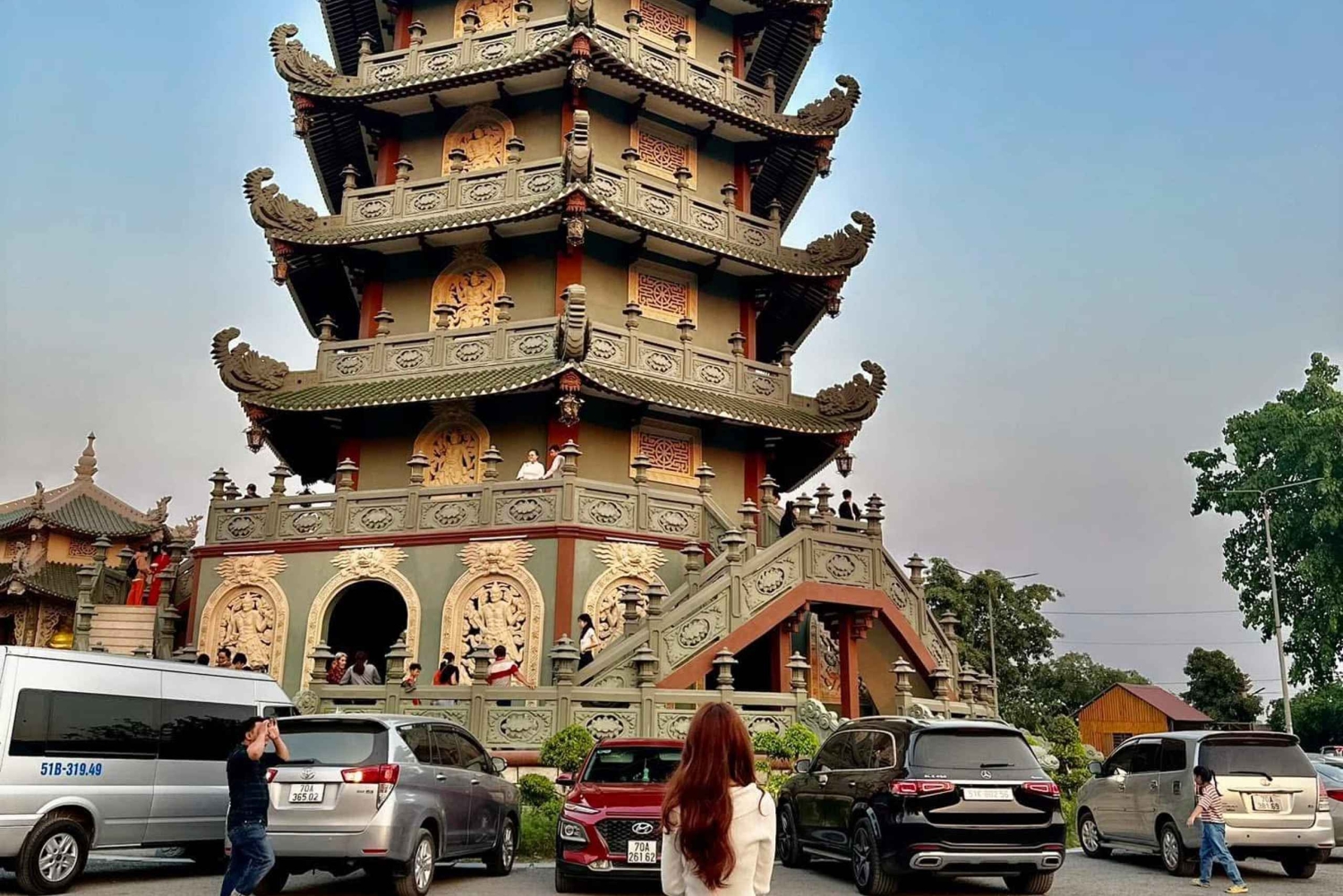 Begin your day with a pickup from your hotel in Ho Chi Minh City. Enjoy a scenic drive through the countryside as you leave the busy city behind. Arrive at Thiền Lâm (Gò Kén) Pagoda, one of Tây Ninh’s oldest Buddhist temples. Admire the majestic Sakyamuni Buddha statue, the serene lotus pond, and the ancient Bodhi tree. Explore peaceful prayer halls and colorful statues, and enjoy a unique blend of modern and traditional Vietnamese Buddhist architecture. Continue to the spectacular Cao Đài Holy See, the center of Vietnam’s unique Cao Đài religion. Experience the temple’s vibrant, colorful architecture, dragon pillars, sacred symbols, and celestial dome. If timing allows, quietly observe a midday prayer ceremony, with hundreds of followers dressed in white. Next, enjoy a relaxing Vietnamese lunch at a local restaurant. Choose from Tây Ninh specialties like bánh canh Trảng Bàng, grilled pork with rice paper, or vegetarian options. After lunch, transfer to Black Virgin Mountain, the highest peak in Southern Vietnam. Take a smooth cable car ride up the mountain, flying over lush forests and pagodas below. Enjoy panoramic views of rice fields and distant villages. Depending on your chosen route, either take the peak cable car for 360° views at the mountain top or the pagoda cable car to visit Bà Đen Pagoda and the giant Black Lady statue. Walk around, explore, take photos, and enjoy the cool, fresh mountain air. Finally, relax in your private vehicle as you travel back to Ho Chi Minh City.Includes
