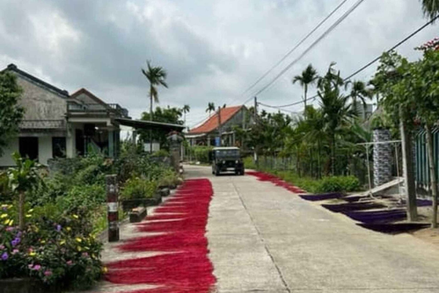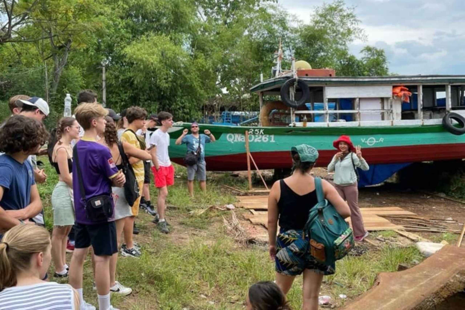 Your tour guide will pick you up from your hotel and provide an outline of the sights to see on this tour. The tour begins by exploring the hidden passageways and winding alleyways of Hoi An, stopping to photograph the iconic Japanese bridge in the historic district. Crossing first the canal bridge near the night market we continue to the new metal bike bridge connecting Hoi An proper and its southern villages of Quang Nam Province. - Cam Kim: Not far from the bridge we visit a local family making Banh Beo in the traditional method. These small, savory rice flour bowls are a common breakfast staple in the countryside. We continue riding to one of Hoi An's most beautiful villages, stopping at a family home to learn about the tradition of family chapels. Our host is nearly 90 and vividly remembers his experiences in the American war. - Duy Vinh: We pedal past rice fields and vegetable farms along small canals and waterways towards a wooden boat-building site. Fishing is still the lifeblood of the province and the construction of these ships is quite amazing to witness and photograph. If the timing is right, we'll also see families gathered to clean fishing nets between journeys at sea. The roads narrow again to concrete paths and our final stops include a traditional mat weaving shop and a family distillery where rice wine has been produced in the same manner for generations. Of course, samples are provided. It's a short ride from here to where we board a local ferry for a trip back to town. Have your cameras ready for great views of the Hoi An waterfront. Once dockside, it's a short 5-minute ride through alleyways back to the hotel.Includes