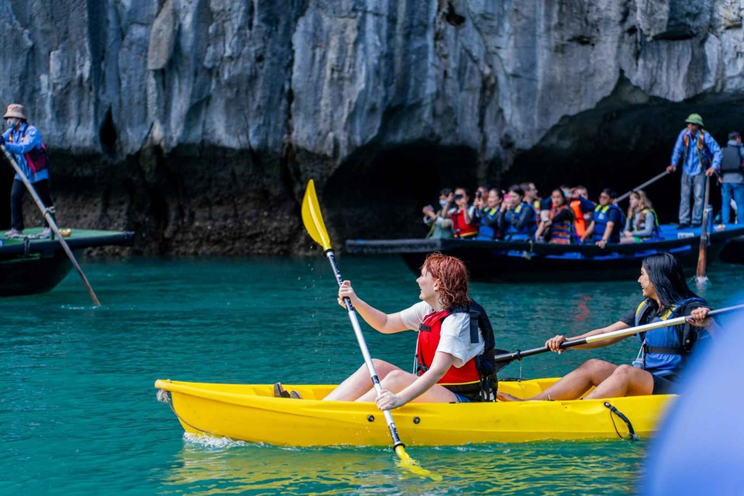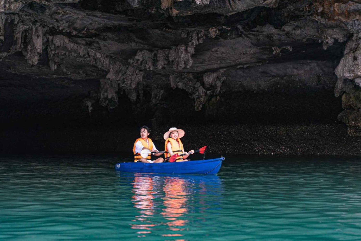 We will depart from Halong International Cruise Port, Bai Chay, Halong. Please arrive at Halong International Cruise Port by 9:50 - 10:00 AM for check-in. Our guide will be there to greet you and assist with the cruise check-in. Tour guide details and the meeting location will be shared with you via WhatsApp/email. Kindly check your email or WhatsApp once you book the tour to confirm your pick up time and more details. 10:00 AM: BOARDING TIME Upon arrival at Halong International Port, the Halong Symphony crew warmly welcomes you aboard, ensuring a professional and friendly start to your exploration of Halong Bay. 10:30 AM: CRUISING Embark on a journey to discover the poetic beauty and natural wonders of the bay. As you cruise, marvel at the hundreds of limestone mountains adorned with various shapes emerging from the emerald waters. VISIT SURPRISING CAVE Accompanied by our knowledgeable tour guide, explore the magnificent Surprising Cave, one of the largest and most captivating caves in the bay. Our guide will share fascinating insights, enriching your Heritage Journey experience. SYMPHONY LUNCH Following the cave excursion, indulge in a sumptuous lunch served in the cruise's luxurious restaurant, featuring Symphony's distinctive style, as we sail towards next destination. VISIT LUON CAVE Embark on a rowing boat or kayak to explore the serene and secluded valley of Luon Cave. VISIT TI TOP ISLAND You enjoy about 45 minutes at the Ti Top Island to relax or swim in the refreshing waters of Halong Bay. Ti Top Island holds historical significance, having been chosen as a stopover during President Ho Chi Minh's visit. CRUISING AND SUNSET PARTY After outdoor activities, return to the cruise and take journey back to the port. Our cruise staff will host a sunset party, providing an opportunity for interaction and expressing gratitude for your presence. 17:30 PM: DISEMBARK AT HALONG INTERNATIONAL PORT AND OUR CREW TEAM SINCERELY SAY THANK YOU AND GOODBYE.Includes