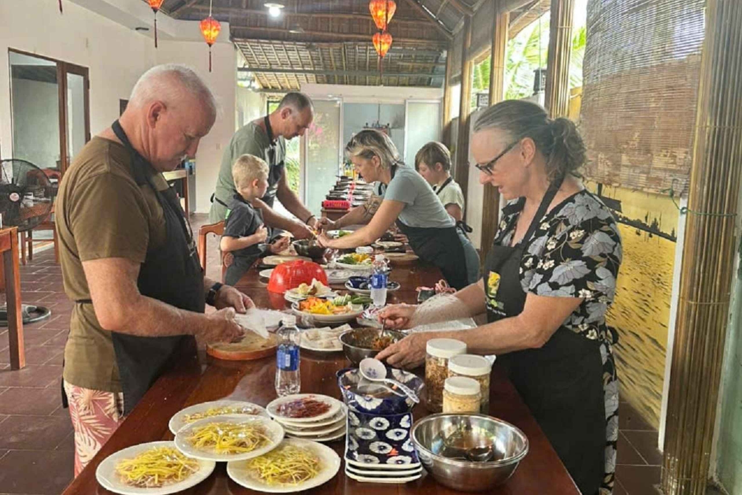 Join our authentic Vietnamese Cooking Class at Hang Coconut and discover the joy of creating delicious local dishes! In this hands-on class, you’ll learn how to prepare four traditional favorites: - Fresh spring rolls. - Crispy Vietnamese pancakes (Bánh Xèo). - Refreshing papaya salad. - Flavorful vegetable noodles. Guided by our friendly local chefs, you'll explore traditional cooking techniques and secret tips passed down through generations. Whether you're a food lover, beginner, or seasoned cook, this experience offers a fun and interactive way to dive into Vietnamese cuisine. After cooking, sit down to enjoy the dishes you’ve made in a peaceful countryside setting. We offer two options for your convenience: – You can come directly to Hang Coconut Restaurant by following directions on Google Maps. – Or choose our hotel pick-up and drop-off service (available for an extra fee). Perfect for solo travelers, couples, families, or small groups looking for a meaningful and tasty experience in Hoi An.Includes