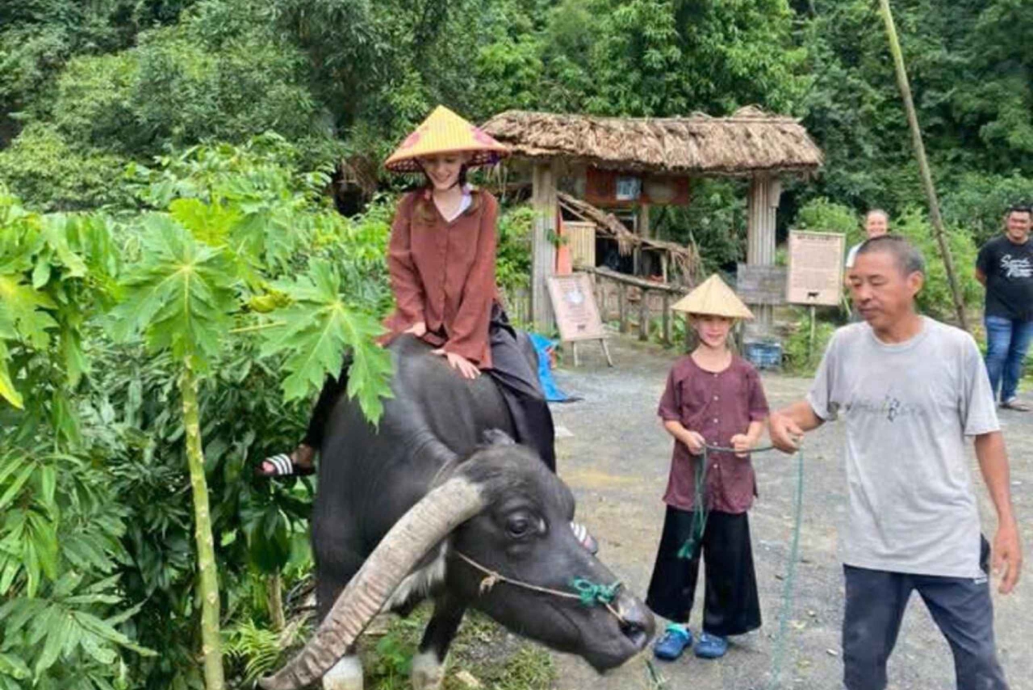 08:30: Pick up guests from the homestay. Meet your friendly local guide and get ready for an exciting day exploring the peaceful countryside of Ninh Binh. 09:00: Visit Bich Dong Pagoda - an ancient pagoda complex nestled on a limestone mountain, offering panoramic views of the rice paddies and surrounding landscapes. 10:30: Continue to Voi Temple, a tranquil spiritual site surrounded by lush greenery and quiet village life. 12:30: Enjoy a delicious Vietnamese lunch at a local restaurant. Take a short rest before continuing your afternoon adventures. 14:00: Head to the Buffalow caves area, where you can join authentic countryside experiences such as bathing in a waterfall, herding buffaloes or ducks, or catching fish - a fun and unforgettable way to connect with local life! 15:30: Visit Thai Vy Temple and Ben Thanh, two culturally rich and historically significant sites set amidst peaceful rural scenery 17:00: End of the tour. Transfer guests back to their hotel or homestay.Includes