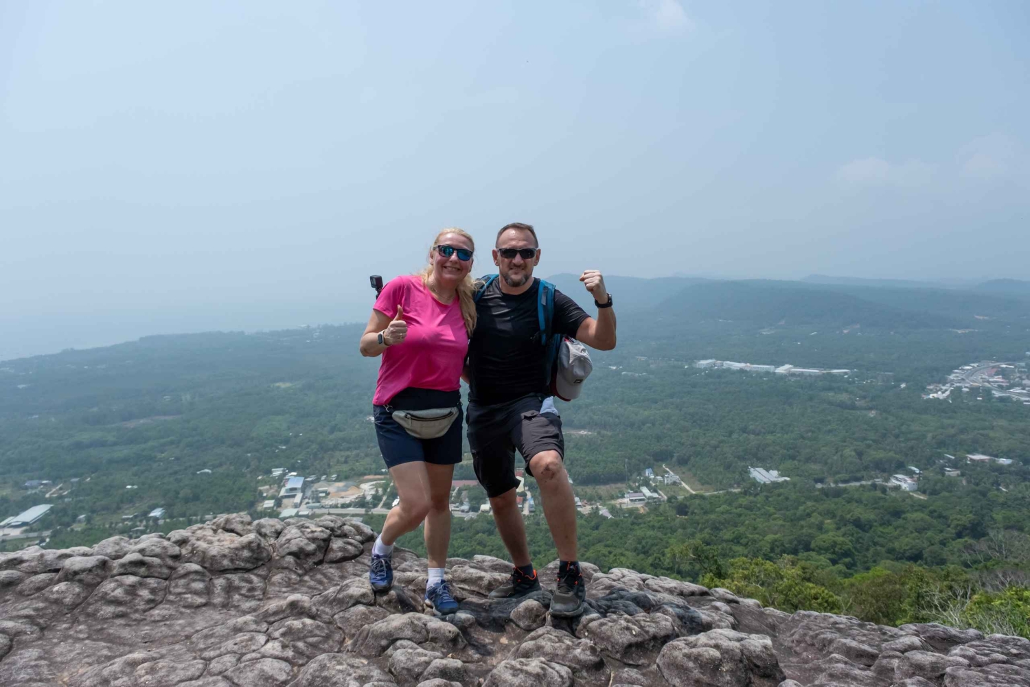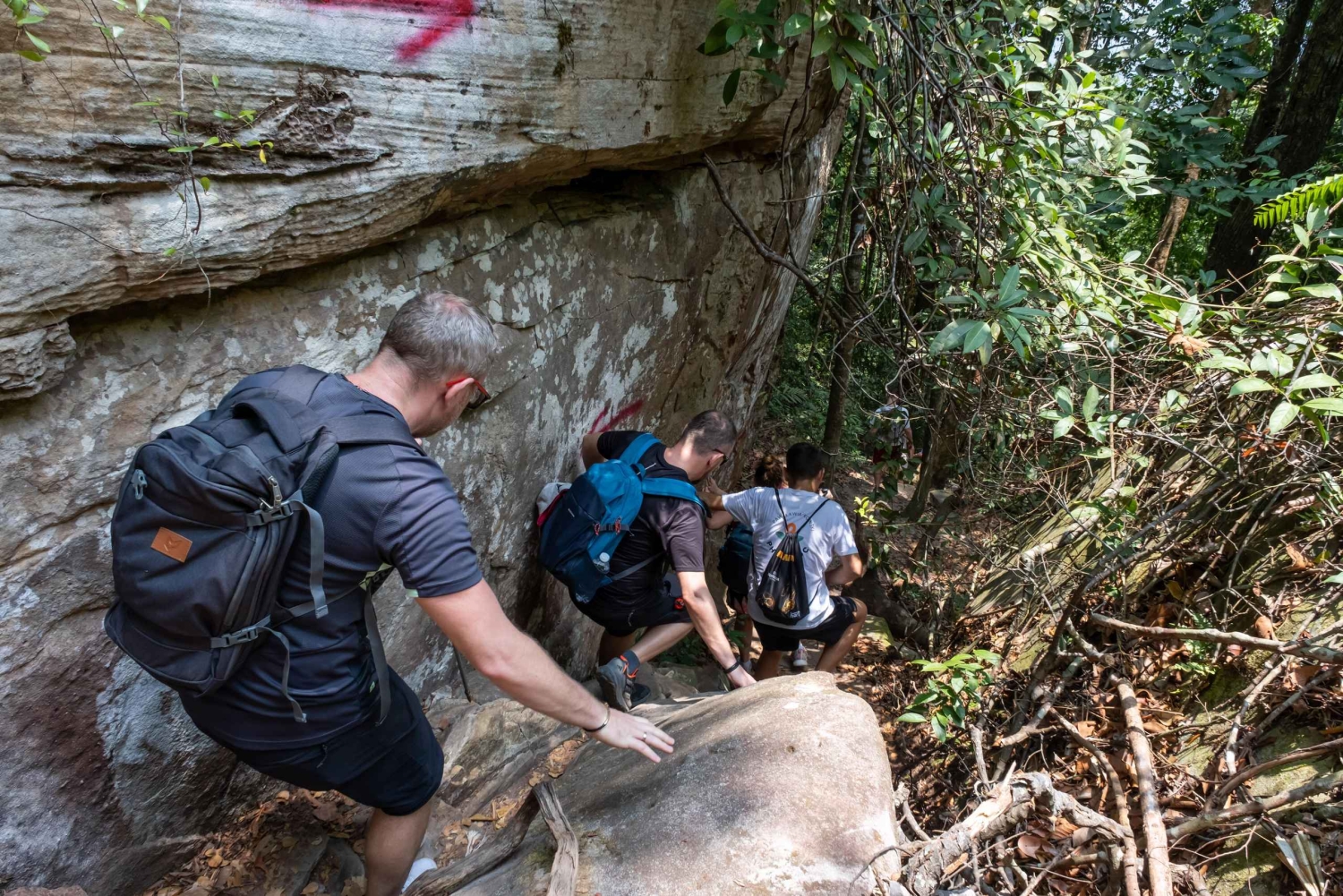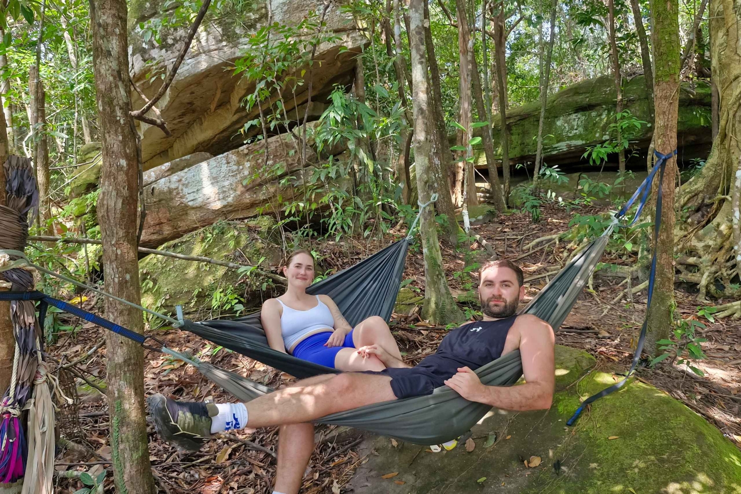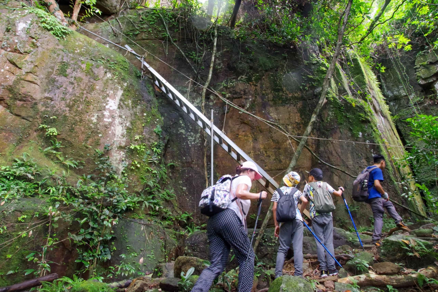This tour offers a challenging yet rewarding hike up Tien Son Dinh road, a 6+ kilometer trail ascending to 280 meters. Traverse a vibrant tropical rainforest, rich in biodiversity, where your guide will provide insights into the indigenous plant species and their traditional uses. Discover the legendary stories associated with the man who named the mountain. The summit offers expansive views of the island's landscape, including a unique perspective of Phu Quoc International Airport. Enjoy a relaxing afternoon break with hammocks provided, allowing for rest and appreciation of the natural surroundings. Following the descent, choose between a refreshing swim in the scenic Suoi Tranh stream, known for its cascading waterfalls and pristine pools, or, during the dry season, an exploration of Phu Quoc's largest cave system. The tour finish at a local restaurant, where you'll enjoy a traditional 'Banh Xeo' meal, experiencing the local culinary heritage.Includes