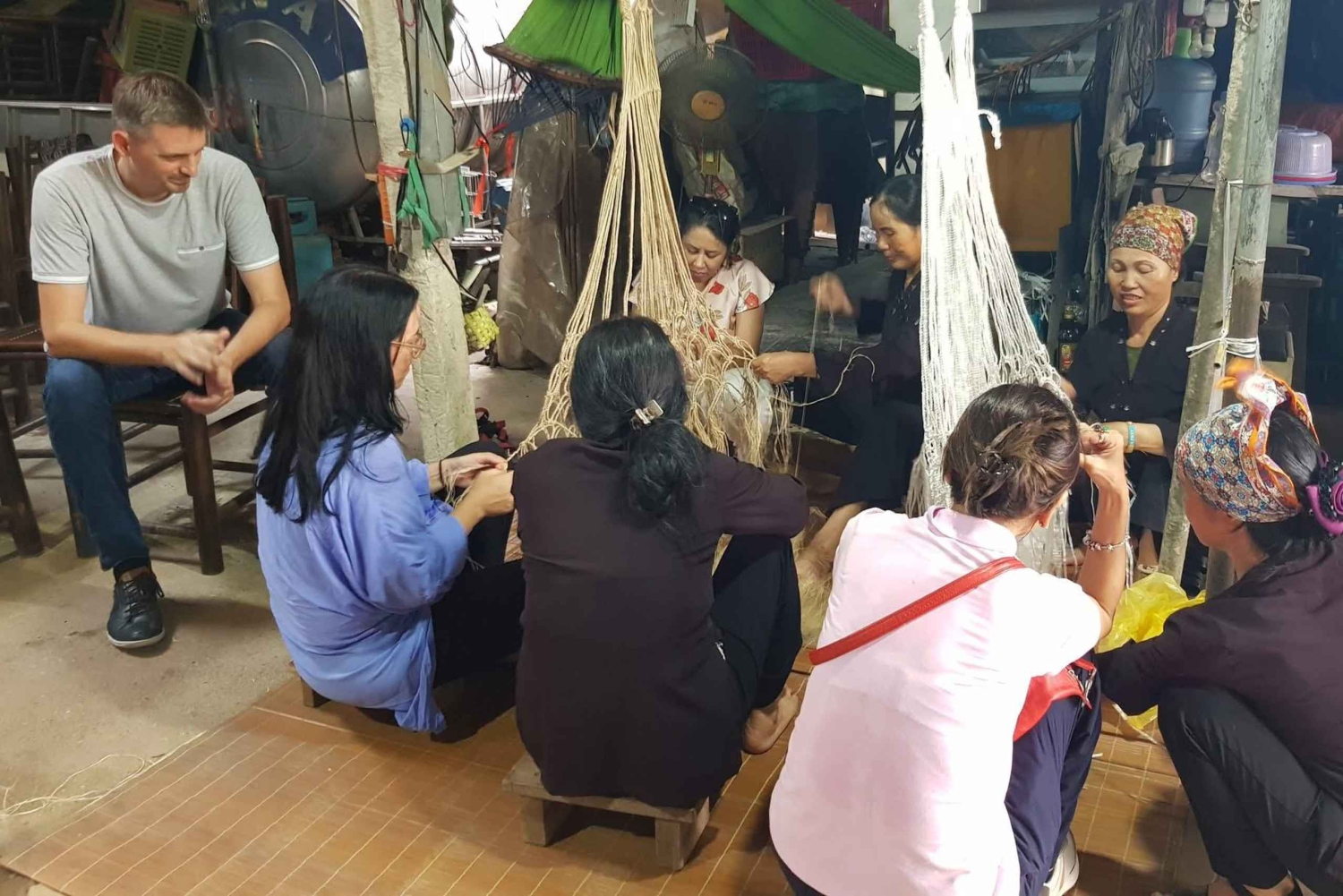 Your private EV car and professional tour guide will pick you up at your hotel in or near Hanoi Old Quarter for a comfortable transfer to the countryside village. Begin your journey by visiting Quan Tinh Pagoda, a peaceful historical site rich in local culture. Then, get ready to become a real farmer for a day — prepare your tools and join locals in farming activities such as tilling, weeding, sowing seeds, and harvesting seasonal crops. Learn about local agriculture and discover native plants of the Red River Delta. Next, take part in hands-on workshops: cook Lam sweet soup and traditional Northern rice cakes with local artisans. Try your hand at weaving hammocks and explore the traditional craft village where this skill has been preserved for generations. Enjoy a homemade lunch featuring authentic Northern Delta dishes prepared with vegetables you picked from the garden. After this meaningful countryside experience, say goodbye to your local hosts and relax as your driver takes you back to your hotel in Hanoi.Includes