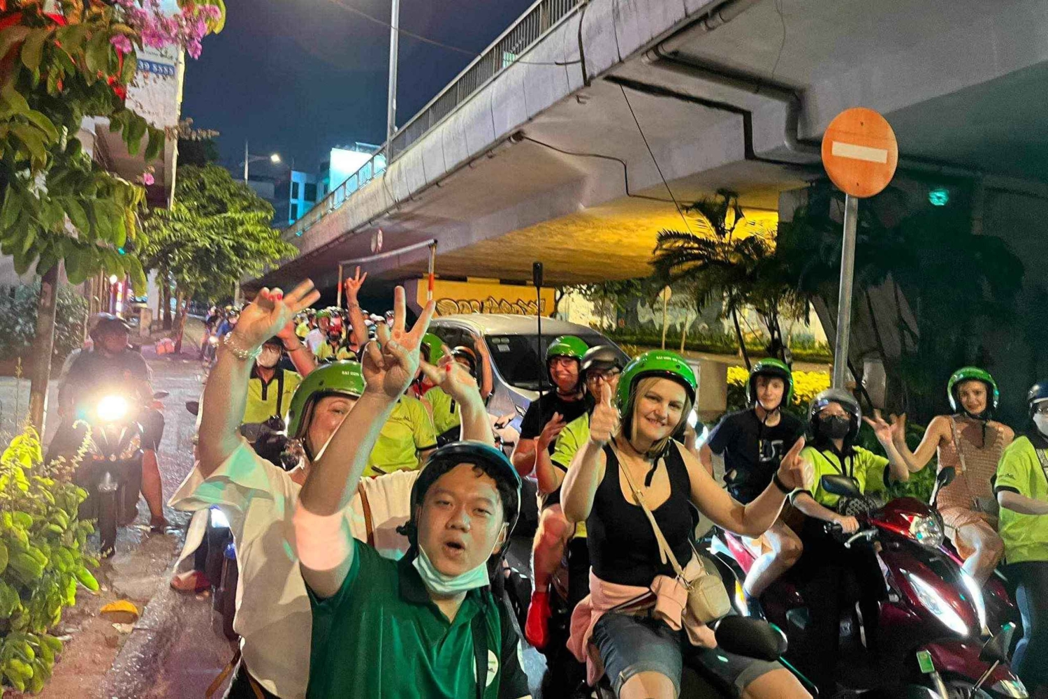 Discover the busy nightlife and local foods of Ho Chi Minh City on a guided tour by motorbike. Immerse yourself in the city's vibrant culture by tasting a variety of delicious traditional dishes. Start by enjoying the famous grilled pork vermicelli noodle and spring rolls in district 1. We will visit Thich Quang Duc monument to explore the profound cultural heritage of Saigon Up next, explore one of the biggest flower markets in Saigon, located in District 10. Explore the market with flowers brought from all over Vietnam. then we'll go around and see the local way of life. After that, move to Chinatown and explore one of the biggest ghost apartment buildings in Saigon where the building with thousands of rooms is uninhabited. Here you will be presented with real ghost stories by the guide. Back to the tour, venture to Nguyen Trai Street, a busy street where almost everything is sold, from clothes to souvenirs. After that, on Nguyen Van Cu Bridge, take in views of the city in the glow of the night. Enjoy a peaceful moment while looking at the Saigon River. Move through the districts to visit District 7 and see the starlight bridge, a place worth visiting. Hear the story of a land full of swamps that transformed into a very beautiful city. Continue to District 4, regarded as the smallest district. Many people from other places in Vietnam move to live here, so the lifestyle and traditions of the residents are extremely varied there. Before drop-off back at your hotel, we will enjoy Vietnamese bread with all kinds of ingredients such as cucumber, ham, pate, home made cheese, onion, chili, and a special fish sauce. And enjoy tropical fruit smoothie as dessert .Includes