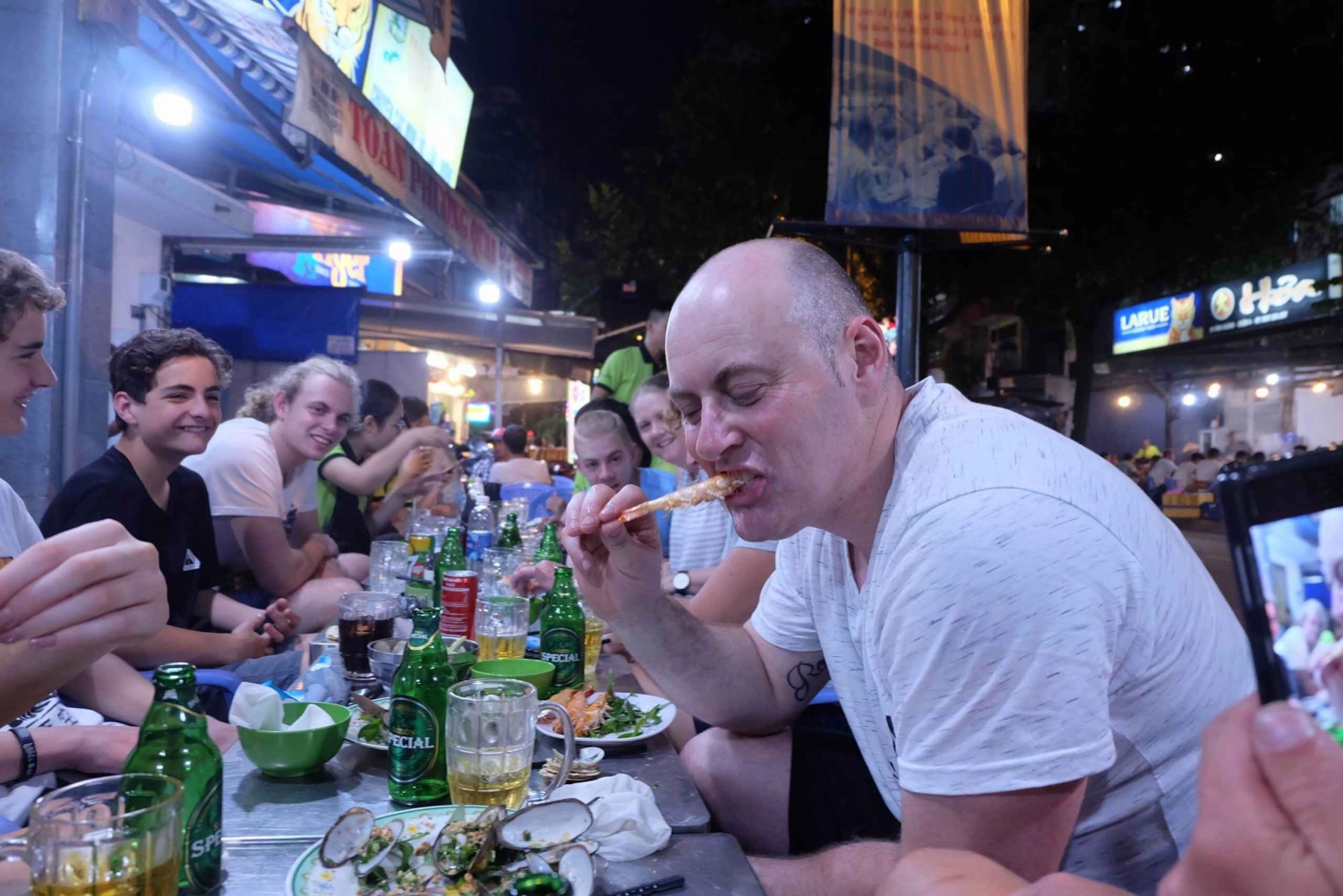 Explore Saigon by night and savor the delicious flavors of this buzzing metropolis. Get the know the city through its cuisine and stop at spots only locals know. Get picked up at 5:30 pm, our tour guide will pick you up by vespa and then move to the restaurant with grilled pork vermicelli and spring rolls. This is one of the most interesting dishes in Vietnam, not only that, but it is also very healthy because there are a lot of vegetables and cucumbers. Next, We will move to one of the most unique cafes in Saigon with a secret cellar containing the weapon used to attack the Independence Palace on New Year's Eve 1968. Here we will enjoy coffee and sweetened condensed milk or kumquat tea. then we will move to one of the biggest flower markets in saigon with hundreds of thousands of flowers from all over the world. Here we will enjoy grilled rice paper with eggs, baby shrimp, bruised pork, cheese and green onions served with special sauce. then we will enjoy grilled beef skewers marinated with special spices. After that, the group will move to China town to enjoy wild vegetable pancakes. This is one of Mekong Delta's signature dishes. Banh Xeo will be rolled up in vegetables and served with fish sauce. Then we will move through the busy streets of the fashion stores of District 5 to go to District 4, here we will enjoy the legendary bread, inside the loaf will be all kinds of bread. ham, homemade butter, pate, cucumber, fish sauce and coriander. When eaten, it is very crispy and melts in the mouth. After the program, we will move to the seafood restaurant with a variety of seafood and snails, and enjoy with local beer. Then our group will move back to the hotel to end the journey and say goodbye.Includes
