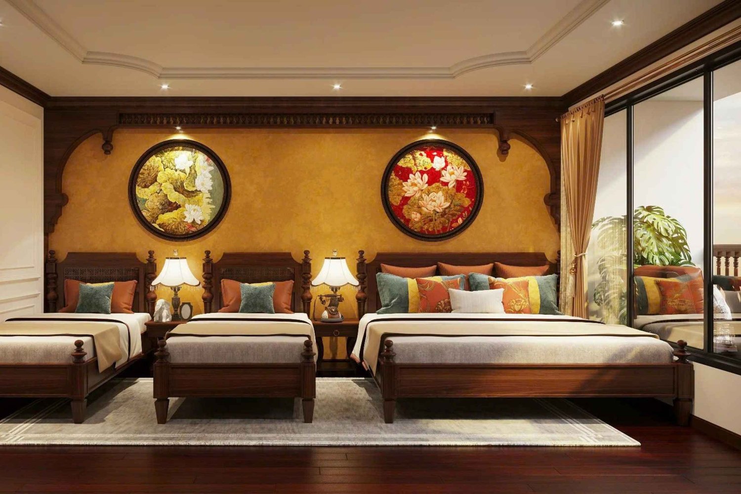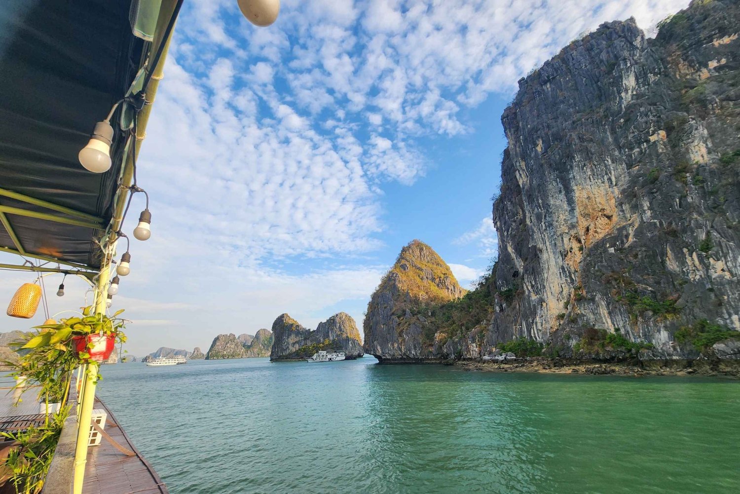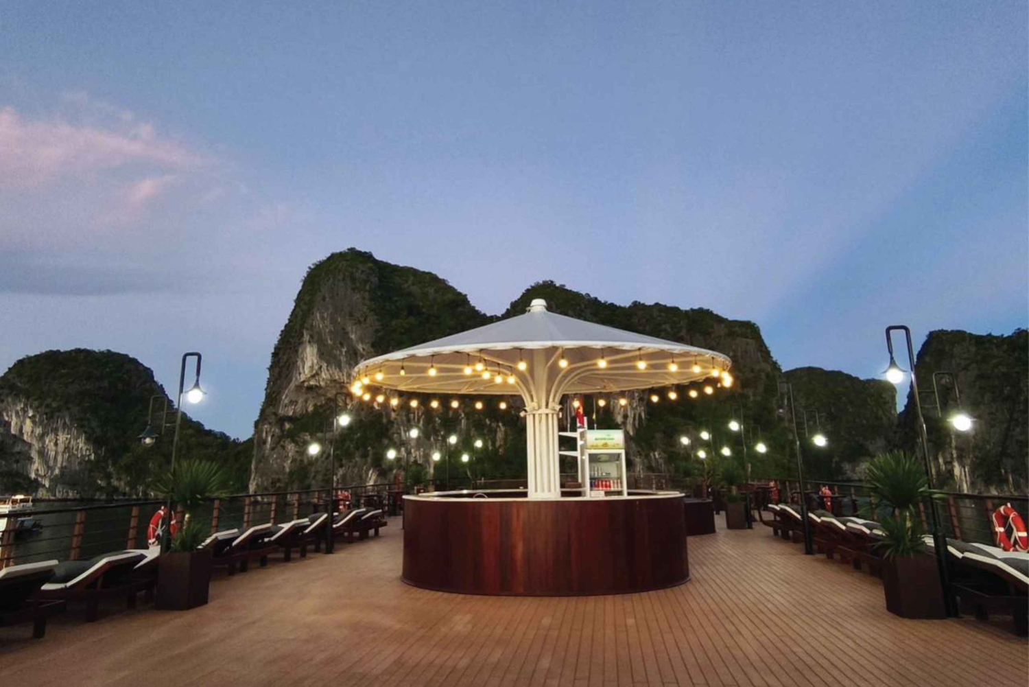 Yhden yön 6 tähden risteily Ha Longissa ja Bai Tu Long Bayssa Ammattimainen englanninkielinen opas risteilyllä Täysin kalustettu hytti, jossa on ilmastointi, oma parveke ja kylpyamme (erilliset vuoteet tai parisänky) Tervetuliaisjuomat, lämpimät/kylmät pyyhkeet Sisäänpääsymaksut Ha Long Bayhin ja Bai Tu Long Bayhin Melonta kajakilla ja bambuveneellä kalastajakylään Kaikki ateriat veneellä (2 x lounas, 1 x päivällinen, 1 x aamiainen) Sunset party, kokeile Ao Dai - perinteisiä vaatteita Ilmainen hytin koristelu häämatkalle tai vuosipäivälle. Syntymäpäiväkakku passissa olevan syntymäpäivän mukaan (ilmoita vähintään päivää ennen lähtöä) Yksi vesipullo per henkilö risteilyn aikanaImportant Information