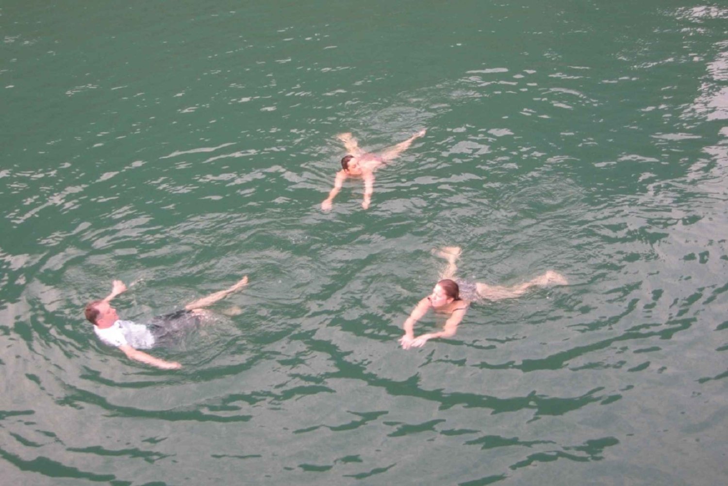 Tutustu Ha Long Bayn, joka on UNESCOn maailmanperintökohde, ja Bai Tu Long Bayn, joka tunnetaan 'laskeutuvien lohikäärmeiden lahtena', kauneuteen ainutlaatuisella ja korkeatasoisella 6 tähden Cycad-risteilyllä. Nauti maisemista ja kulttuurista tällä risteilyllä, johon sisältyy vierailu Thien Canh Sonin luolaan, joka on Bai Tu Long Bayn suurin luola, ja Vung Viengin kelluvaan kylään. Päivä 1: Hanoi – Ha Long Bay – Bai Tu Long Bay – Thien Canh Sonin luola – Cong Don alue (lounas, illallinen) ✓ Klo 7.45–8.15: Nauti noudosta limusiinibussilla/yksityisautolla hotelliltasi Hanoin vanhasta kaupungista (käytä kuljetuspalveluamme). ✓ 12.30: Saapuminen SunWorldin satamaan. Ota rennosti ja nauti kuppi teetä tai kahvia. Odota, että kapteeni saa rekisteröinnin valmiiksi, ja mene sitten risteilylle. ✓ Klo 12.45: Rentoudu tervetuliaisjuoman parissa ja kuuntele lyhyt turvallisuus- ja aktiviteettitiedote ennen kuin kirjaudut hyttiin. ✓ 13.00: Nauti herkullinen fuusiobuffetlounas, kun risteilet rauhallisesti syvemmälle Bai Tu Long Bayhin. ✓ 15.00: Tutustu piilotettuun Thien Canh Sonin luolaan ja vietä aikaa Hon Co -saaren valkoisella hiekkarannalla. ✓ Melontakohde Cong Do. Melo karstin läpi kajakilla ja nauti uimisesta. ✓ Klo 16.30: Palaa risteilylle auringonlaskujuhliin ja happy houriin, kun veneesi purjehtii yöankkurointipaikkaansa. ✓ 17.00–18.00: Kokeile vietnamilaista perinteistä pitkää mekkoa (Cổ Phục) ilmaiseksi ja ota upeita kuvia UNESCO:n maailmanperintökohteeseen kuuluvasta lahtimaisemasta. ✓ Klo 19.00: Nauti laivalla hienostunut illallinen, jossa on hummeria. ✓ Klo 20.00: Nauti vapaa-ajasta ja katso perinteinen vietnamilainen minikonsertti tai haasta itsesi vietnamilaisiin pulmapeliin tai kokoa ryhmä/perhe lautapeliin tai nauti vain cocktailista ja lahden yön rauhasta. Päivä 2: Ha Long Bay - Bai Tu Long Bay - Vung Viengin kelluva kylä - Hanoi (aamiainen, lounas) ✓ Klo 6.00: Aloita päiväsi tai chi -harjoituksilla aurinkokannella tai nauti aamunäkymä lahdelle kupillisen teen tai kahvin äärellä. ✓ Klo 7.00: Buffetaamiainen tarjoillaan länsimaisessa tyylissä. ✓ Klo 8.00: Kuljetus Vung Viengin kalastajakyliin apuveneellä. Mene kalastajan soutamalla bambuveneellä tutustumaan kelluvaan kalastajakyliin ja oppimaan paikallisesta kalastajien elämästä. ✓ Klo 9.00: Kun palaat laivaan, sinulla on noin 30 minuuttia aikaa virkistäytyä ja pakata loppuun. ✓ Klo 9.30: Kirjaudu ulos luksushytistäsi. ✓ 10.00: Nauti perinteinen vietnamilainen lounas veneessä. ✓ Klo 11.30: Palaat satamaan eri reittiä ja nouset maihin SunWorldin laiturilla. Hyvästele Halonginlahti ja palaa takaisin Hanoihin/Ninh Bihniin limusiinibussilla/henkilöautolla (pyynnöstä). ✓ Klo 14.30–15.00: Saavut takaisin Hanoihin.Includes