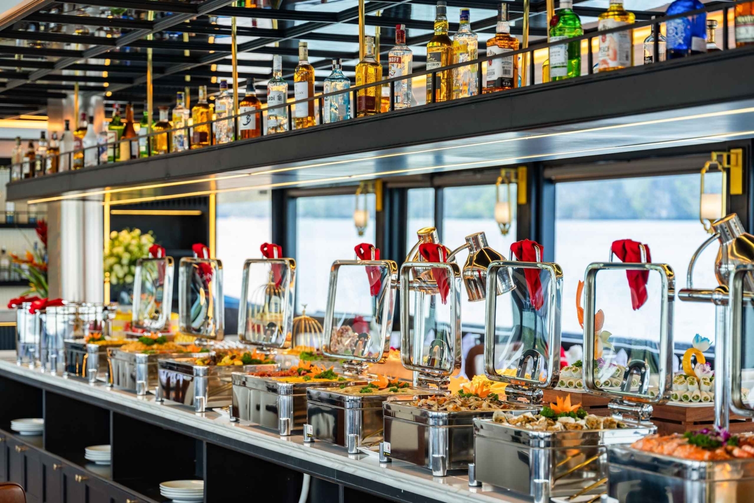 - - Buffet sisältää myös muita kuin kasvisruokaa sisältäviä ruokia. - Risteilypäivän reitti järjestetään sään mukaan. - Lomalisää sovelletaan Tet-loman tai VN:n kuun uudenvuoden aikana: 16-17-18-19.2.2026: Ilman kuljetusta: 150,000vnd/pax. Bussikuljetus: 150,000vnd/pax. Limusiinibussi: 250,000 vnd/pax. - Juhlapyhien lisämaksu: 100,000vnd/henkilö 30. huhtikuuta, 1. toukokuuta, 24. joulukuuta, 31. joulukuuta.