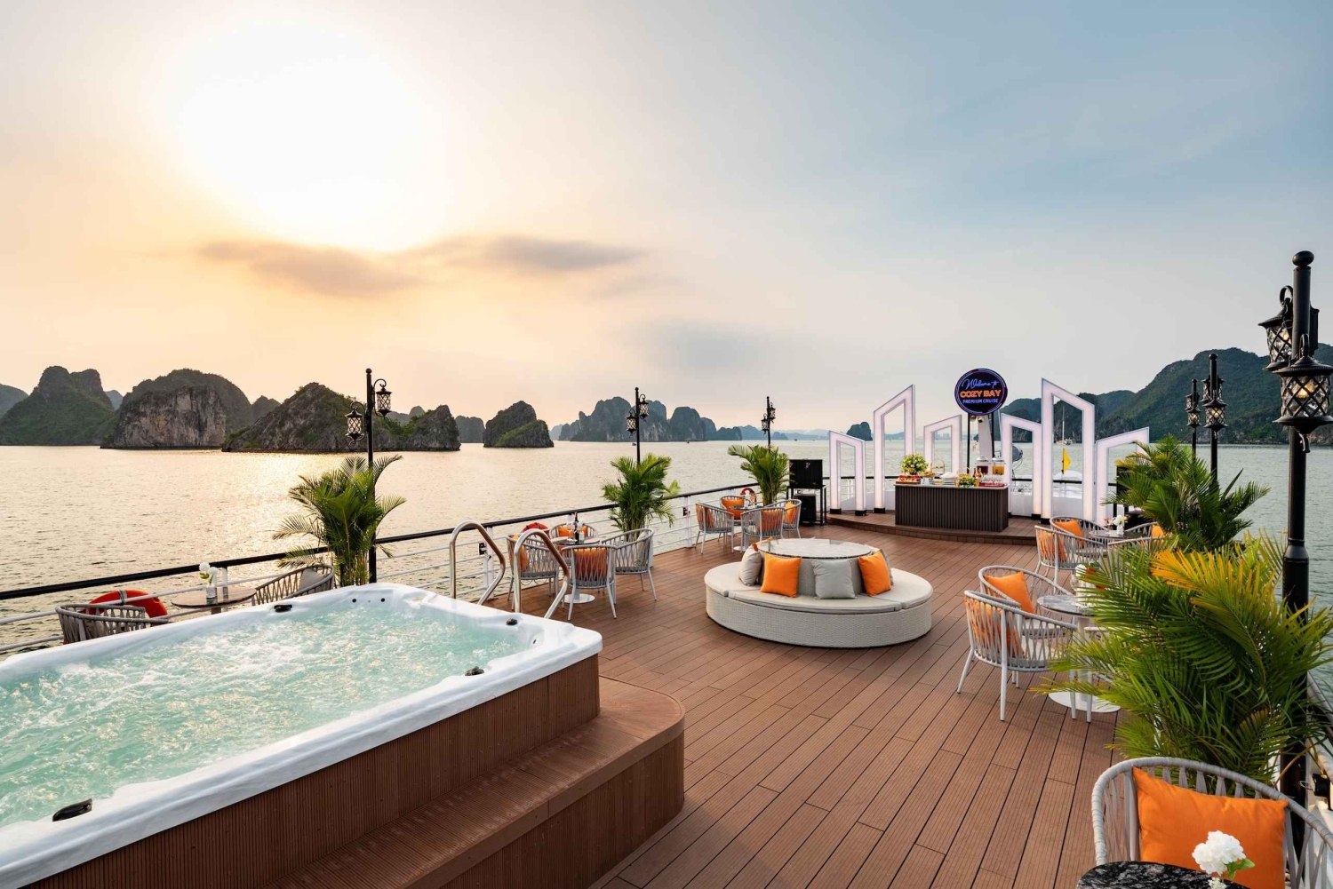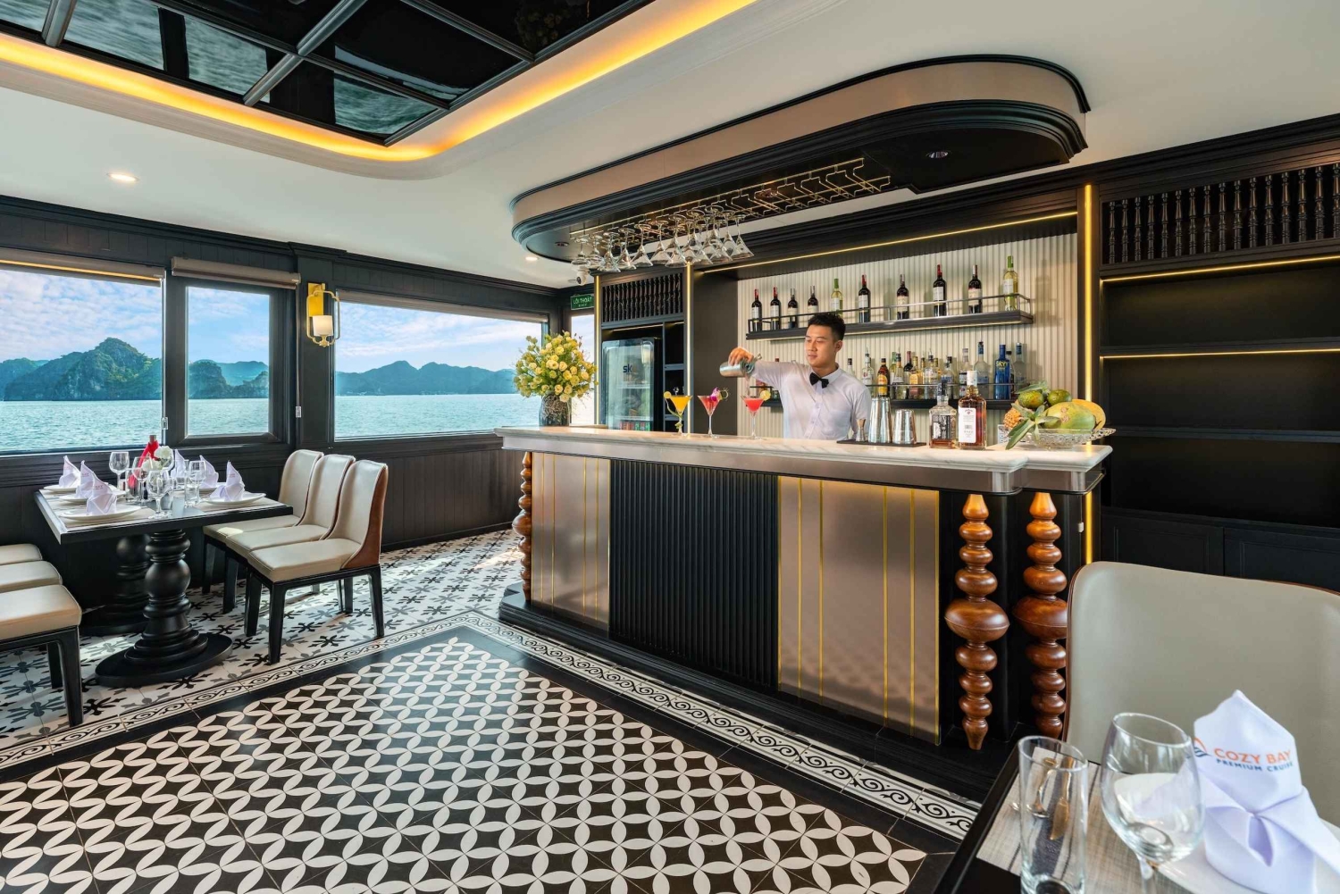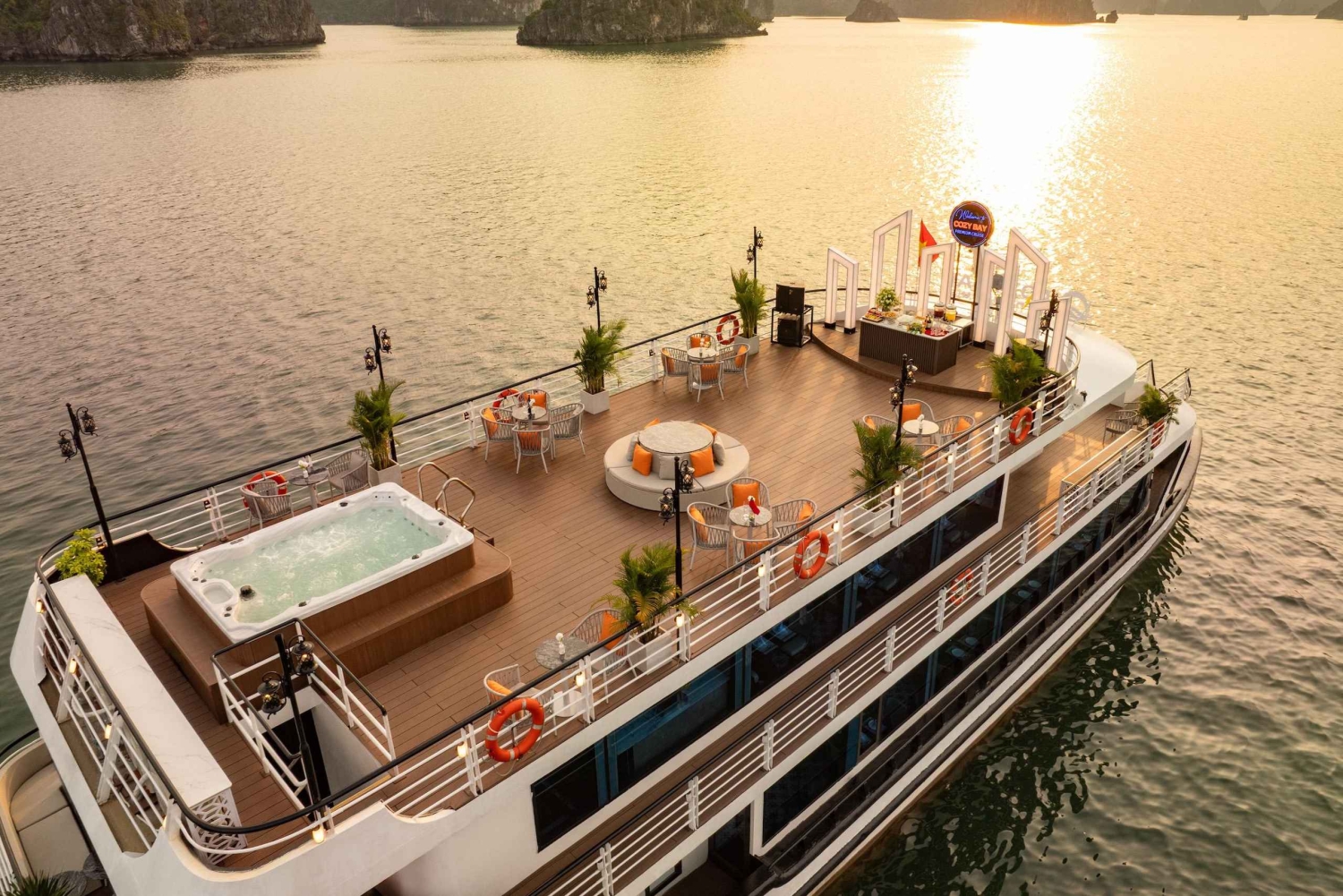 Hemmottele itseäsi tällä jännittävällä Ha Long Bay -risteilyllä, joka lähtee Hanoin vanhasta kaupungista ja vie sinut Luon-luolaan, Sung Sot -luolaan ja Titop-saarelle. Lähde reitille, joka on tunnettu upeista kulkuväylistään, asumattomista saaristaan ja jylhistä kallioistaan. Ui, melo kajakilla, nauti buffet-ateria ja juhli auringonlaskun aikaan. Noudon jälkeen suuntaamme kohti Halonginlahtea. 30 minuutin tauon jälkeen (Halong Pearl Souvenir Shop) kuljetuksen aikana saavut Tuan Chaun satamaan aloittamaan risteilysi. Risteilyn aluksi nautit tervetuliaisjuomasta ja buffetlounasta. Ensimmäinen iso pysähdys on Sung Sot -luolassa, jossa voit nähdä paljon merieläimiä muistuttavia tippukivipylväitä. Tämä on loistava tilaisuus ottaa paljon kuvia luolan sisällä ja antaa mielikuvitukselle tilaa. Seuraavaksi voit kokea kajakkimelonnan tai bambuveneellä ajamisen Luon-luolassa ja tutustua laguuniin, jossa on apinoita. Viimeisenä vierailut kohteena on Ti Topin saari, jossa sinua odottaa hiekkaranta ja korkea kalkkikivivuori. Kiipeä Ti Top Peakiin ja nauti panoraamanäkymistä paratiisiin lahden kimaltaessa taustalla. Paluumatkalla Tuan Chaun satamaan voit nauttia auringonlaskujuhlista teetä, viiniä, kakkuja, katkarapulastuja ja tuoreita hedelmiä nauttien. Kylve auringonlaskun hehkussa yläkannella ja nauti musiikista. Kun olet taas maissa, saat viimeisen kuljetuksen noutopaikkaasi, ja välissä on 20–30 minuutin tauko. Matkasuunnitelma: Klo 7.15–7.45: Opas noutaa sinut hotellilta Hanoin vanhassakaupungissa ja lähdet sitten Ha Long Bayhin moottoritiekuljetuksella. 9.30: Pidä 30 minuutin lyhyt tauko rentoutumiseen 11.00–11.15: Saavut Tuan Chaun satamaan. Tervetuloa Cozy Bay Premium Cruiseen. Nauti buffetlounas. Viemme sinut 5–6 tunnin matkalle reitille 2, joka on tunnettu upeista maisemistaan, asuttamattomista saaristaan ja kallioistaan, joille paikalliset ovat antaneet mielikuvituksellisia nimiä niiden muotojen vuoksi, kun lounaat laivalla. 13.15: Vierailet Sung Sot -luolassa ja näet erilaisia tippukivipylväitä ja merieläviä 14.30: Sitten voit meloa kajakilla tai bambuveneellä Luon-luolaan tutustuaksesi sen kauniiseen laguuniin Klo 15.30: Vieraile Titov-saarella, jossa on hiekkaranta ja korkea kalkkikivivuori, josta on upeat näkymät lahdelle. Kiipeä Titopin huipulle ja nauti panoraamanäkymästä paratiisimaiselle lahdelle Klo 16.30: Risteilemme takaisin Tuan Chaun satamaan. Sinulla on runsaasti aikaa nauttia auringonlaskun juhlista teetä ja kakkuja nauttien, ottaa aurinkoa yläkannella musiikin soidessa ja pitää hauskaa ryhmäretkikavereiden kanssa maailman ikonisen luonnonkauniin maiseman keskellä. 18.00: Saapuminen satamaan. Sitten lähdemme bussilla takaisin Hanoihin moottoritietä pitkin ja pidämme lyhyen 20–30 minuutin tauon. 21.00–21.30: Saavut hotellille Hanoin vanhaan kaupunkiin. Matka päättyy.Includes