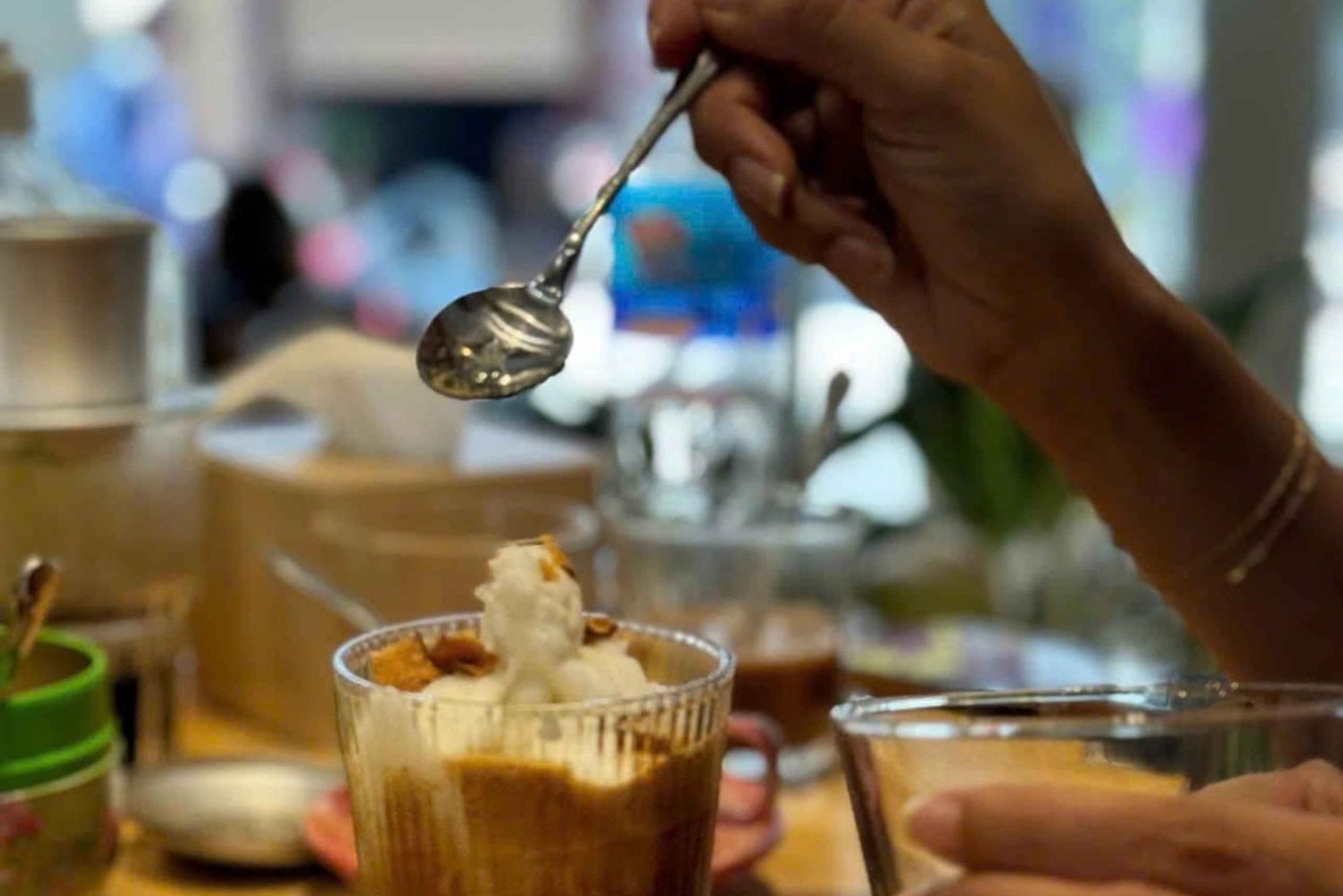 Jos olet koskaan ihastunut vietnamilaisen kahvin rikkaisiin makuihin, nyt on helpompaa kuin koskaan tuoda se taika kotiisi. Intohimoisen kahvimestarimme askel askeleelta antamien ohjeiden avulla voit valmistaa aitoja vietnamilaisia kahvijuomia. Kaikki muuttuu helpommaksi ja mieleenpainuvammaksi, kun kunkin kahvijuoman taustalla olevat tarinat ja yksityiskohdat paljastuvat vähitellen. Tässä aistien täyteisessä kokemuksessa voit nauttia seuraavista: ☕️ Musta kahvi: Voimakas ja intensiivinen, tämä puhdas vietnamilainen kahvi vapauttaa syvät, voimakkaat maut, joissa on miellyttävä katkera vivahde. Se on täydellinen valinta niille, jotka kaipaavat voimakasta, puhdasta kahvia. ☕️ Ruskea kahvi: Rakastettu klassikko, jossa rikas, kermainen kondensoitunut maito pehmentää voimakasta kahvia ja luo herkullisen, pehmeän harmonian makeiden ja katkerien makujen välillä. Munakahvi: Hanoin ikoninen aarre, samettinen, vaniljakastikeen kaltainen herkku, jossa kahvin voimakkuus yhdistyy makeaan, vaahdotettuun munakastikkeeseen ja joka tarjoaa ainutlaatuisen hemmottelevan ja unohtumattoman maun. Kookos-kahvi: virkistävä trooppinen pako kupissa, jossa kahvin täyteläisyys sekoittuu silkkisen kookoskermaisuuden kanssa ja tarjoaa eloisan, eksoottisen maun, joka viilentää ja virkistää jokaisella siemaisulla. ☕️ Valkoinen kahvi: pehmeä ja tasapainoinen, tämä elegantti sekoitus lieventää voimakkaan kahvin intensiteettiä kermaisella makeudella, jolloin tuloksena on pehmeä, lohduttava juoma, jota arvostetaan kaikkialla Vietnamissa. ☕️ Suolakahvi: Yllättävä makusinfonia, jossa suolainen, makea ja katkera maistuvat täydellisessä harmoniassa ja luovat kiehtovan monimutkaisen ja mieleenpainuvan kahvikokemuksen, joka on täysin erilainen kuin mikään muu. Sen lisäksi, että saat mukaasi reseptejä, pääset tutustumaan paikallisiin tarinoihin, vietnamilaiseen kahvikulttuuriin ja parhaisiin tapoihin nauttia kahvia. Mikä parasta, paikalliset vanhimmat vastaavat aina lämpimästi matkailijoiden kysymyksiin.Includes